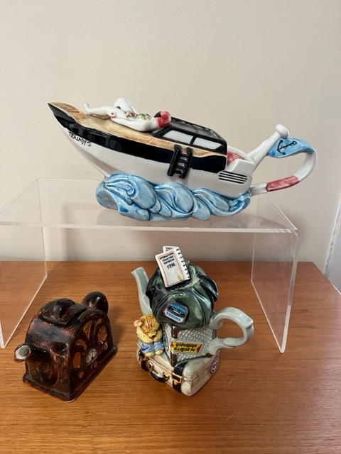 Three Collectors Teapots A/F. Includes a rare Swineside Tea Lady Pot. Sadly missing its lid
