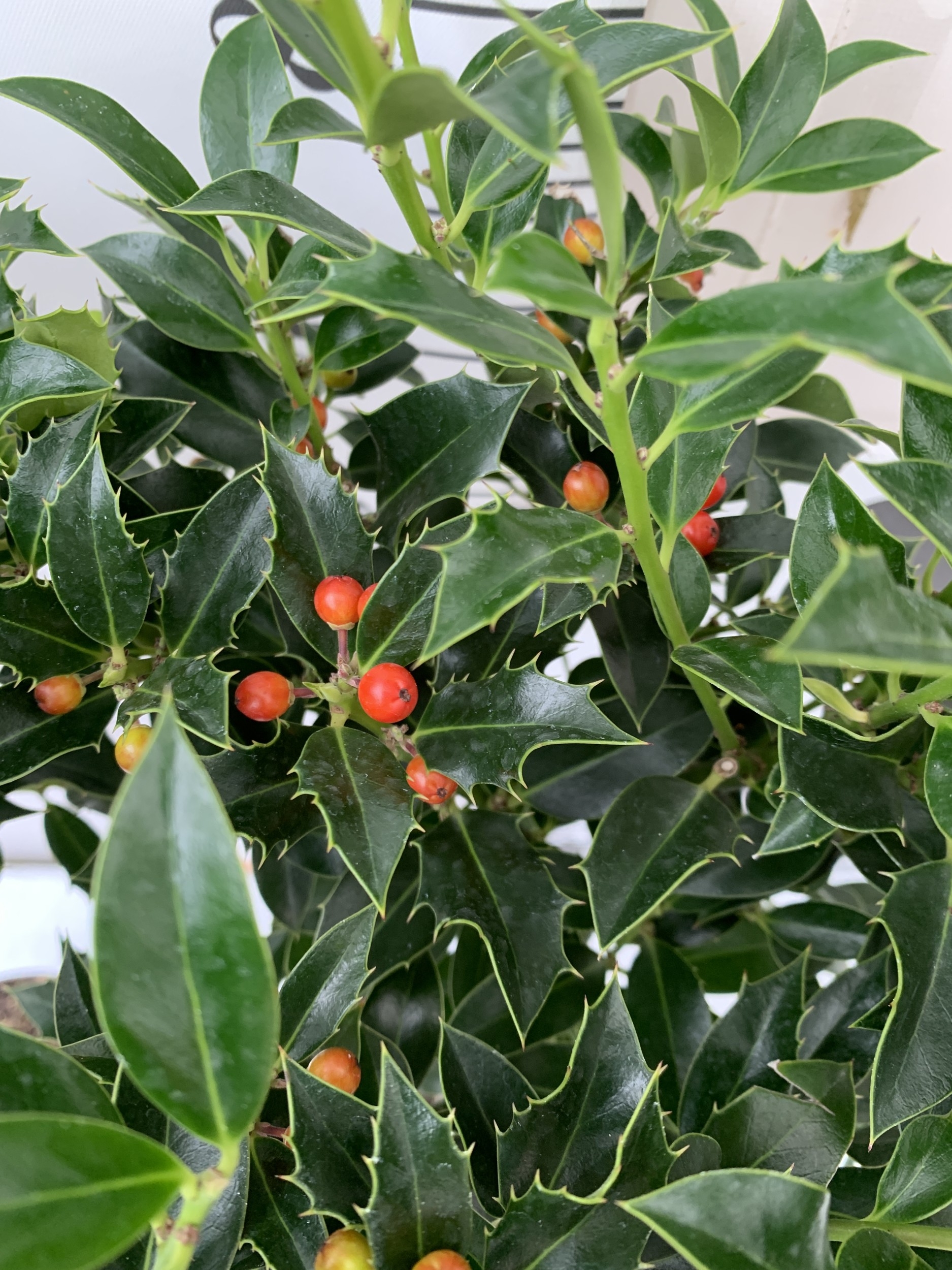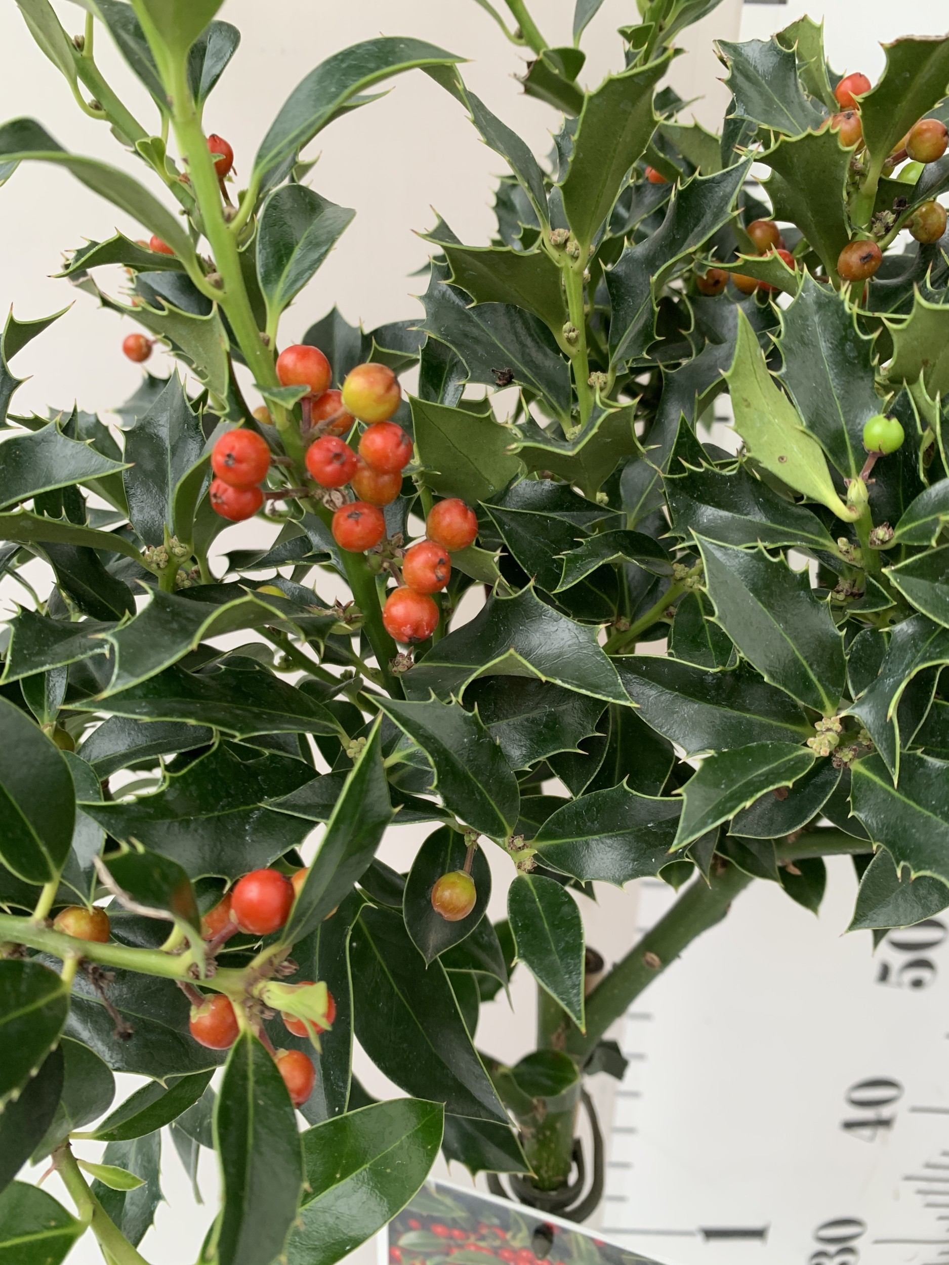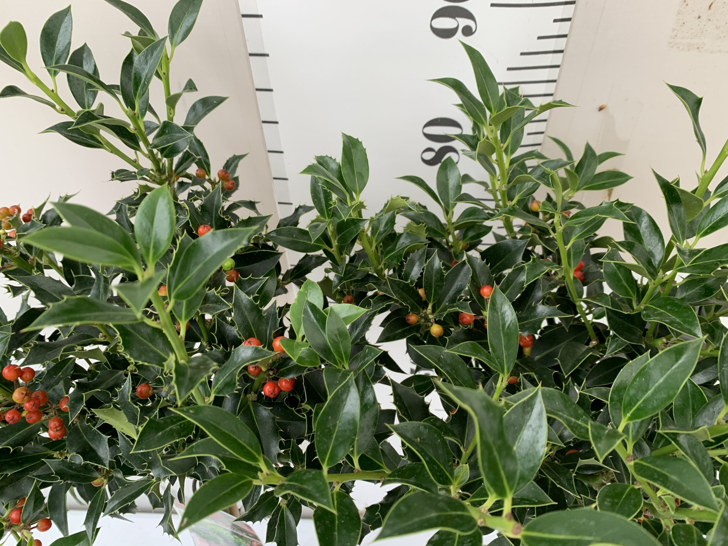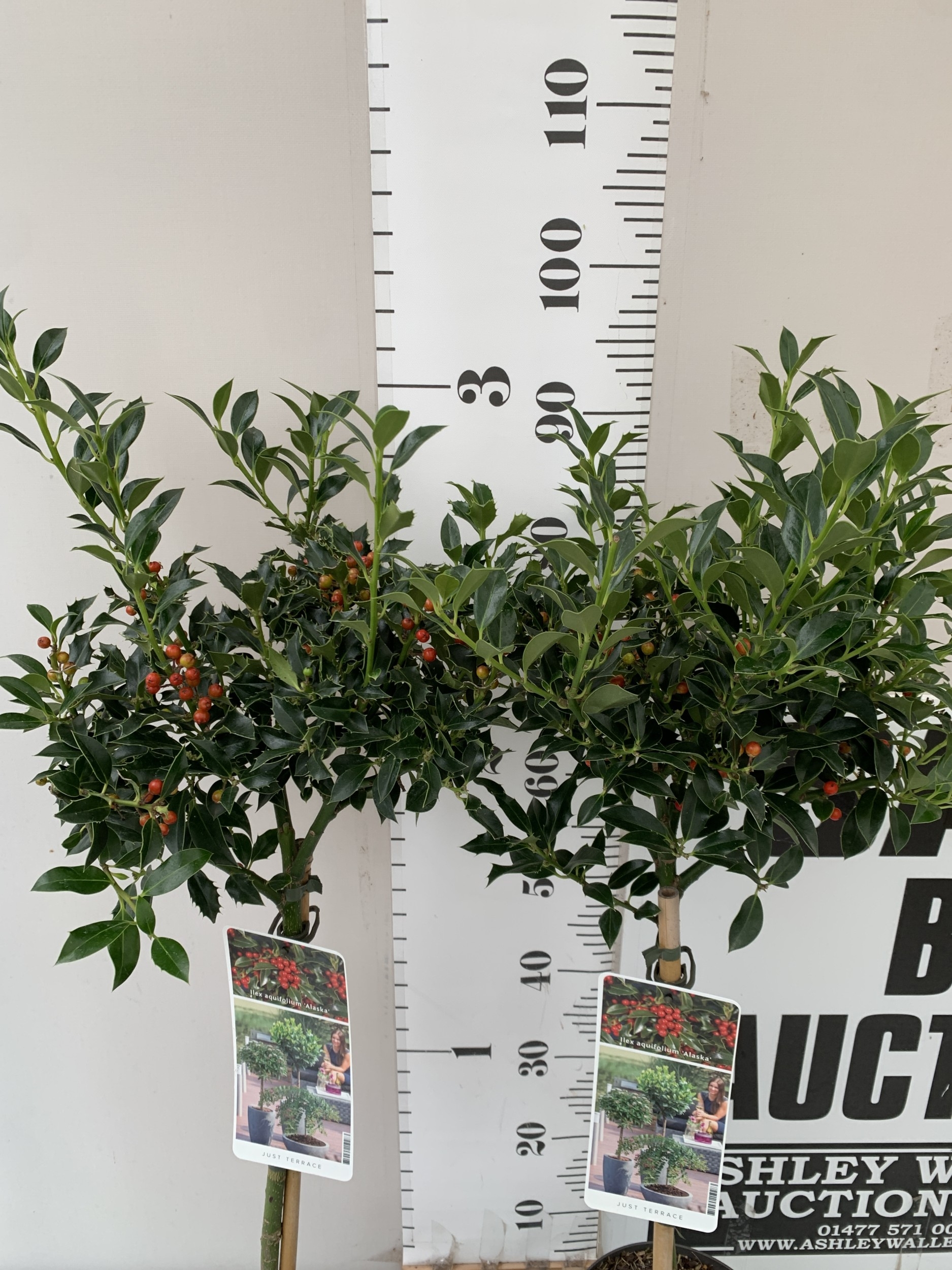 TWO STANDARD HOLLY TREES ILEX AQUIFOLIUM 'ALASKA' WITH BERRIES. IN 3 LTR POTS. APPROX A METRE TALL, TO BE SOLD FOR THE PAIR