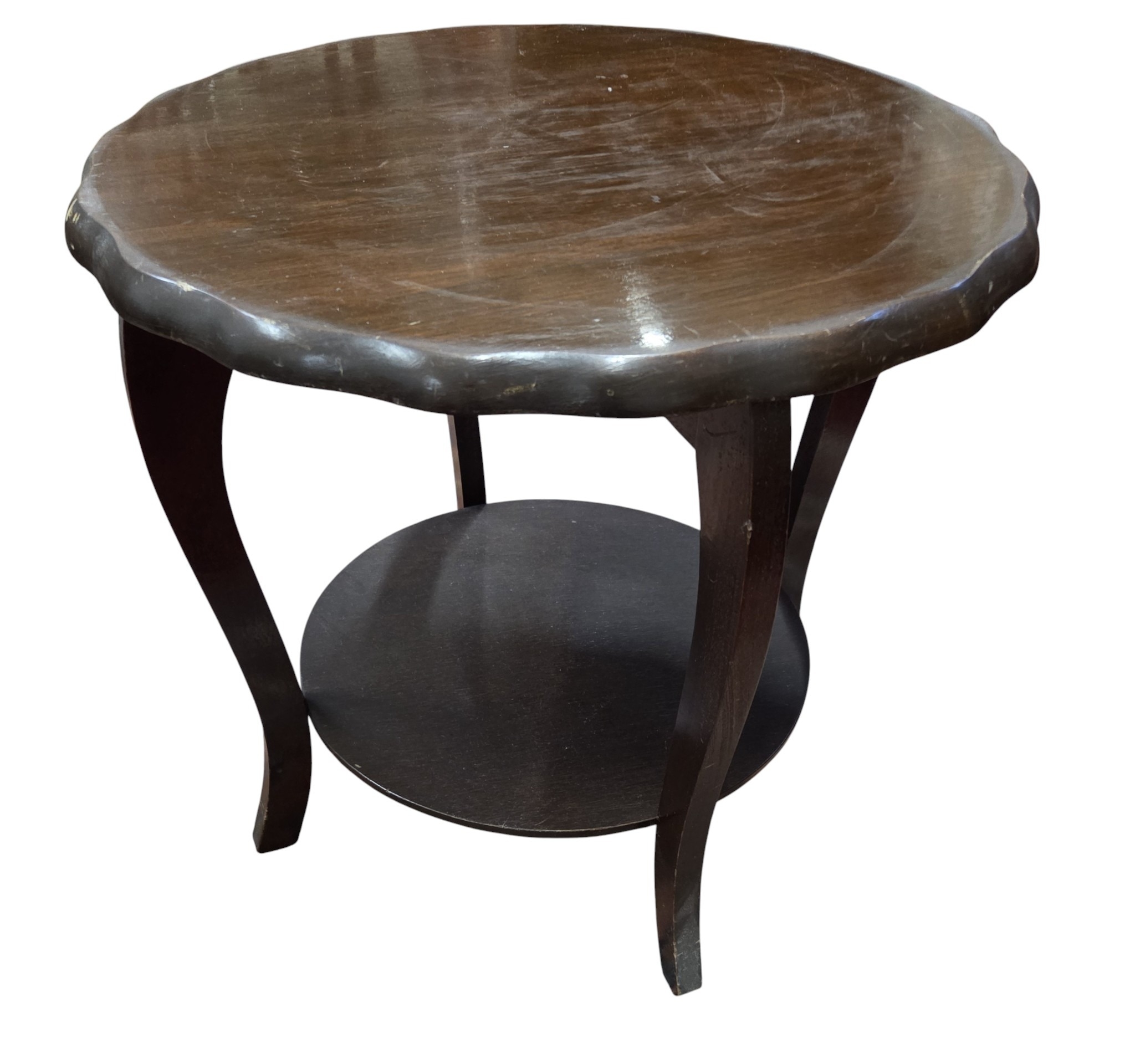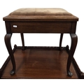 An early 20th Century Mahogany miniature Dumbwaiter along with an Edwardian Piano Stool and a circular lamp table with glass top.