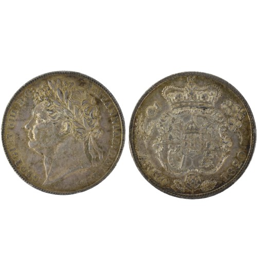 United kingdom - George IV (1820-1830), Half Crown, dated 1820, first laureate portrait, King George IV, left, GEORGIUS III D:G:BRITANNIAR:REX F:D:/. first crowned Shield of Arms National flower surround, ANNO.1820