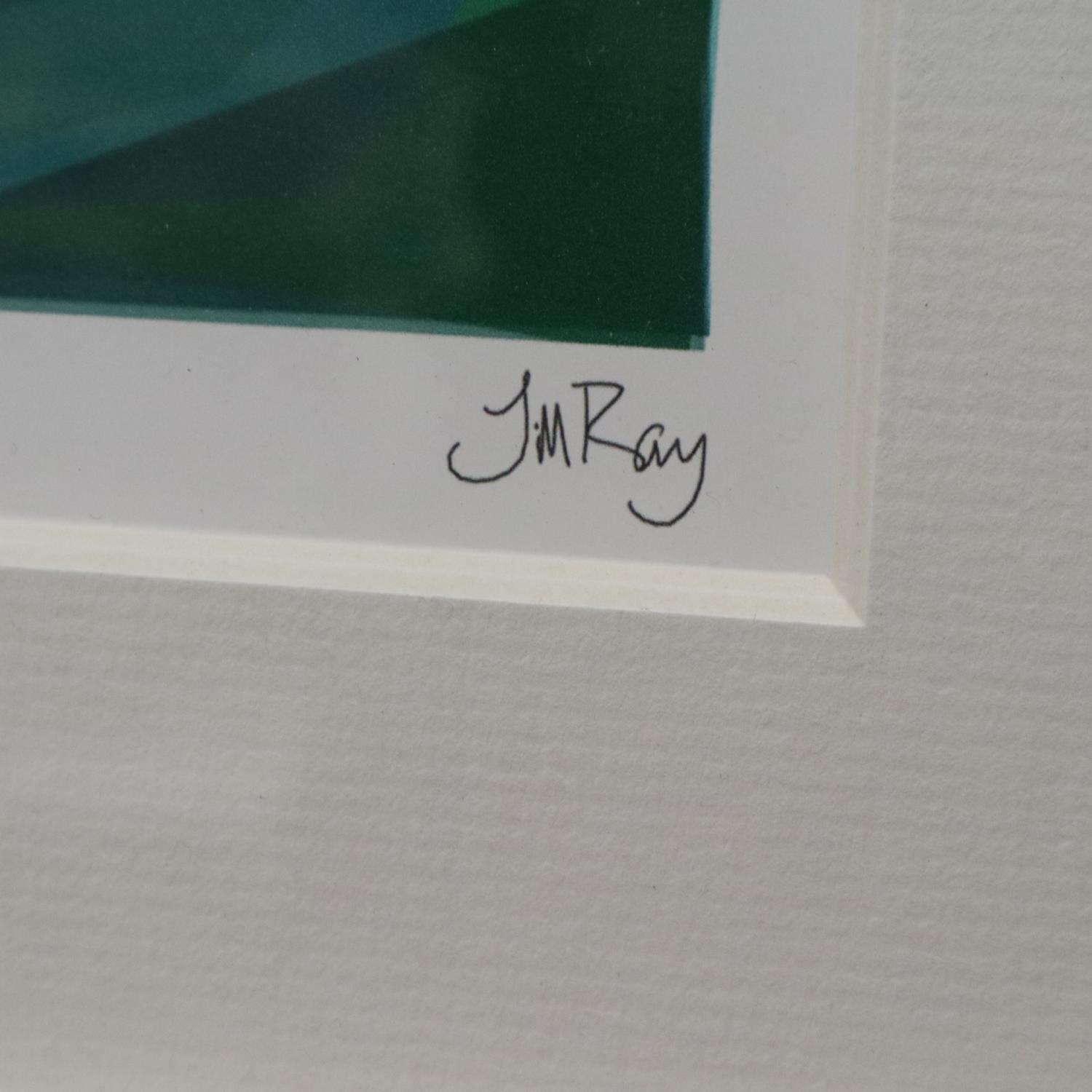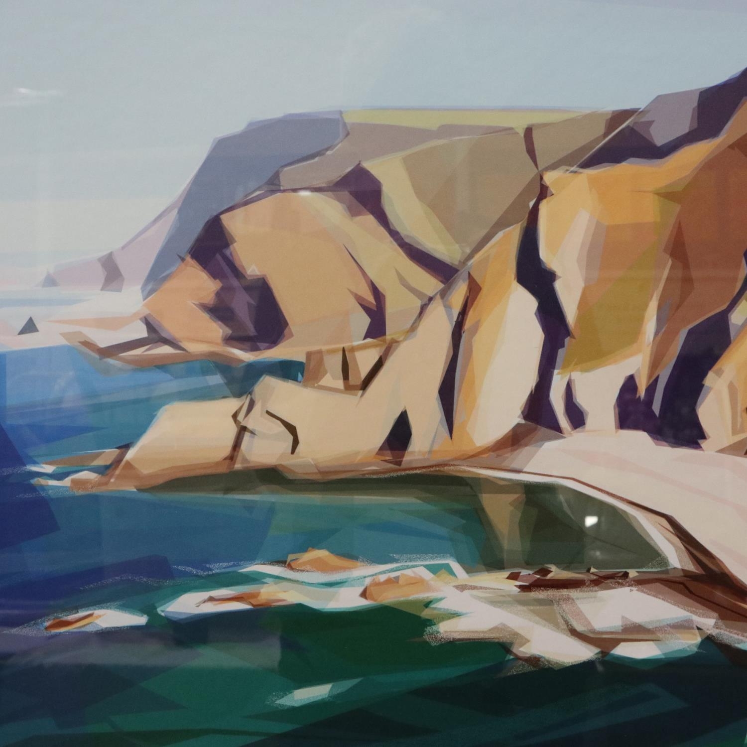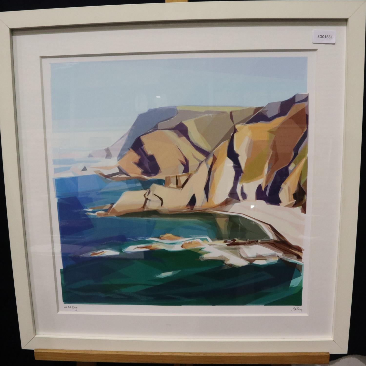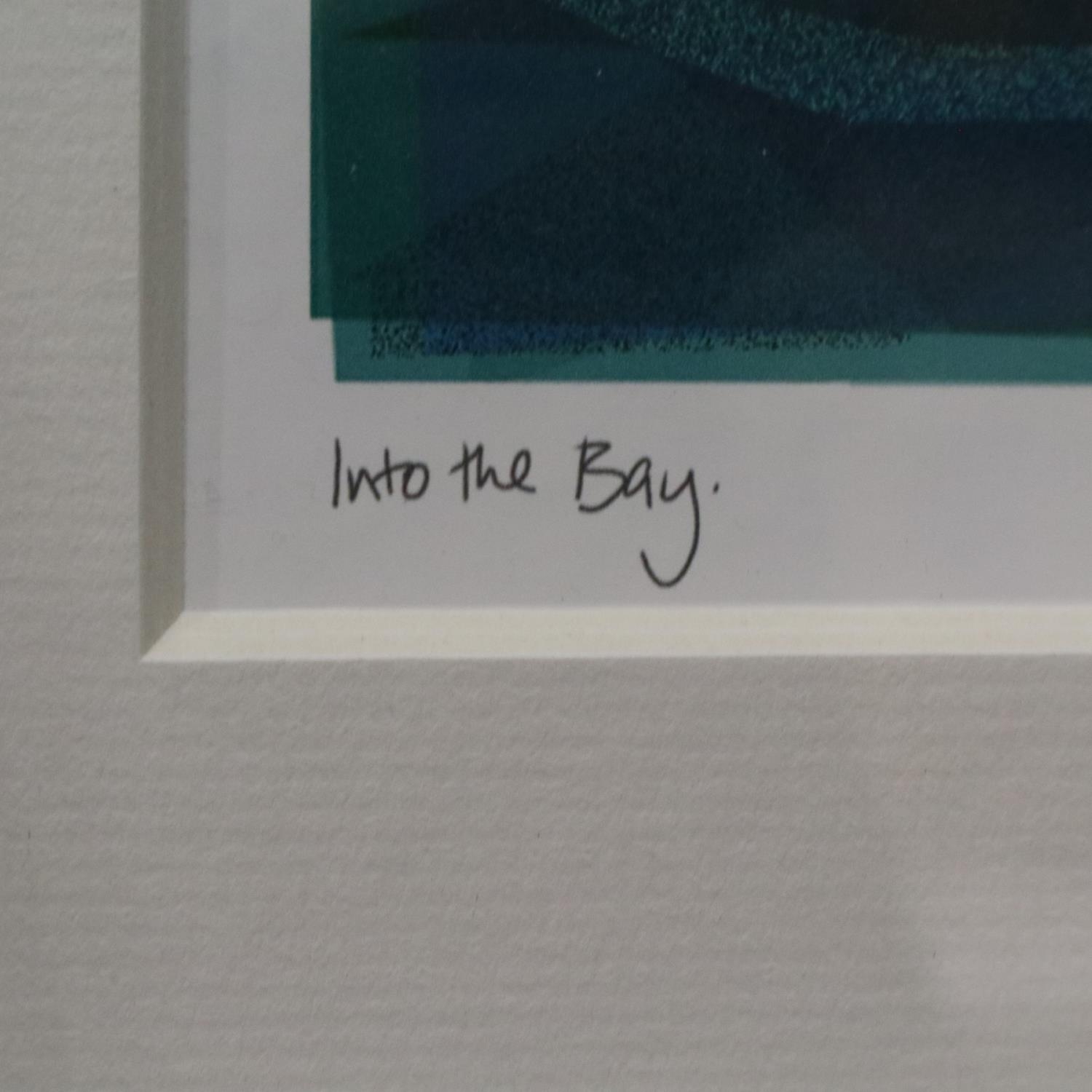 Jill Ray (contemporary): artist signed print, Into the Bay, set into a modern white frame and behind glass, image 46 x 46cm, overall 63 x 63cm. Not available for in-house P&P