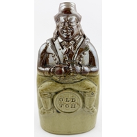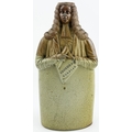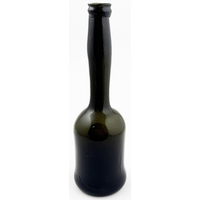 BROUGHAM REFORM CORDIAL FLASK. RF p14. 9ins tall. Lord Brougham flask, scroll in hand impressed BROUGHAMS/ CORDIAL. To rear OLDFIELD & CO/ MAKERS/ CHESTERFIELD. High point wear to hand & nose but no further damage. A rare flask.