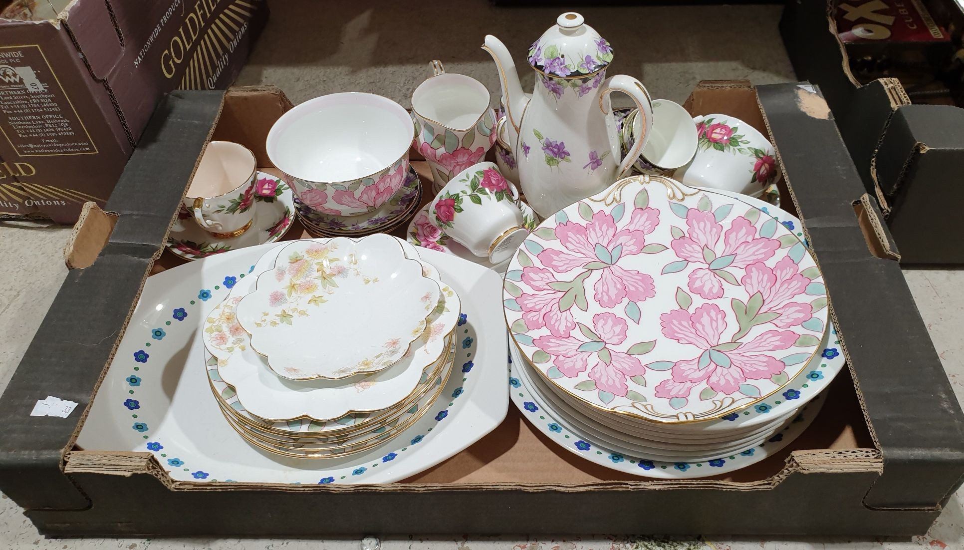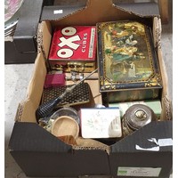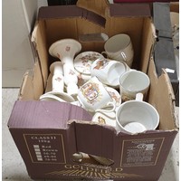 A box including retro Meakin ceramics. No in-house shipping. Please arrange collection or your own packer and shipper.