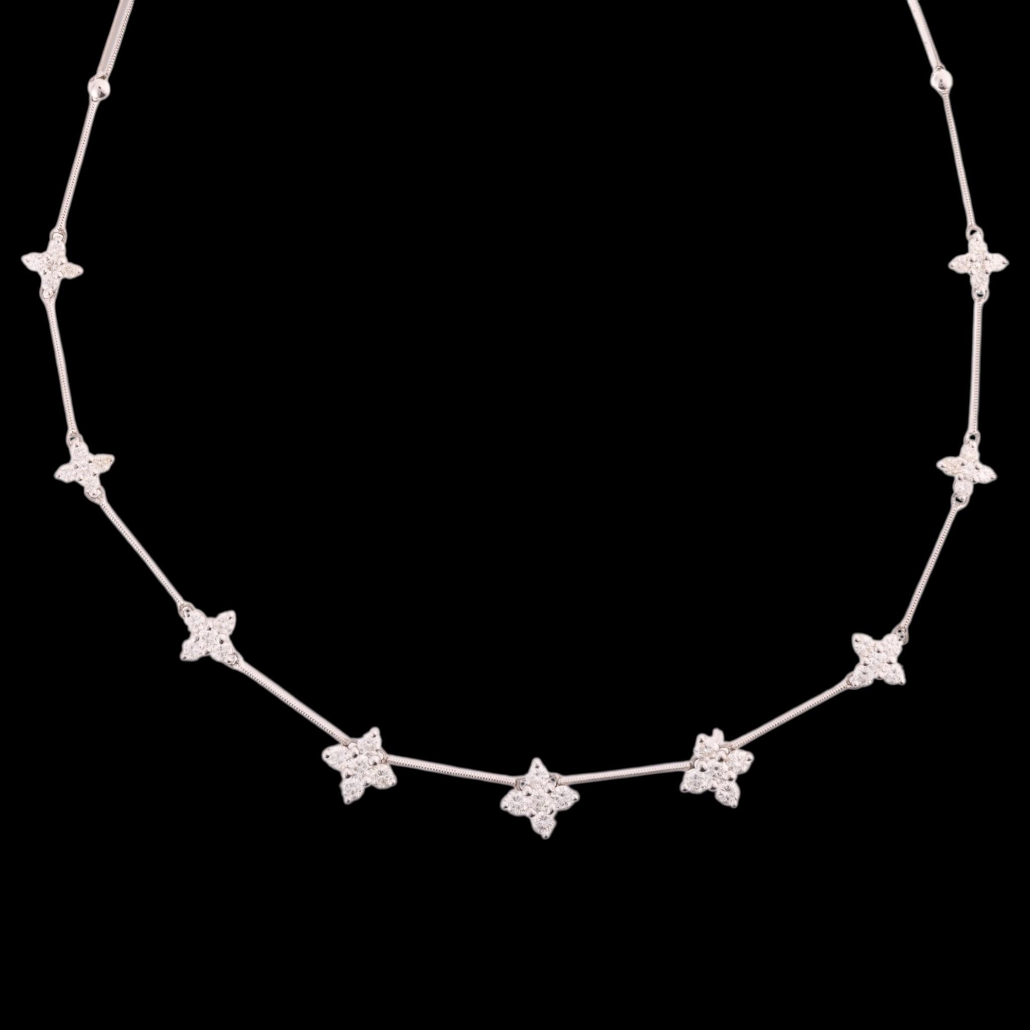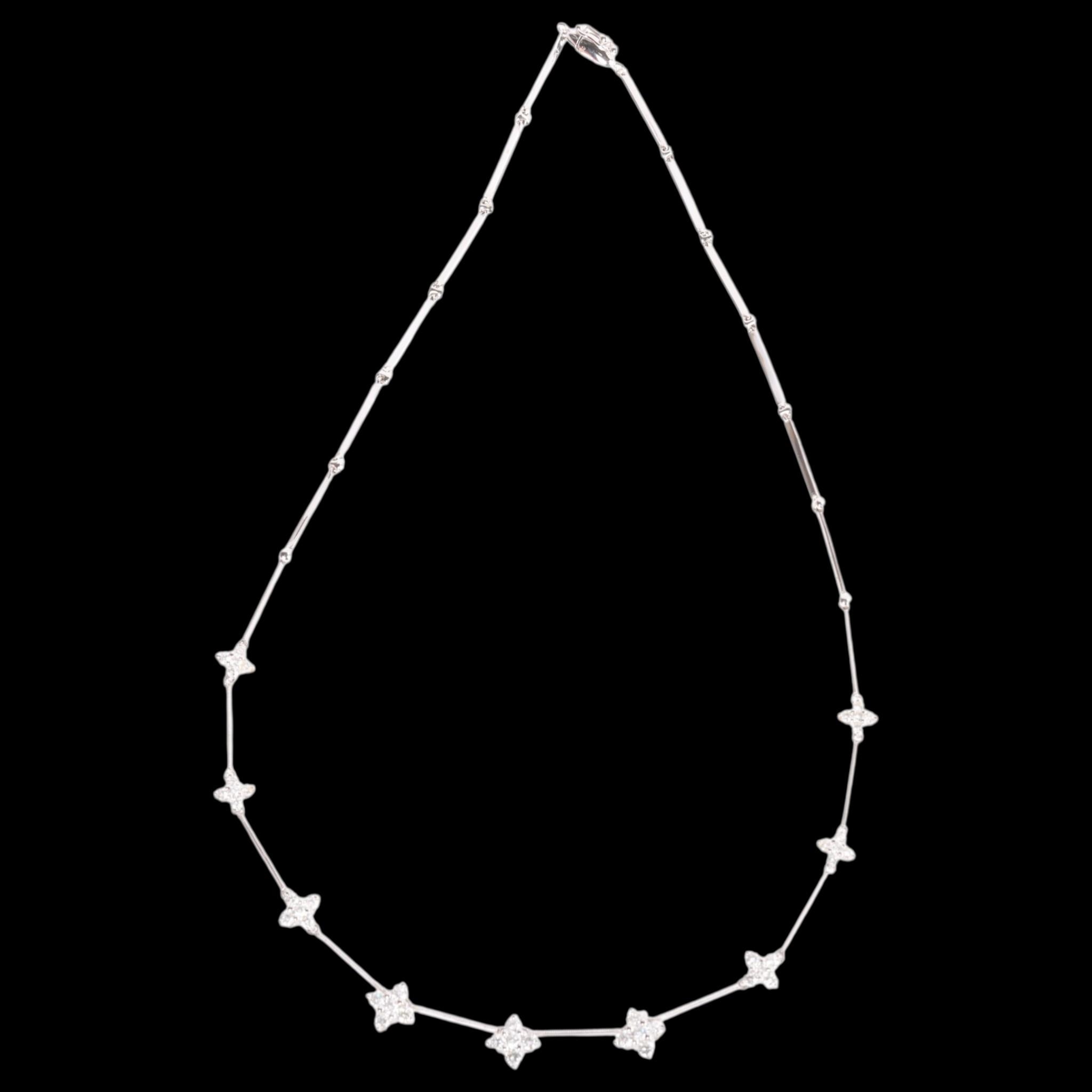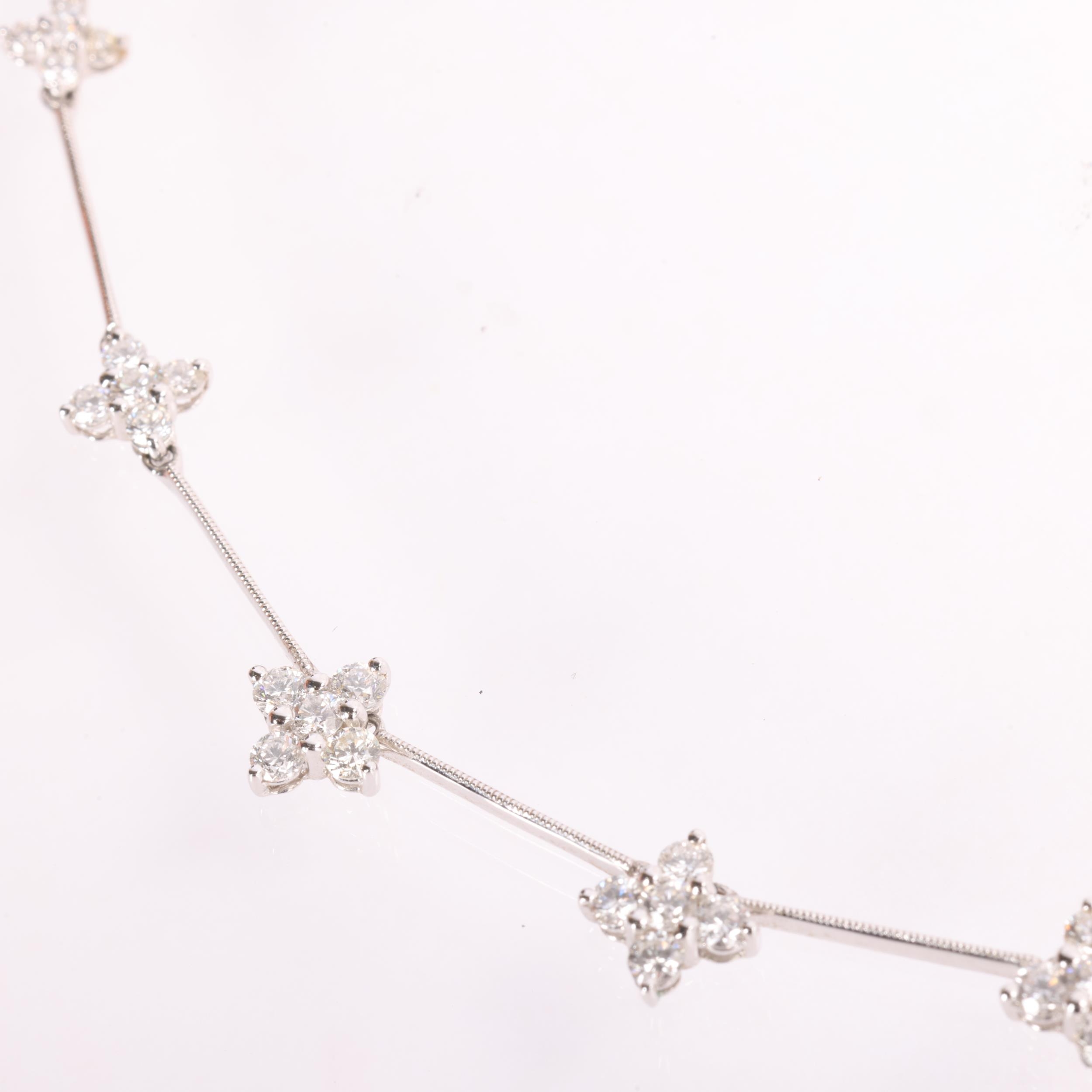 An 18ct white gold diamond collar necklace, maker RG, the cruciform motifs claw set with graduated modern round brilliant-cut diamonds, total diamond content approx 1.50ct, colour approx F-I, clarity approx SI1-SI3, 42cm, 11g