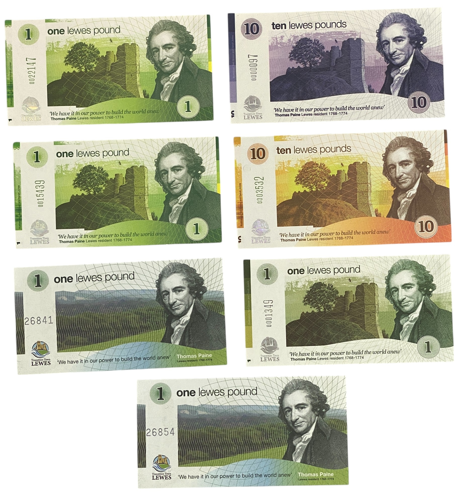 Transition town of Lewes Banknotes One pound x5 and ten Pounds x2 (7 Banknotes in total)