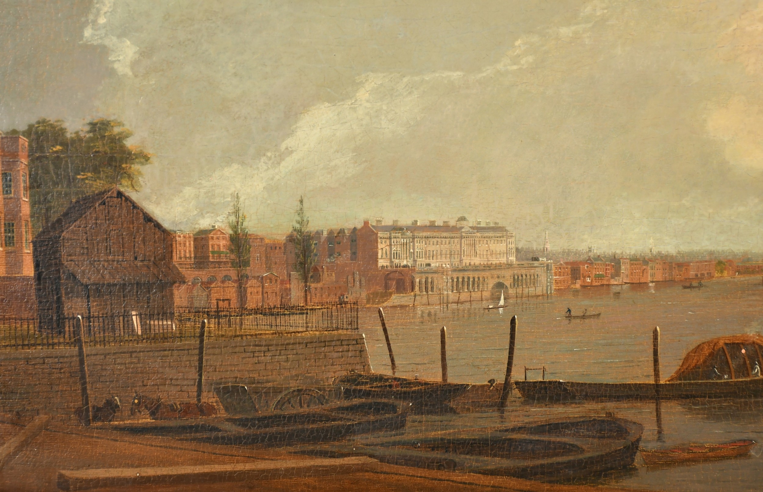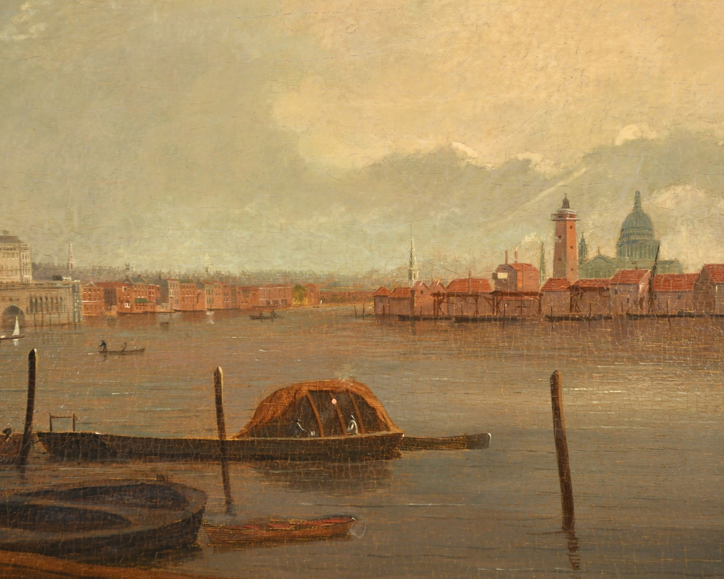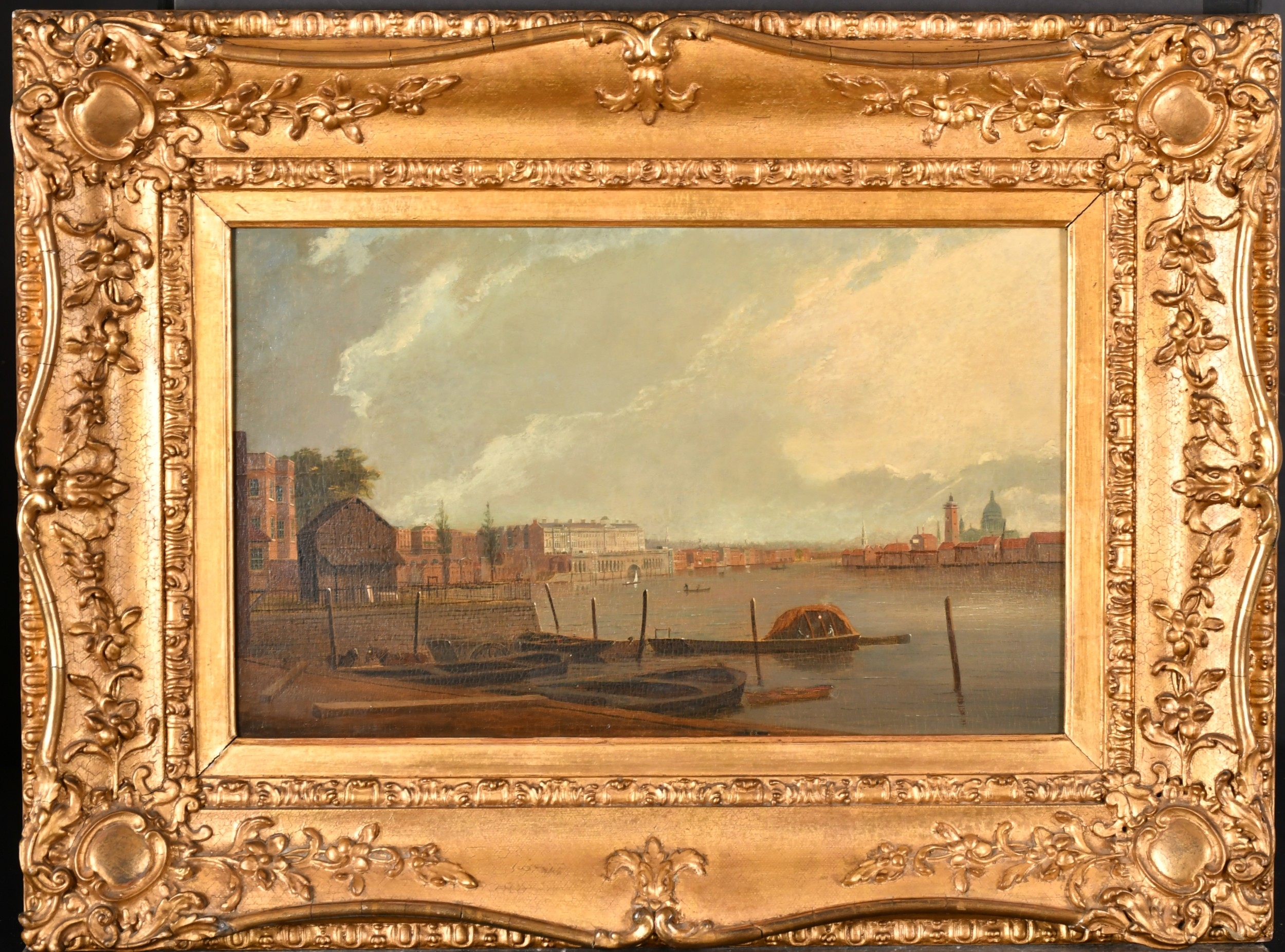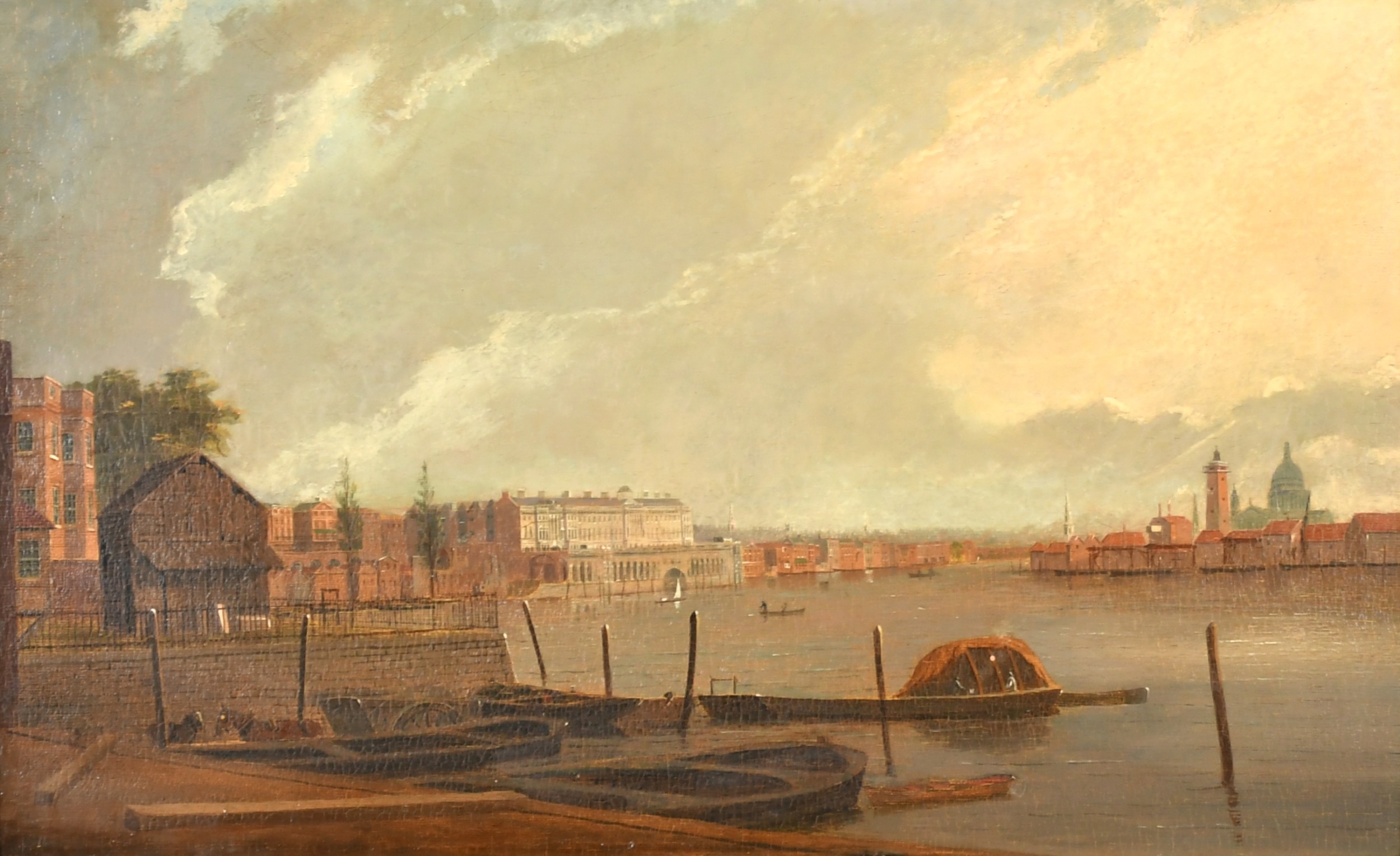 Daniel Turner (act.1782-c.1828) British. 'View of Thames River towards St Paul's, Somerset House on left', Oil on panel, Signed and dated 1807, 11.75" x 19" (29.8 x 48.2cm)