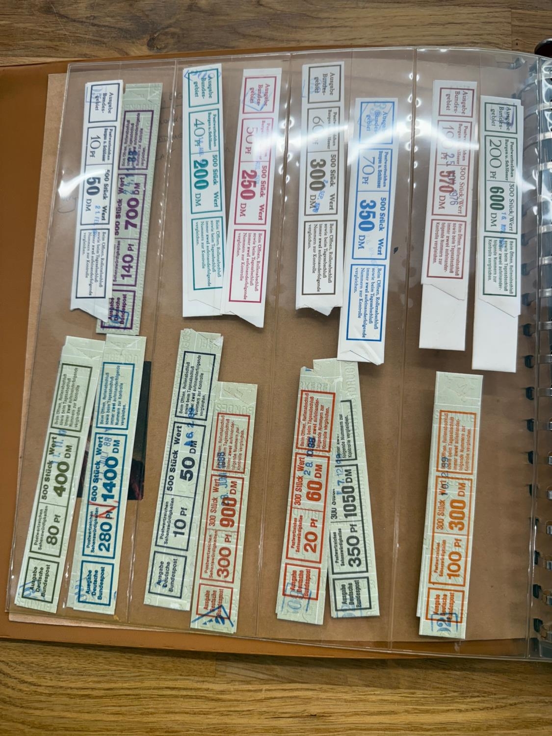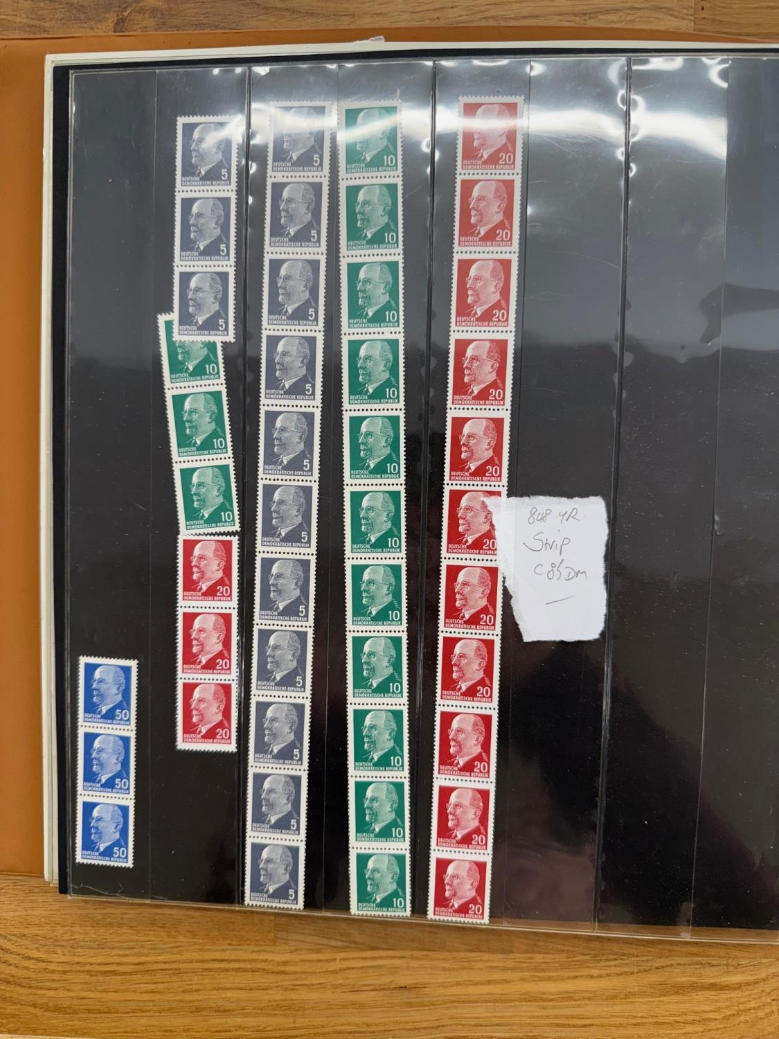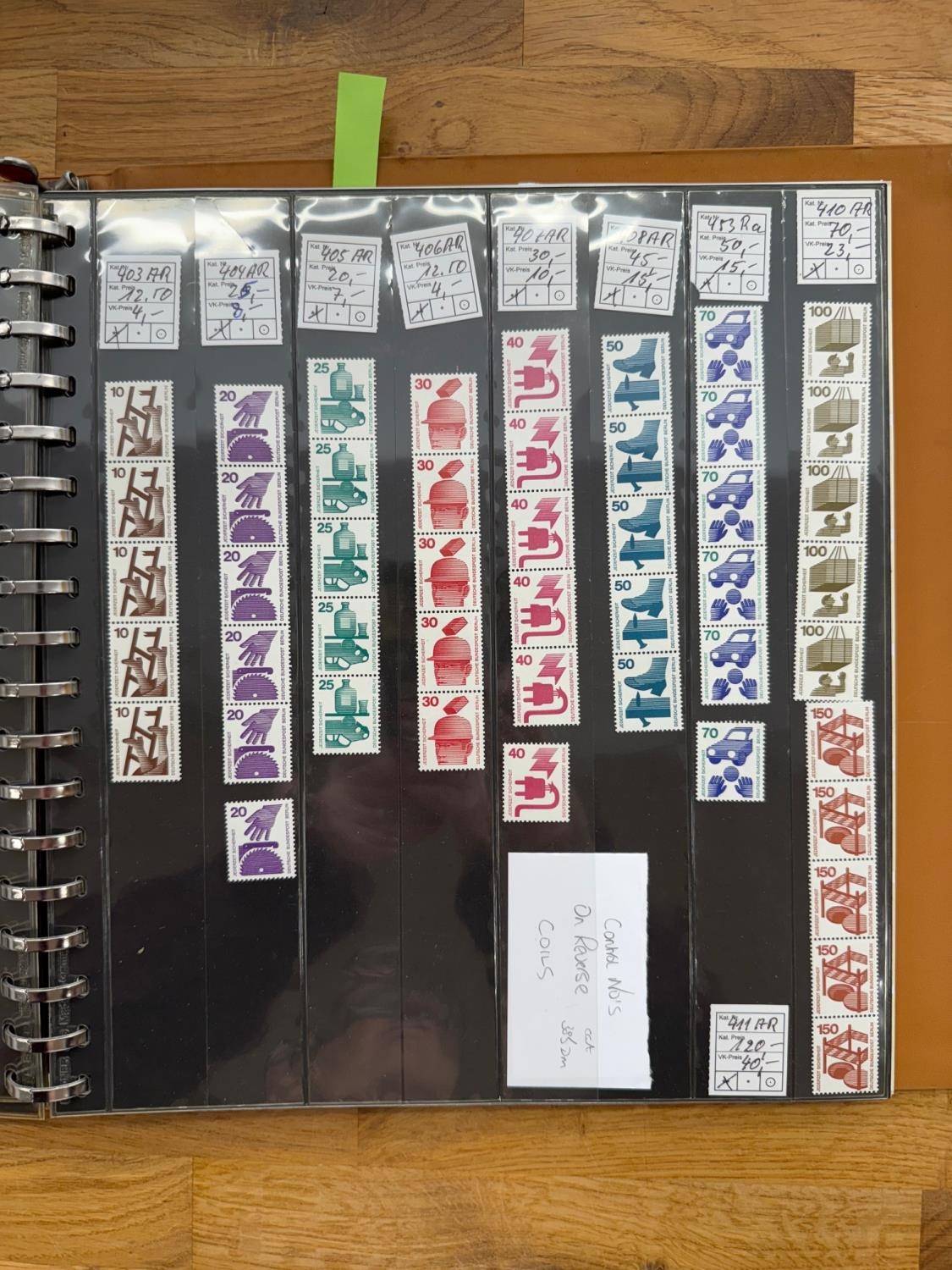 GERMANY album containing a selection of coil strips, a few blocks and panes from East, West and Berlin. Mostly 1960s - 70s um or vfu. STC Mi 700DM+.
