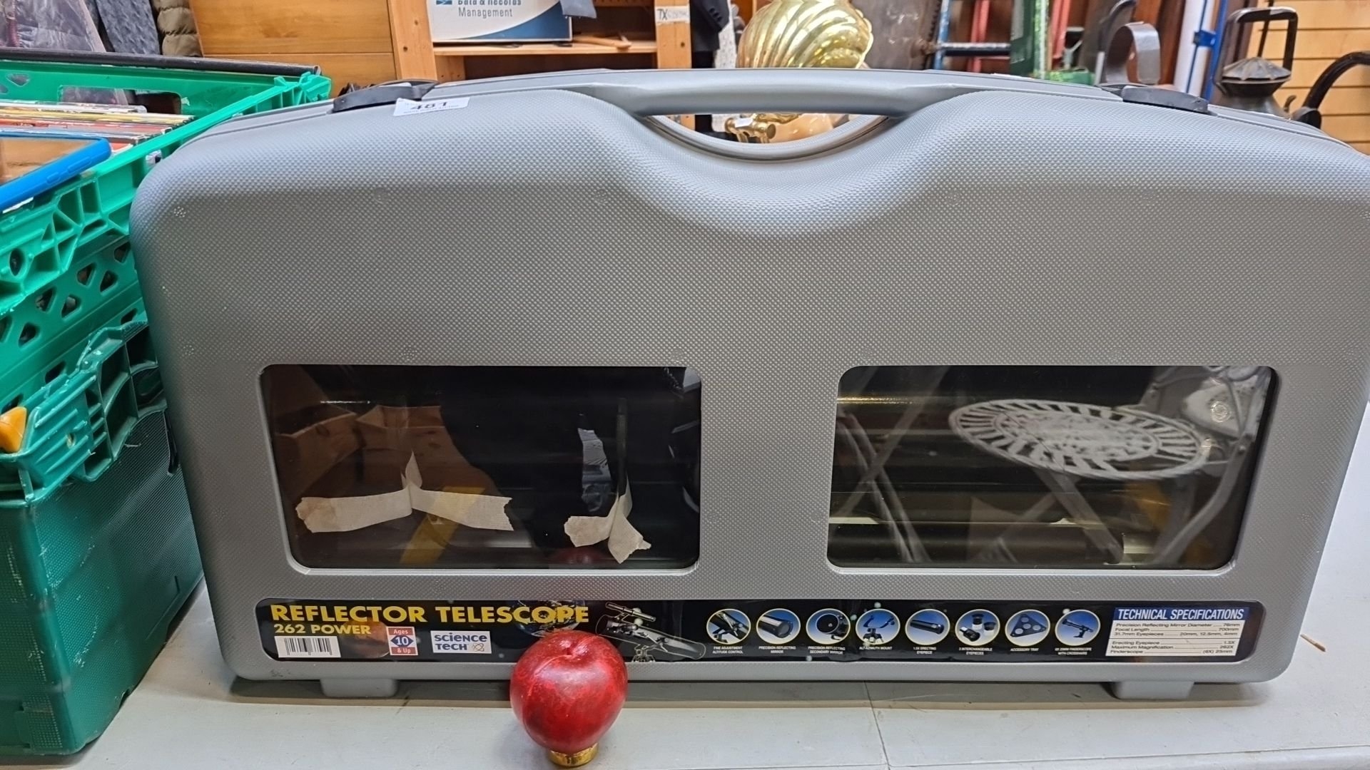 Science Tech reflector telescope, 262 power, with case. Includes components for assembly and viewing.