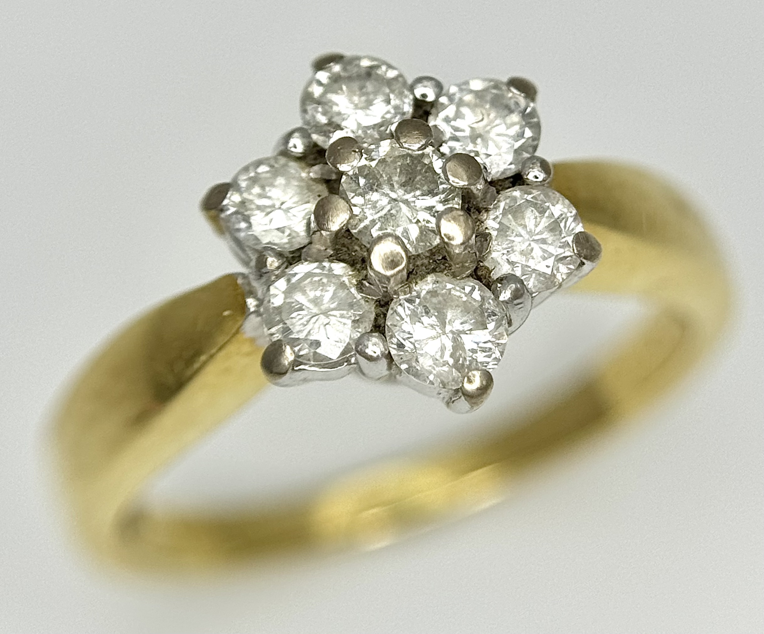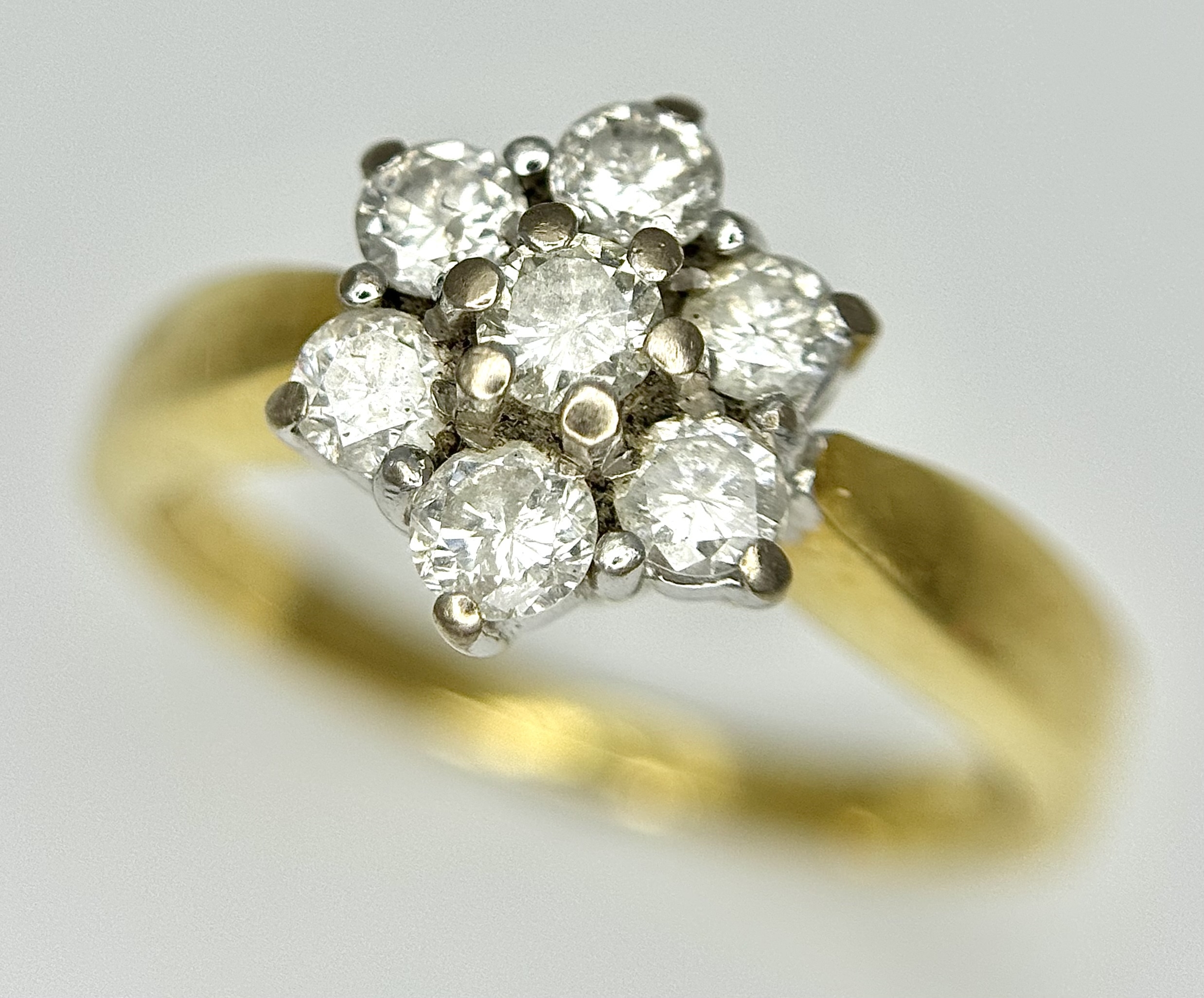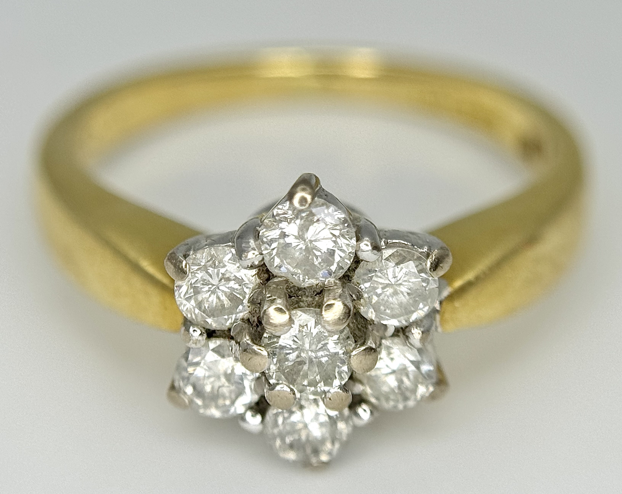 AN 18K YELLOW GOLD DIAMOND FLOWER CLUSTER RING. 0.50CTW. 4.1G. SIZE K. SPSA-3016.