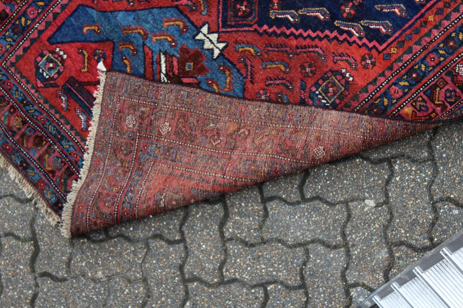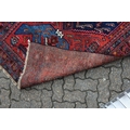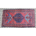 A GOOD SMALL PERSIAN RUG, deep red ground with a central large medallion, flanked by stylised vases.