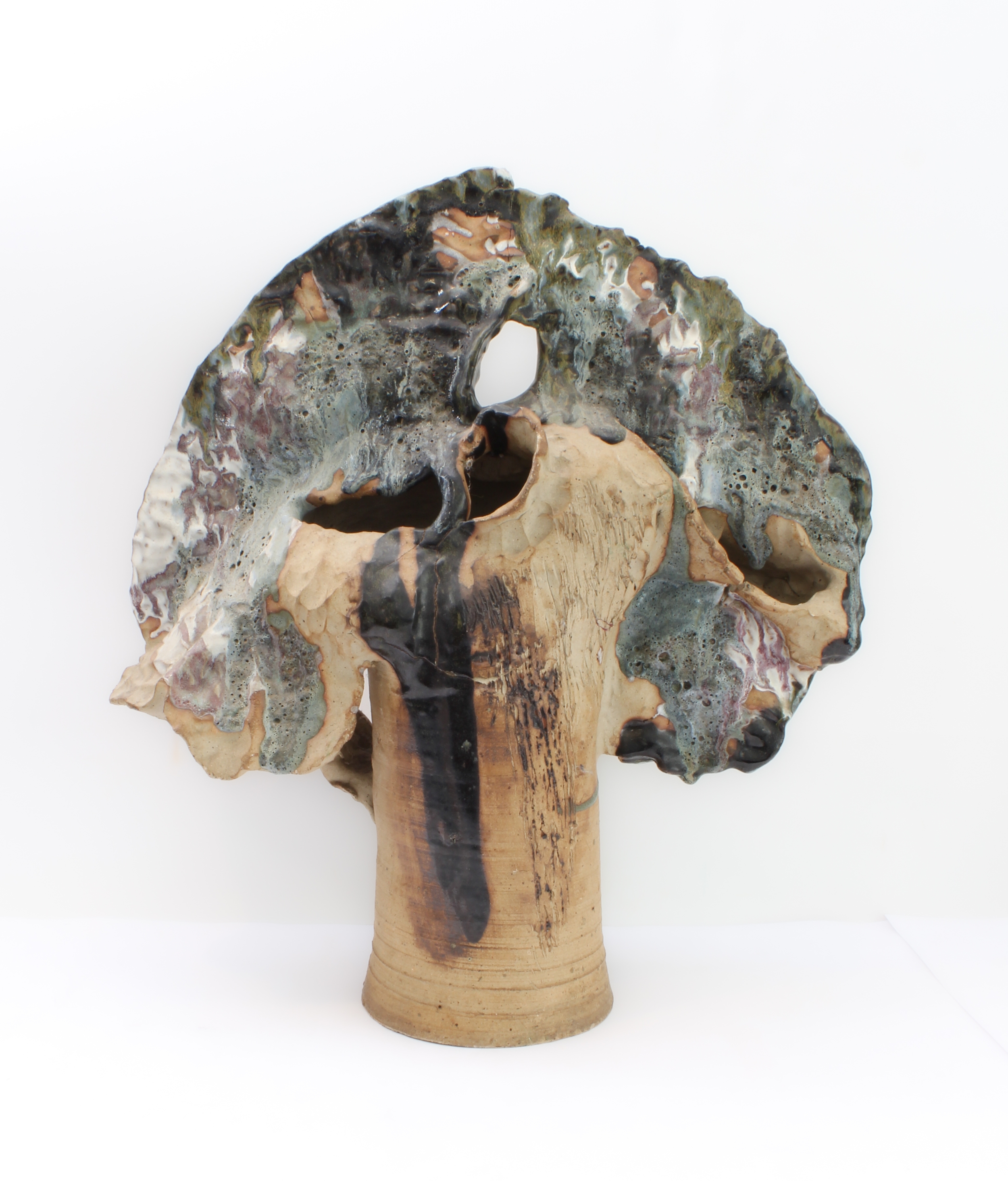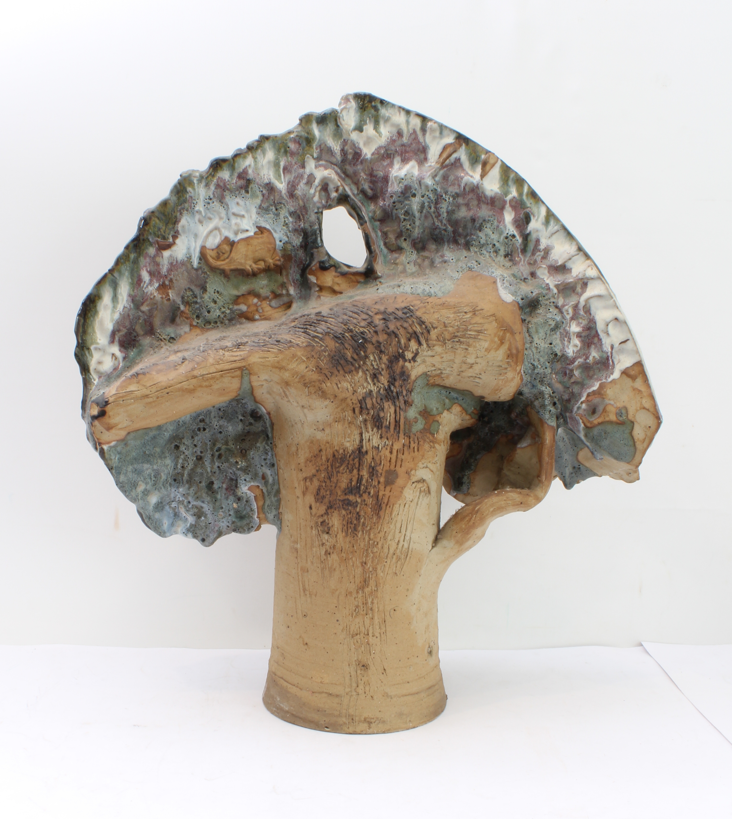 An interesting contemporary free-form sculpture of a stylised tree, part-glazed earthenware, unsigned (53 cm high x 50 cm wide)