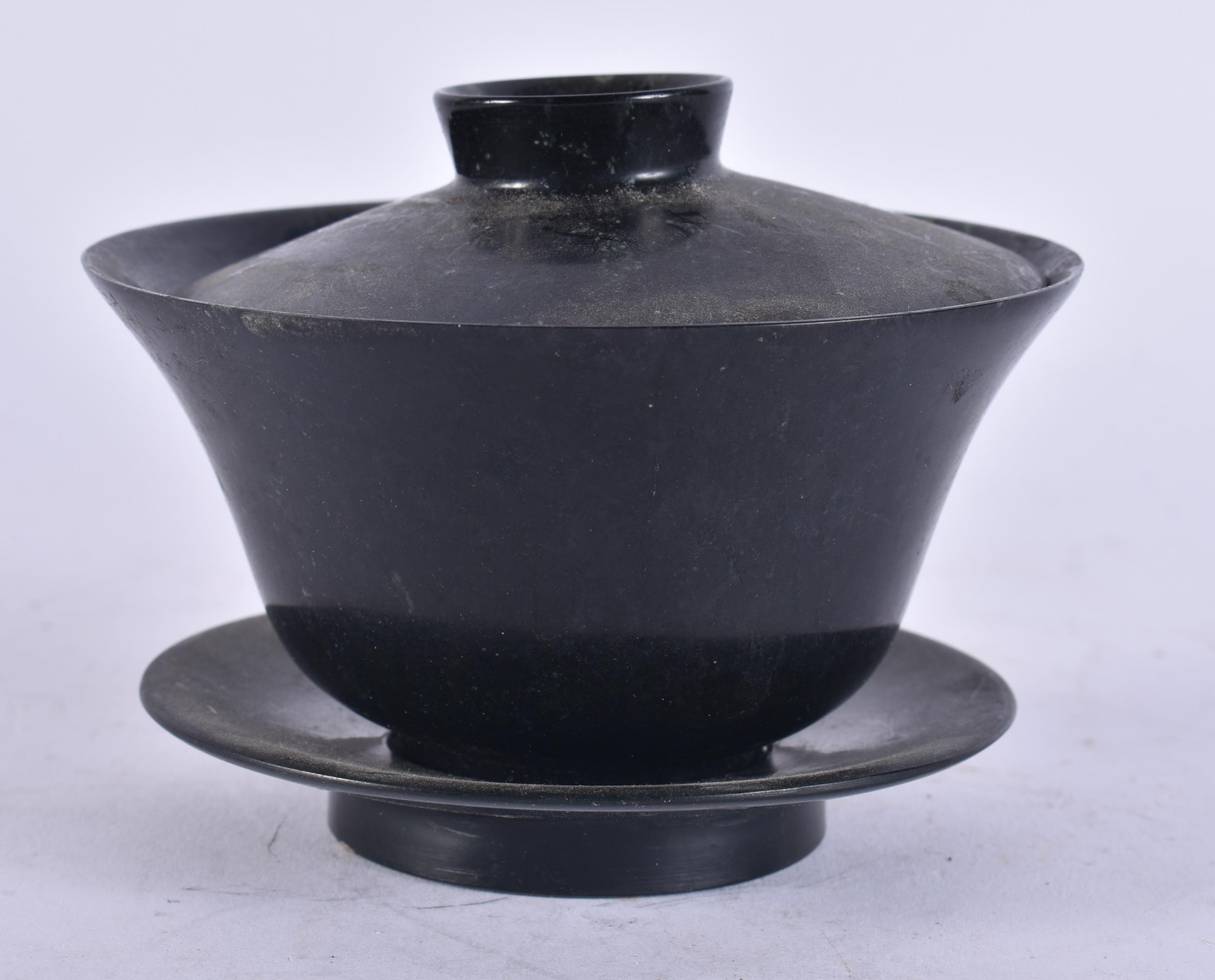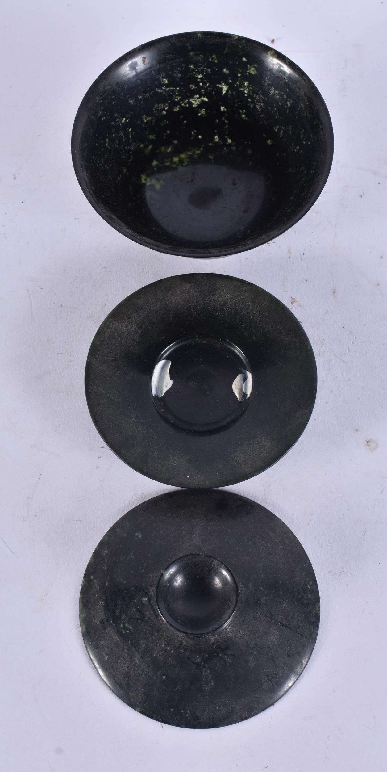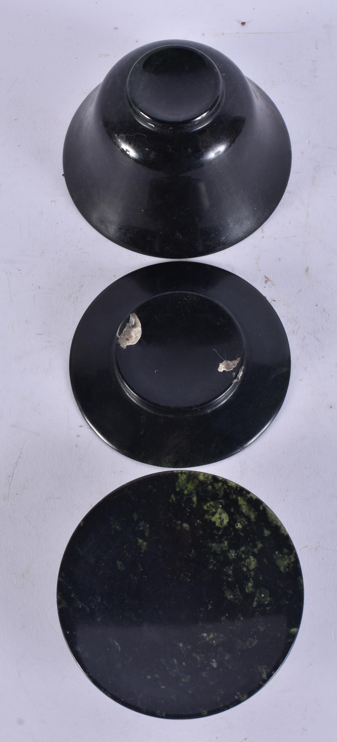 A CHINESE JADE TEABOWL ON STAND. 10 cm wide.