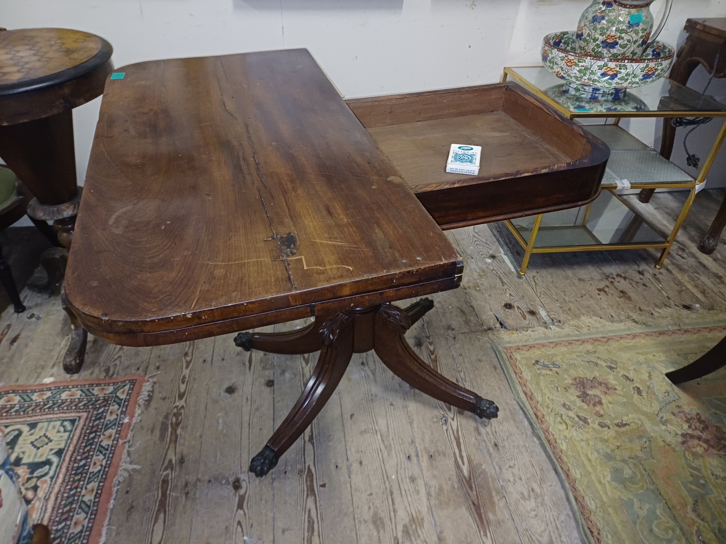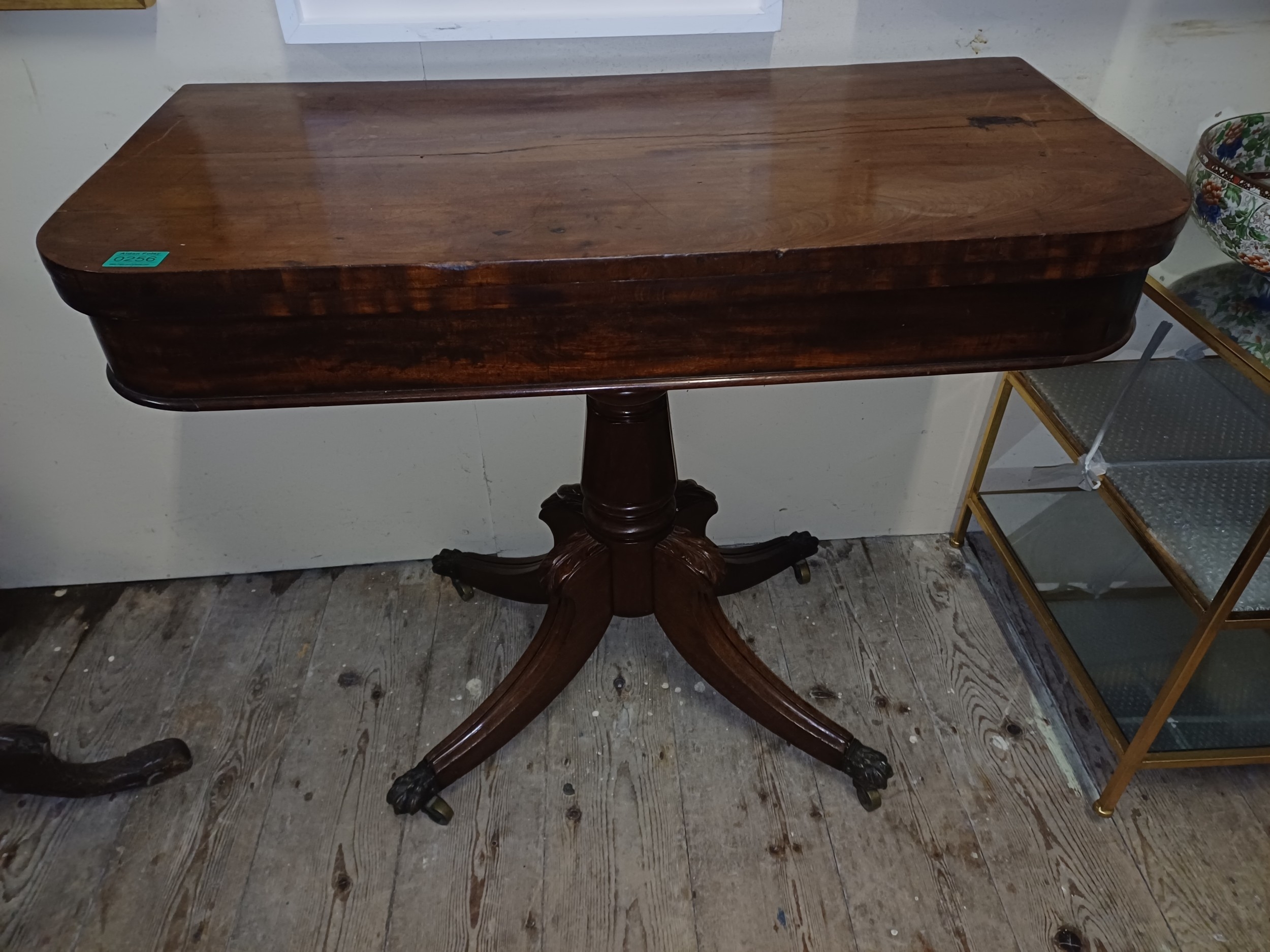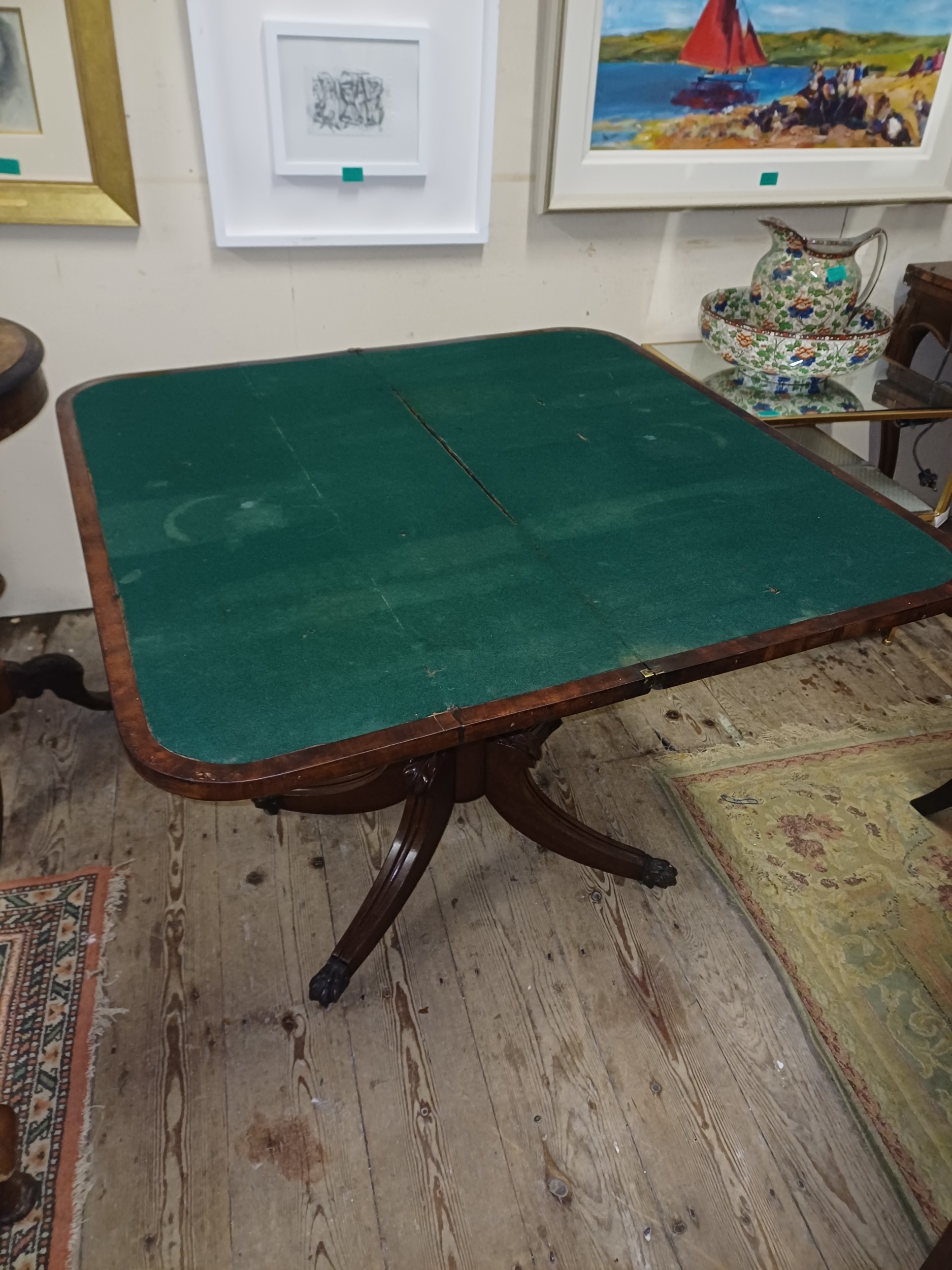 19th Century Mahogany Games Table on turned Colum with 4 splayed Legs