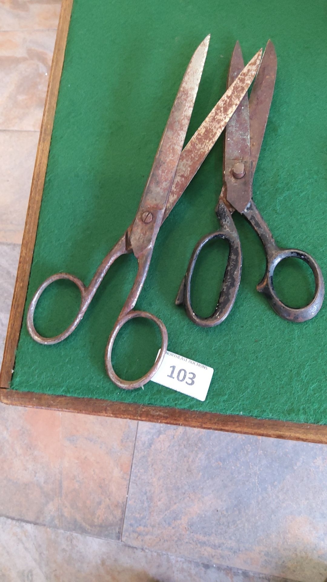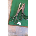 Pair of heavy forged tailors scissors,early 20th century; straight blades and loop handles, 2 pieces.