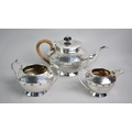 A Silver Plated Britannia Metal Three Piece Tea Service with Hammered Decoration