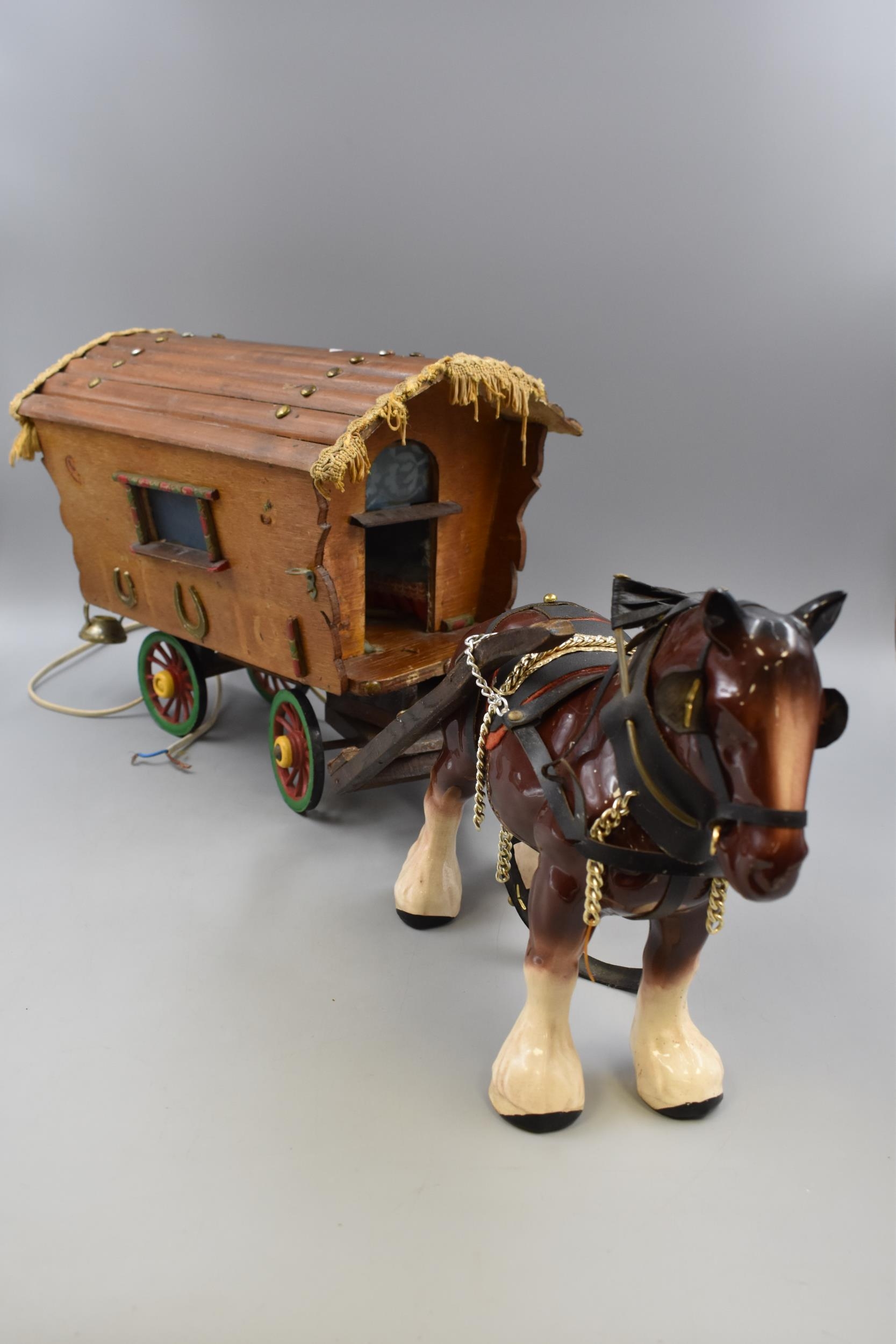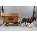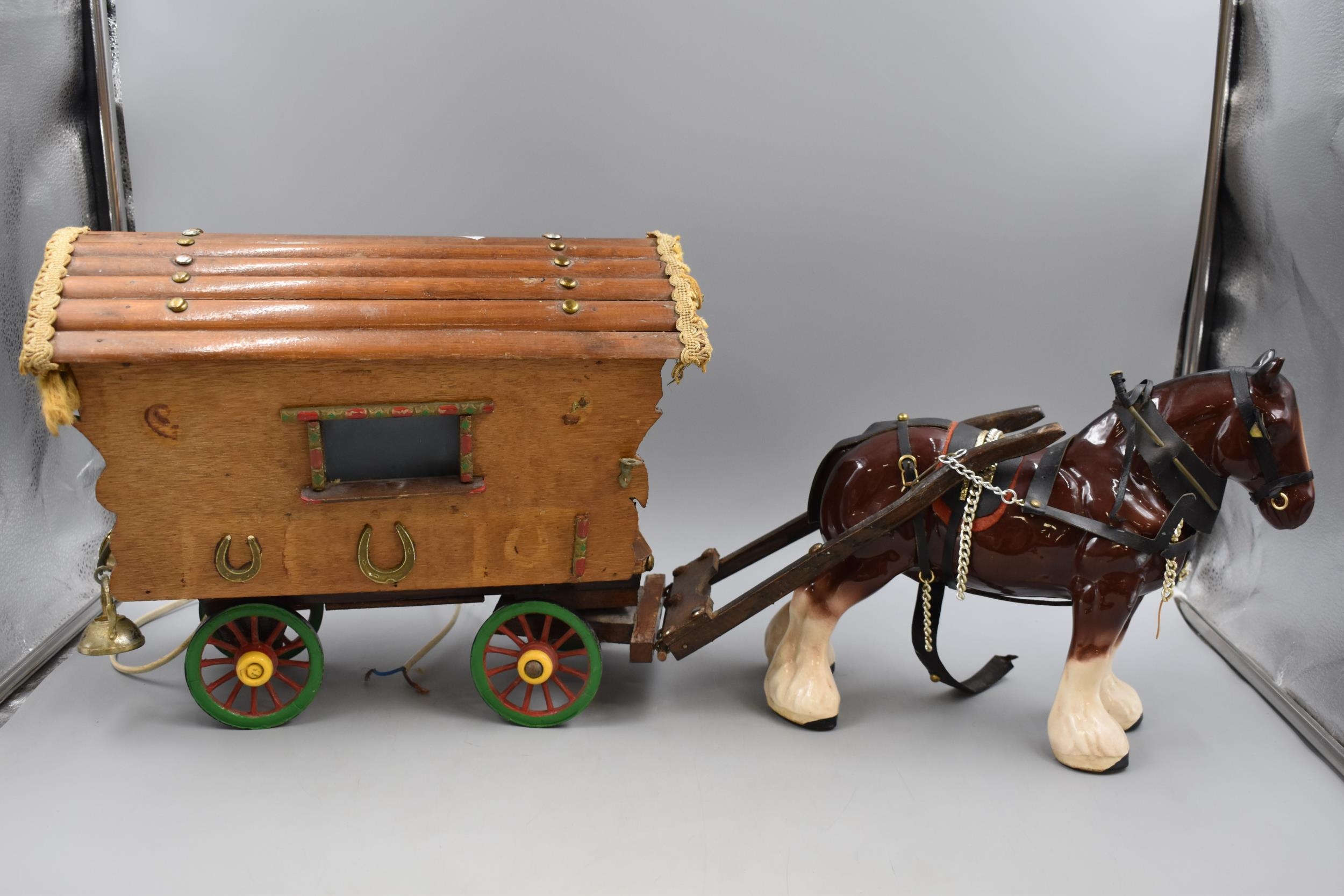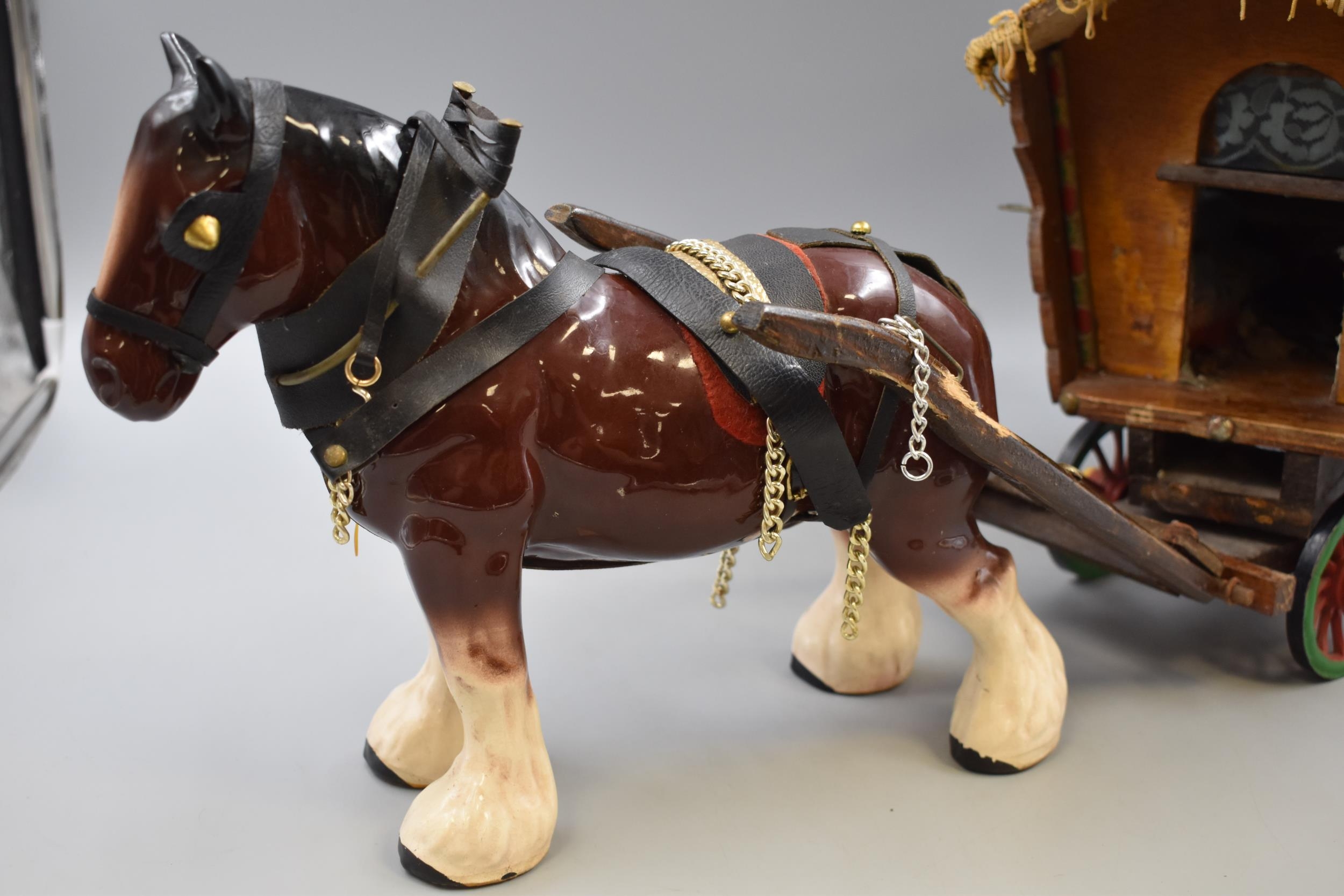 Handmade Gypsy Caravan with Ceramic Shire Horse with Furniture (Total Length 76cm)