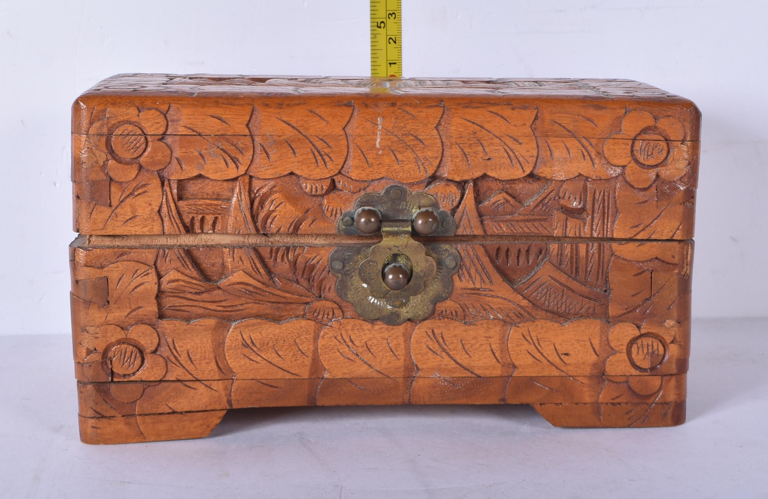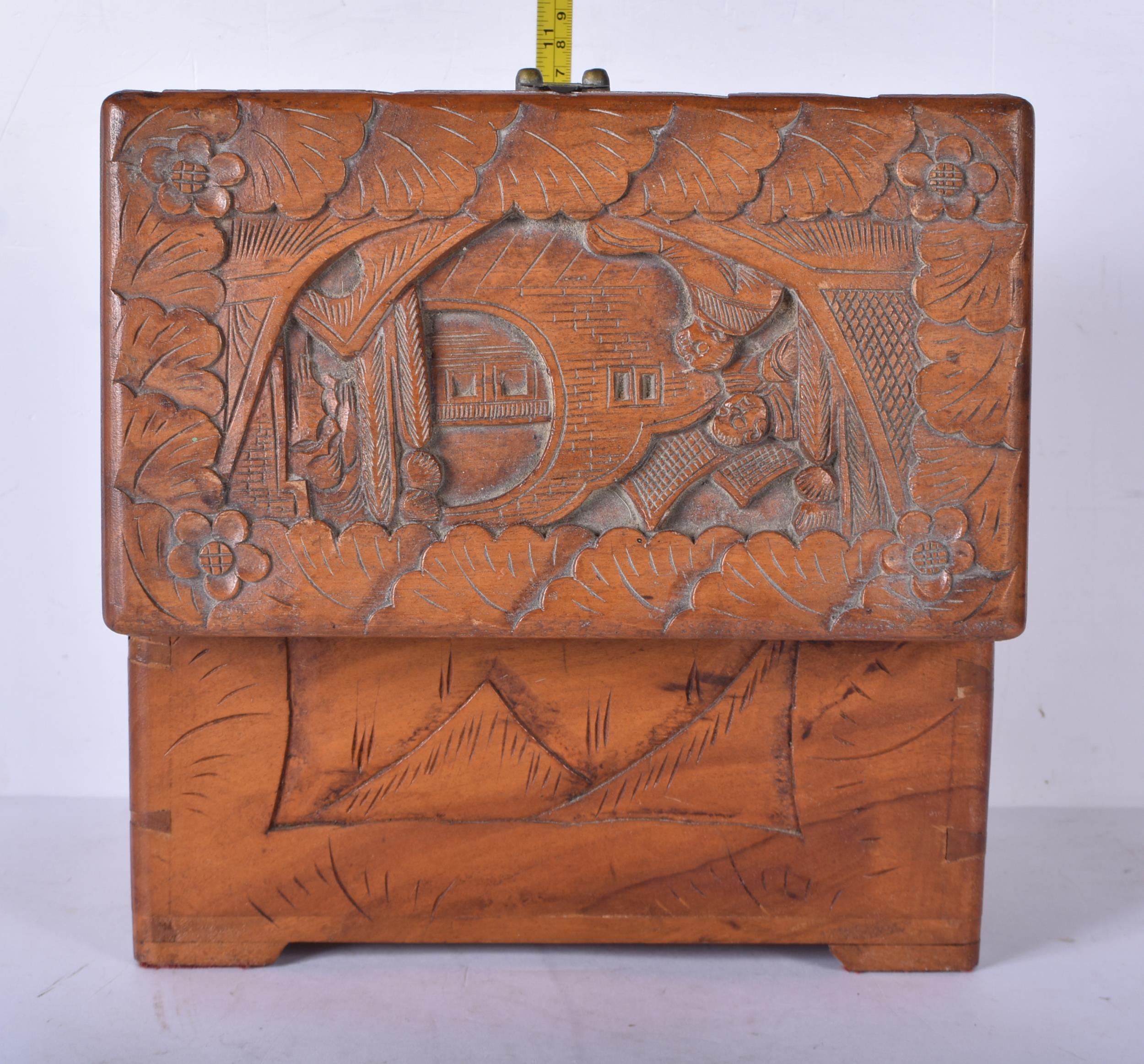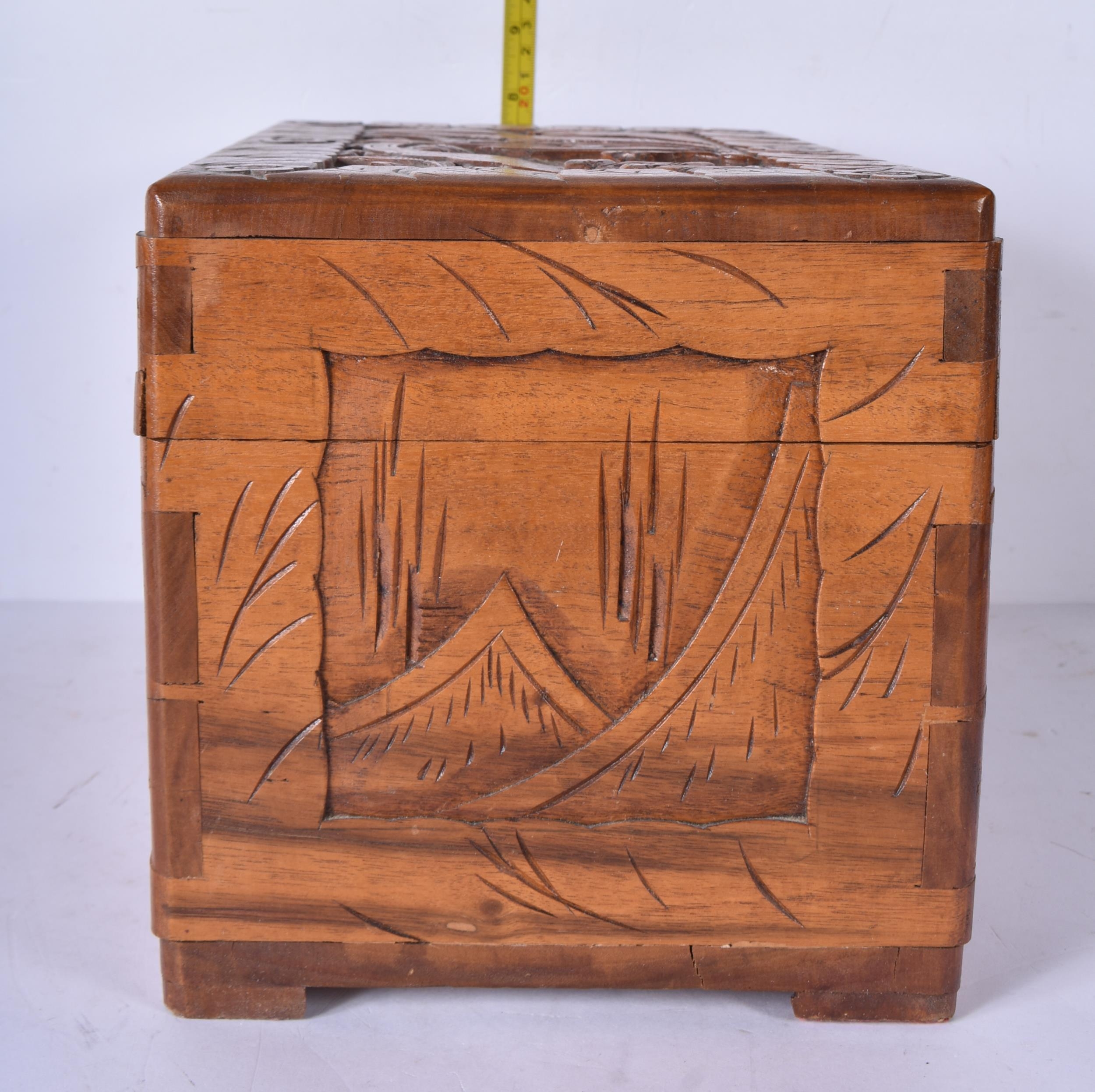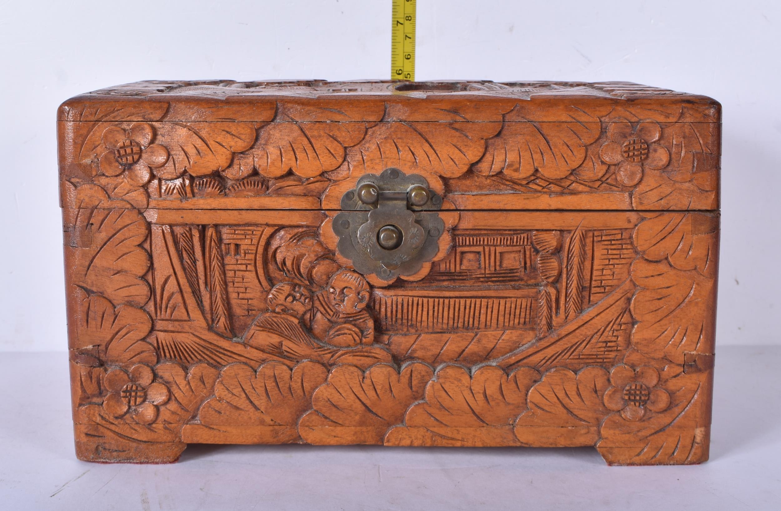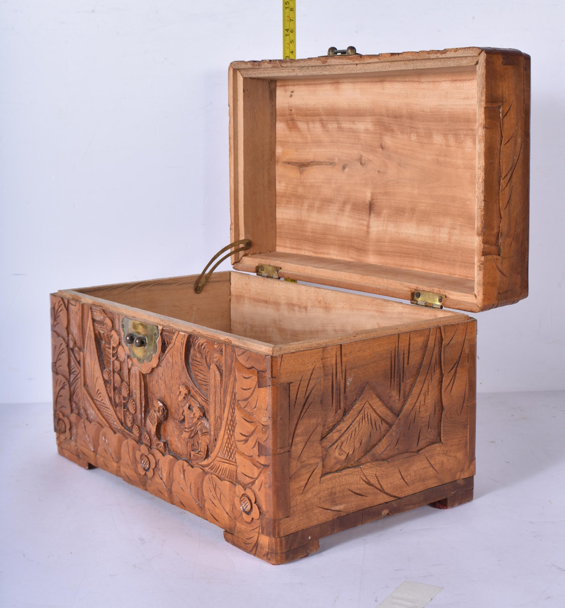 Three carved Chinese camphor wood boxes 20 x 30 x 19cm (3)