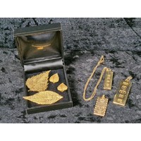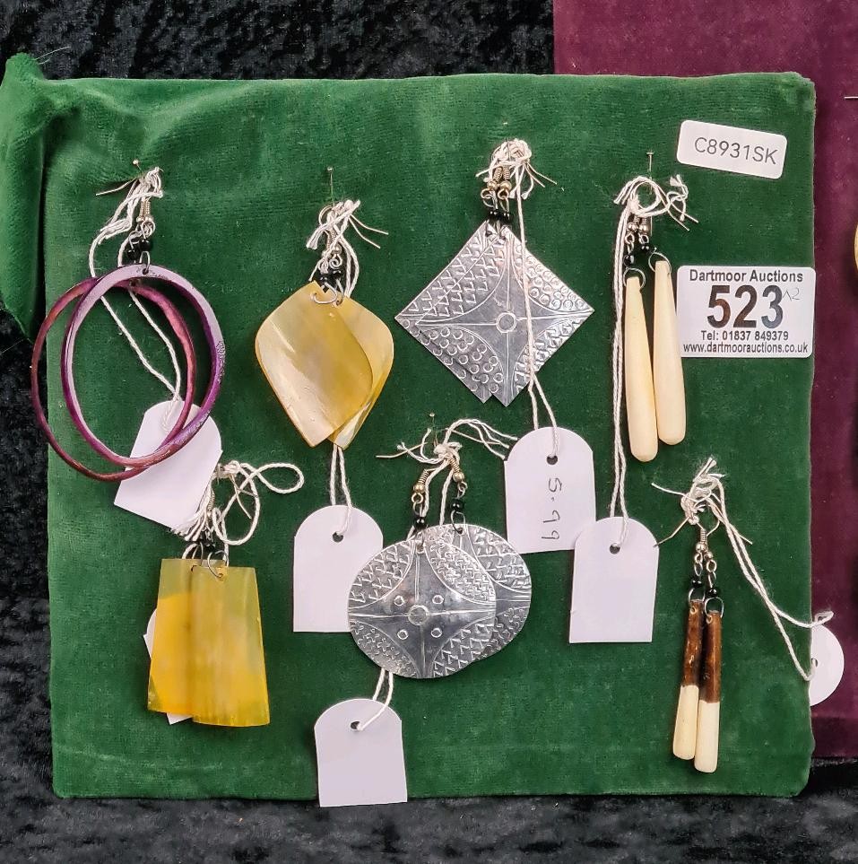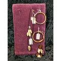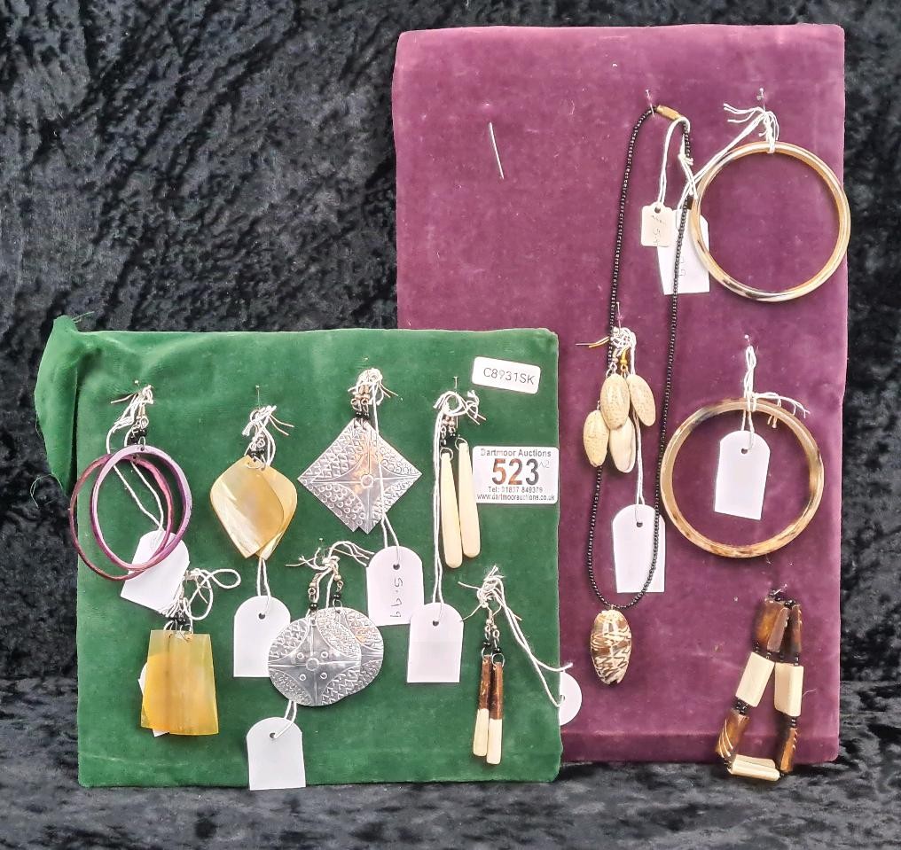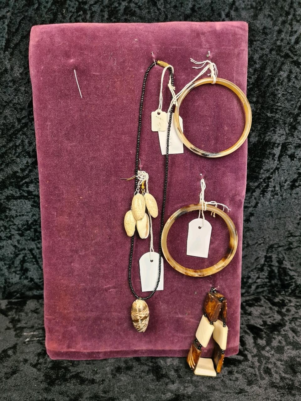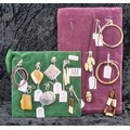 Two velvet cushioned collections of earrings, bangles and a necklace.