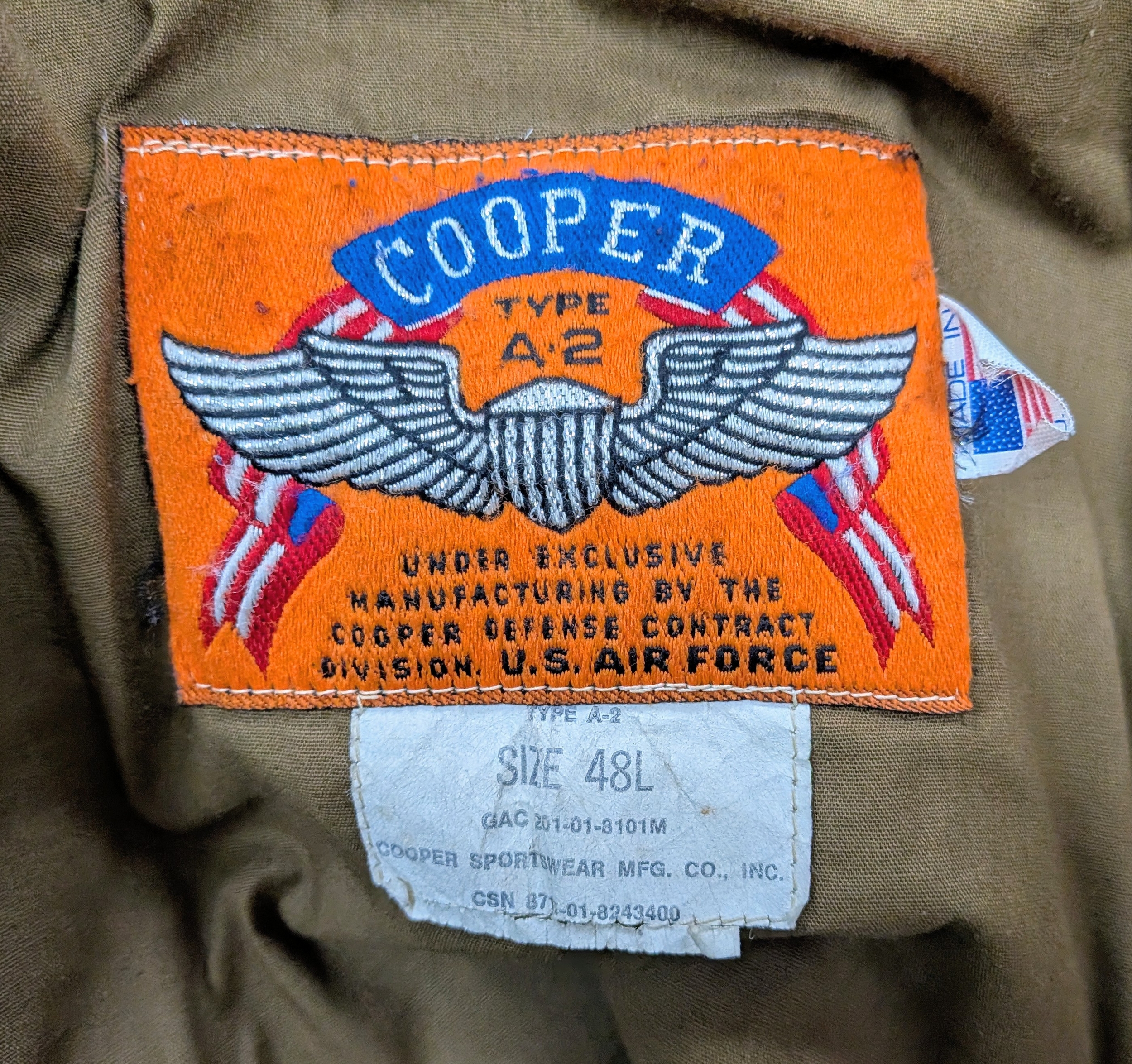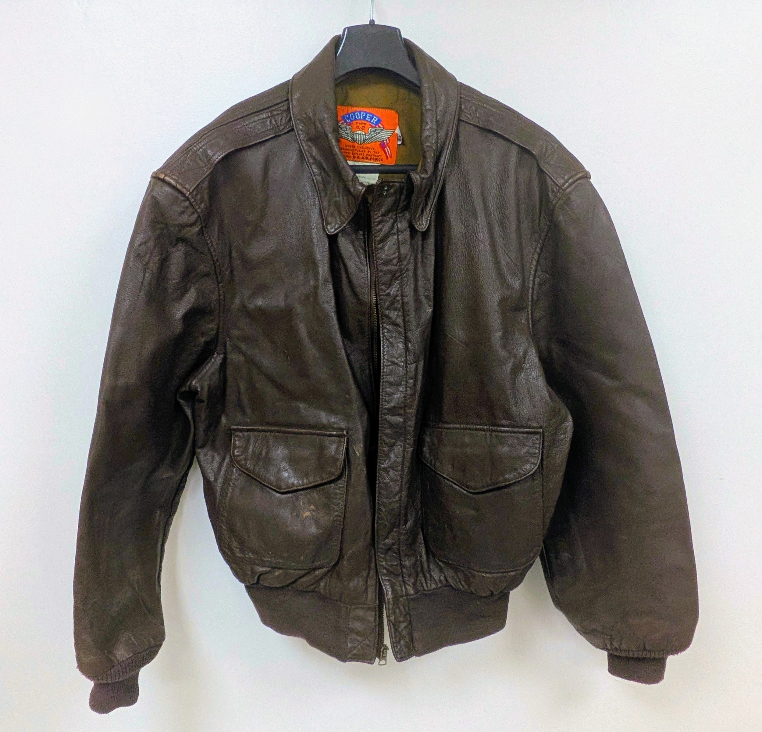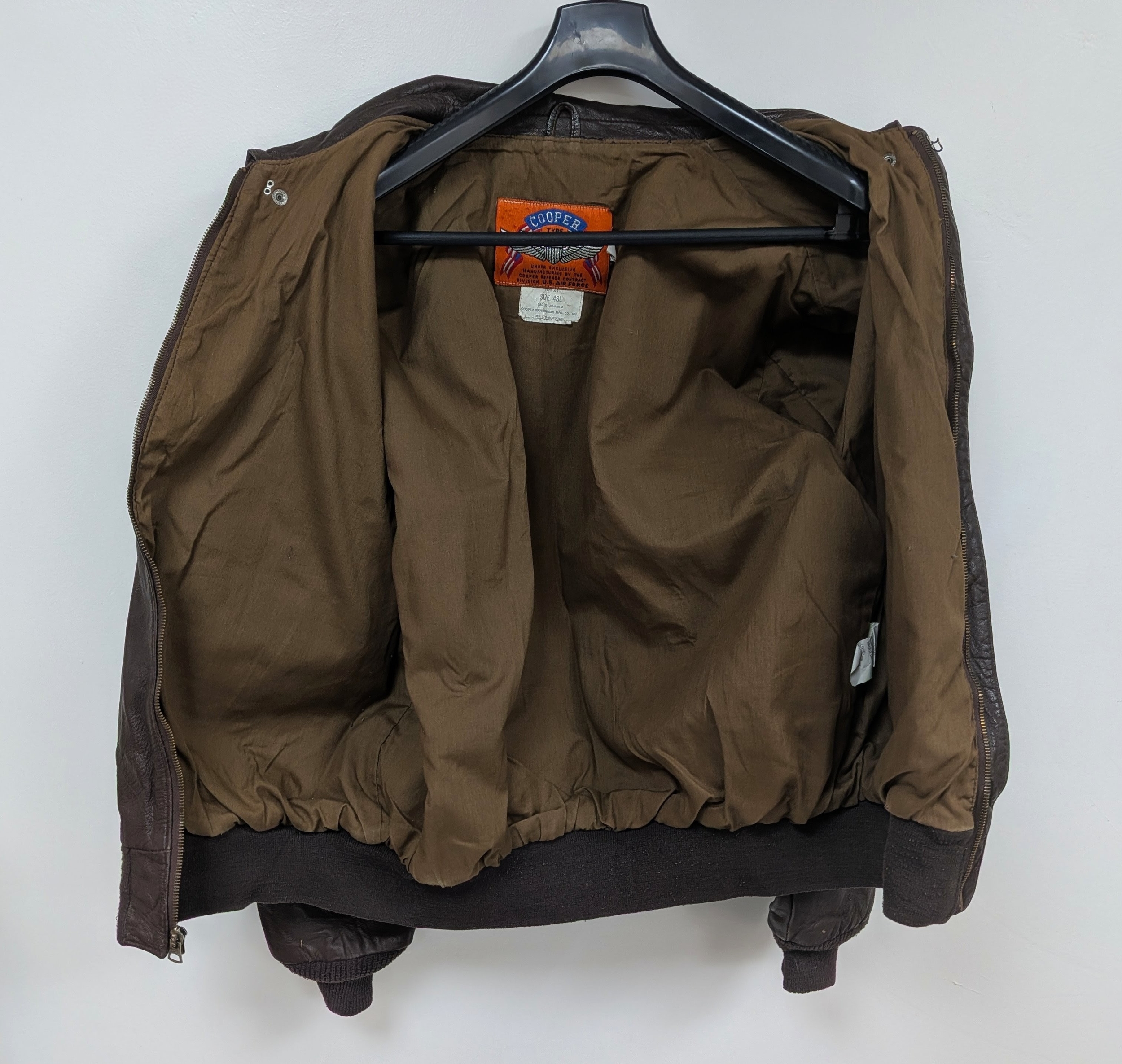A Vintage USA Airforce Cooper Pilots Leather Jacket. Size 48L. Worn condition but still wearable.