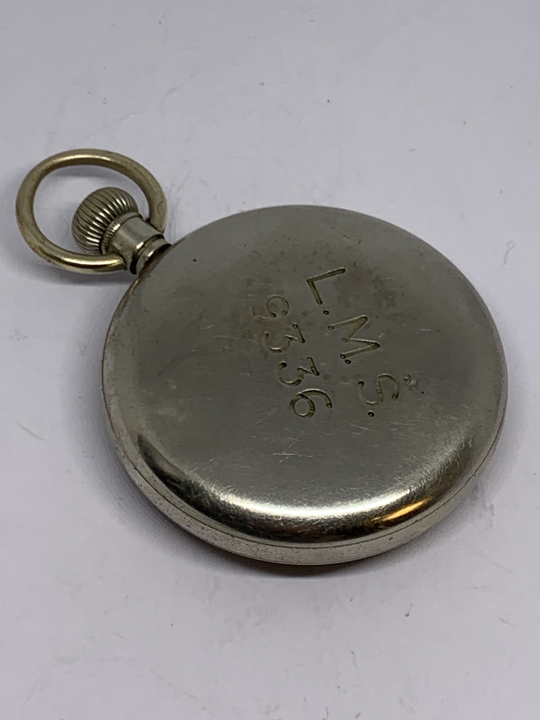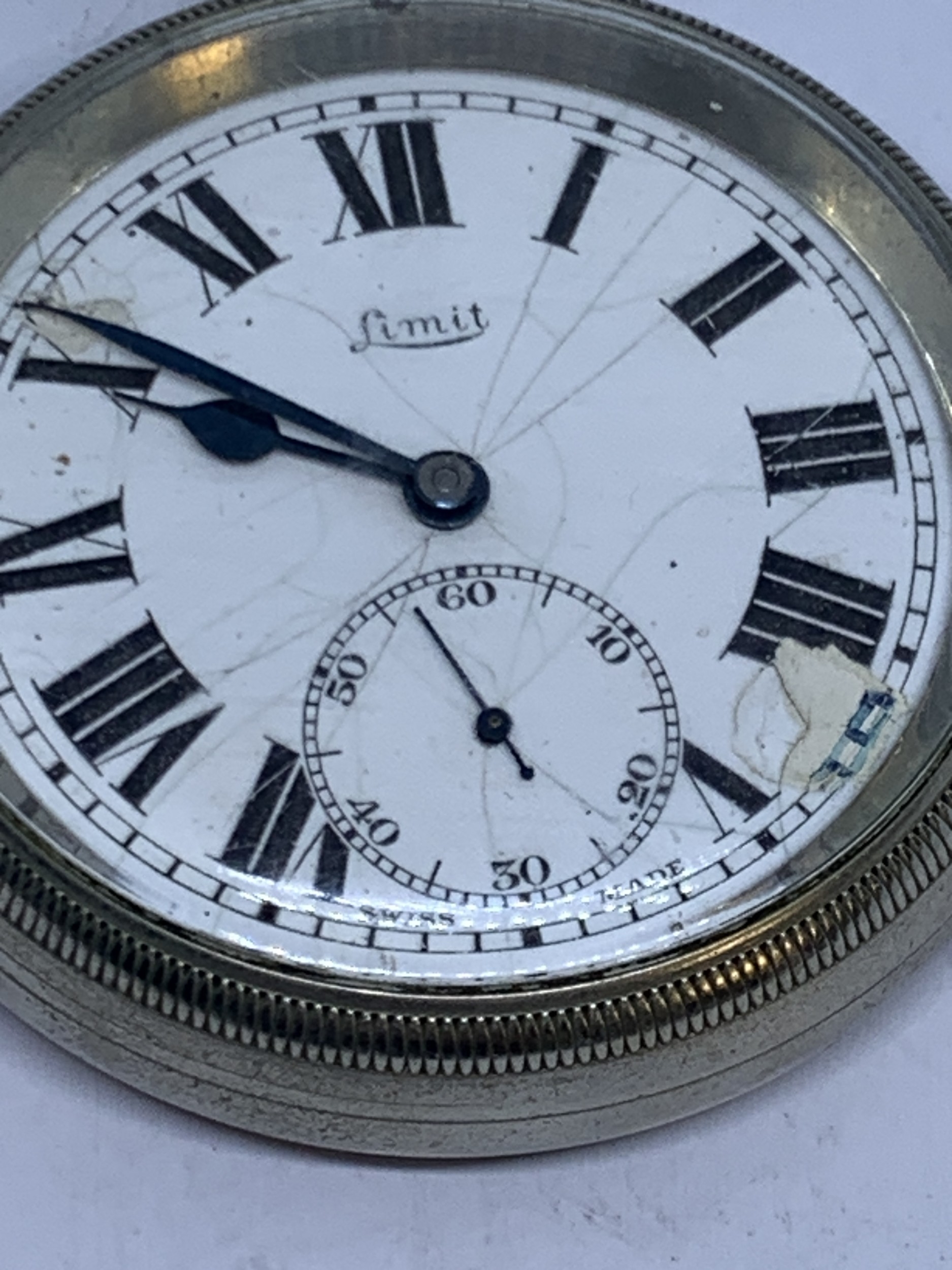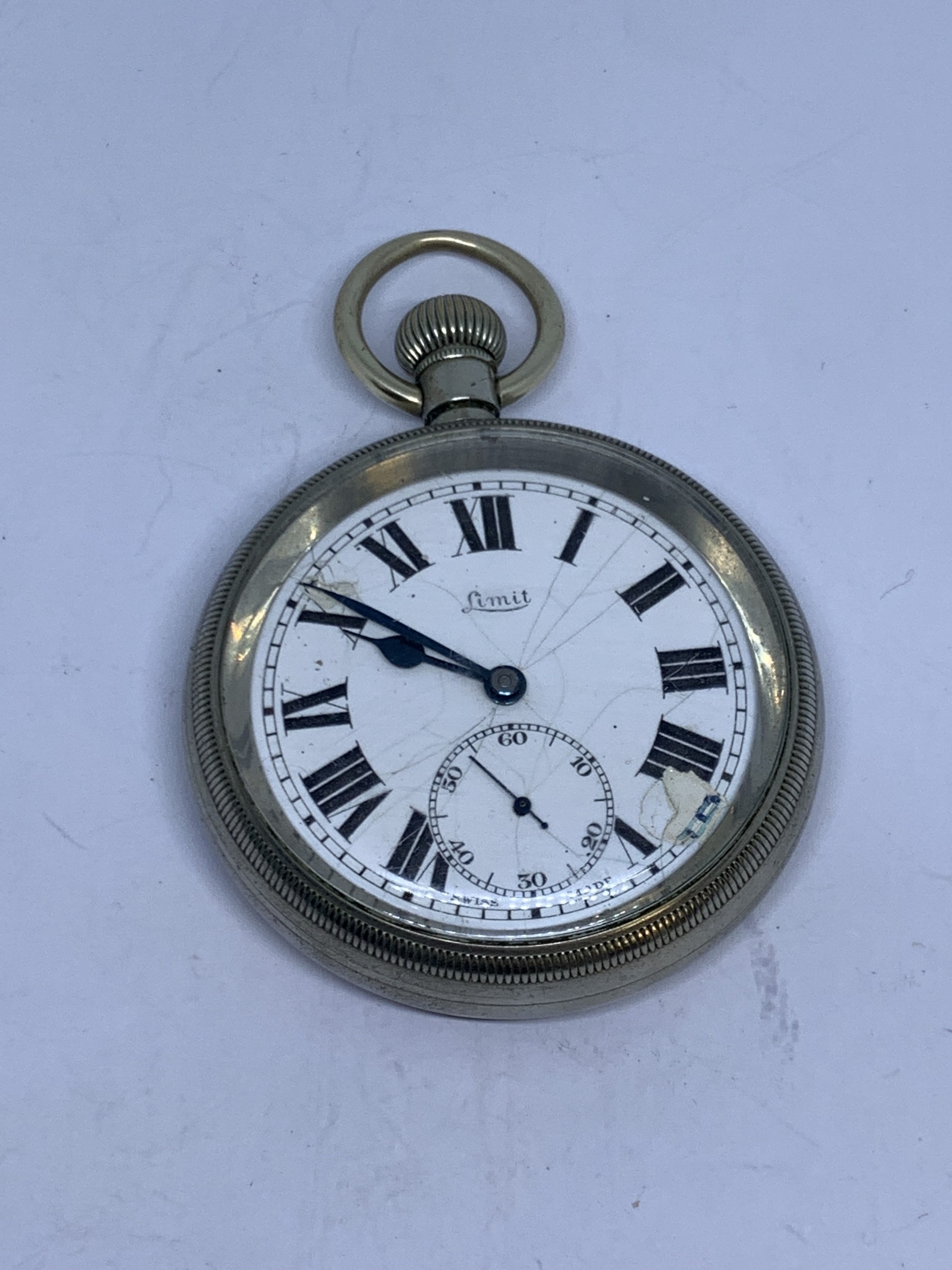 A LIMIT POCKET WATCH WITH WHITE ENAMEL FACE, ROMAN NUMERALS AND SUB DIAL, MARKED LMS 9336 TO THE REAR