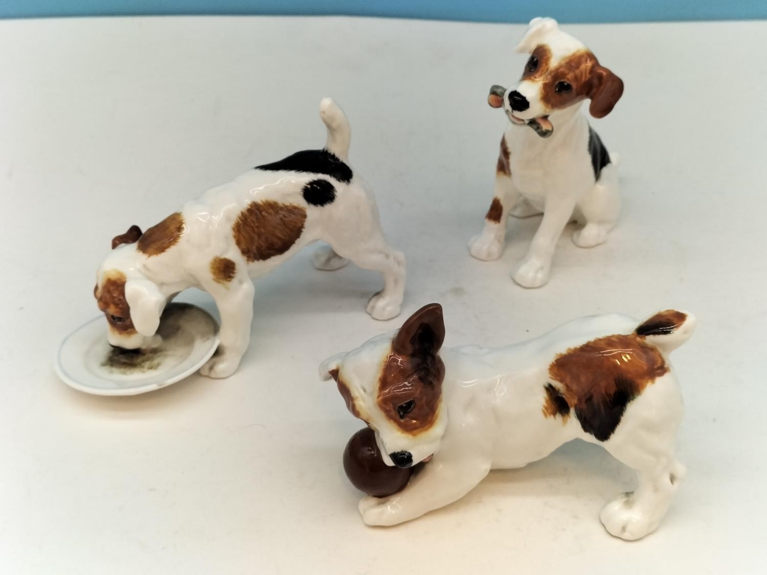 Royal Doulton Jack Russell Figures (3) to include HN1159, HN 1158 (Slight Nibble to Saucer Rim) and HN 1103. Tallest 9.5cm.