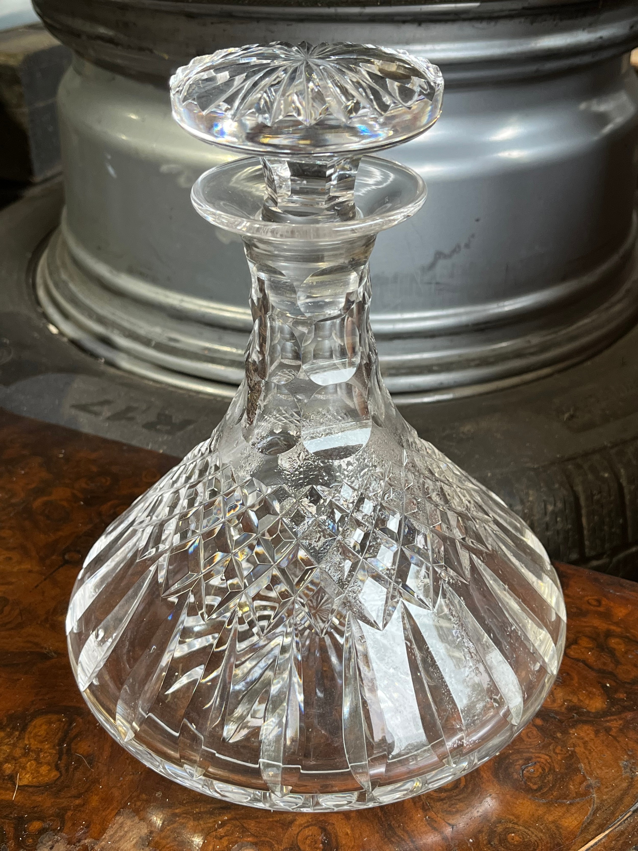 Heavy cut glass decanter