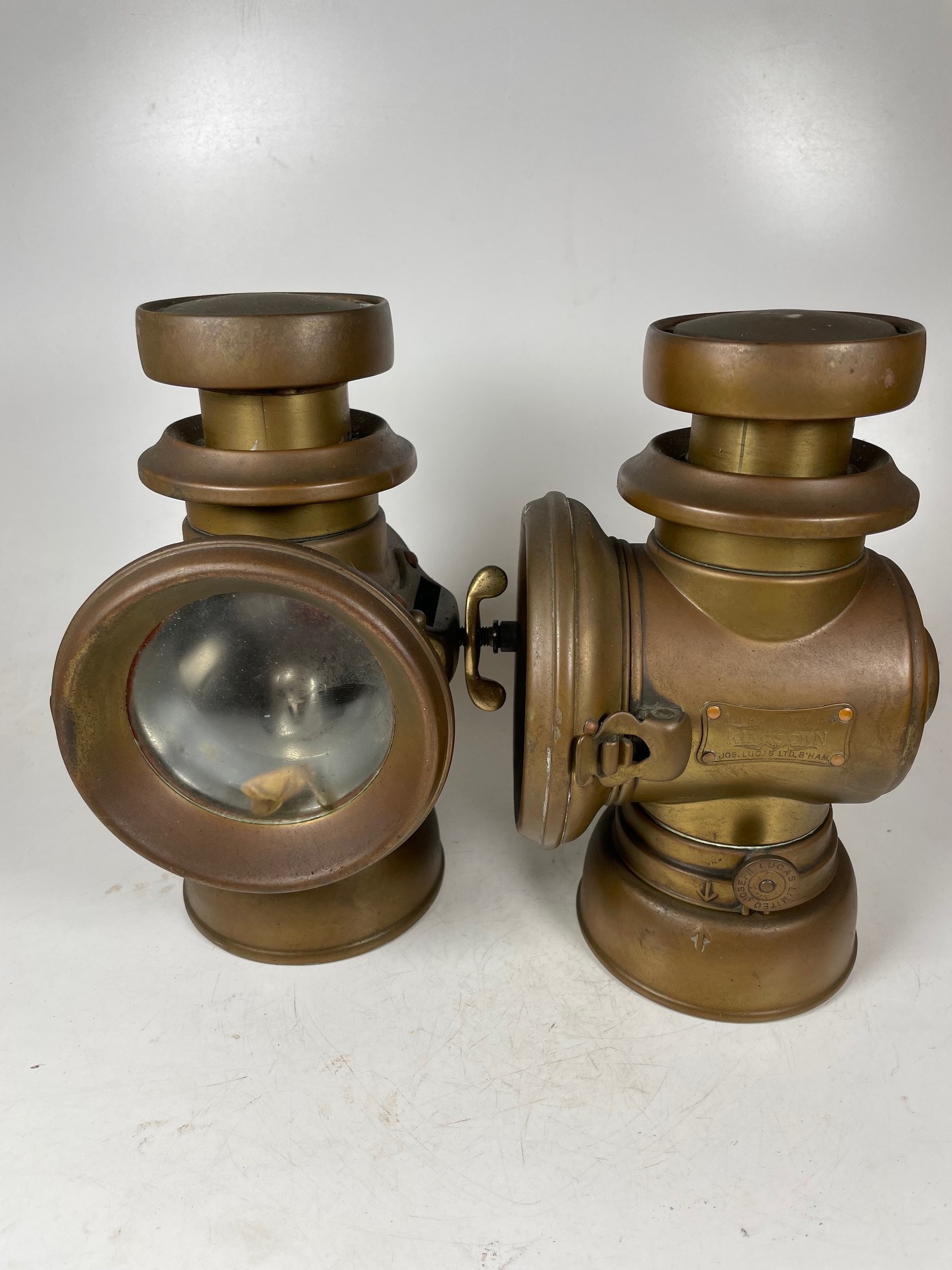 Pair Lucas No.145 Brass Veteran Car Lamps, Lucas Kings Own Model, Appearing Complete In Notably Good Condition