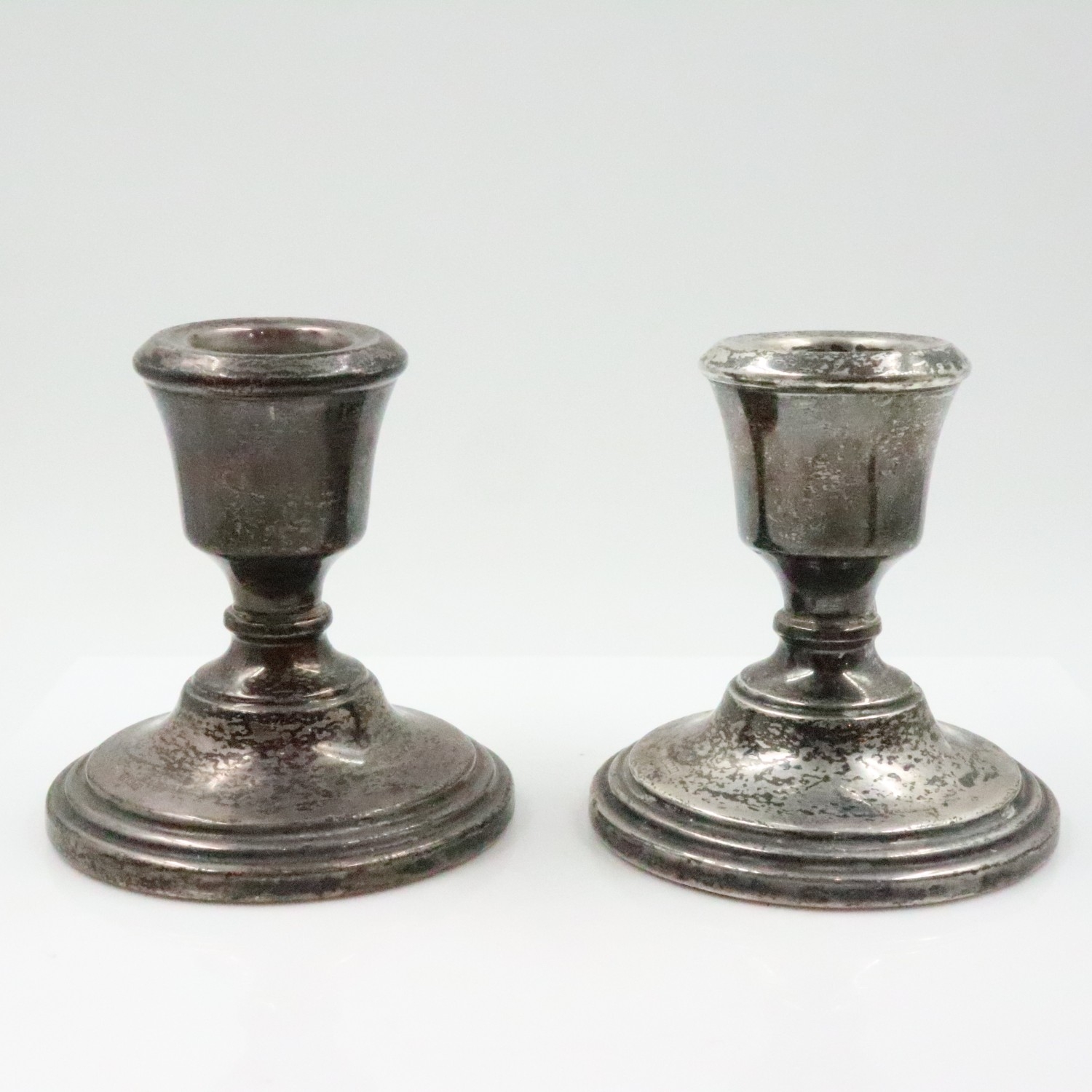 Pair of hallmarked silver dwarf candle sticks, H: 70 mm. UK P&P Group 2 (£24+VAT for the first lot and £5+VAT for subsequent lots)