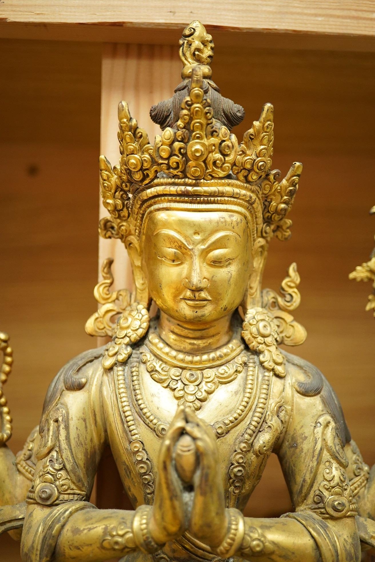 A large Sino Tibetan gilt-bronze figure of Avalokiteshvara, 31cm high