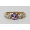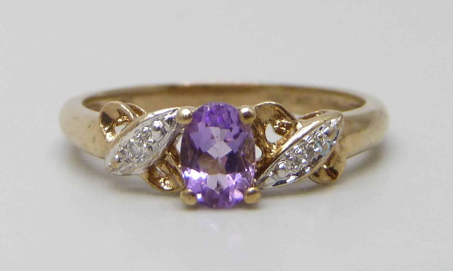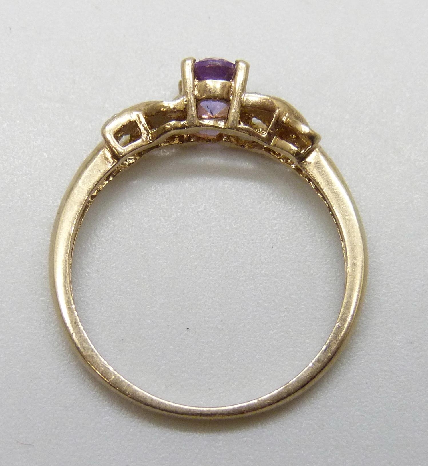 A 9ct gold, purple stone and diamond ring, 1.9g, O