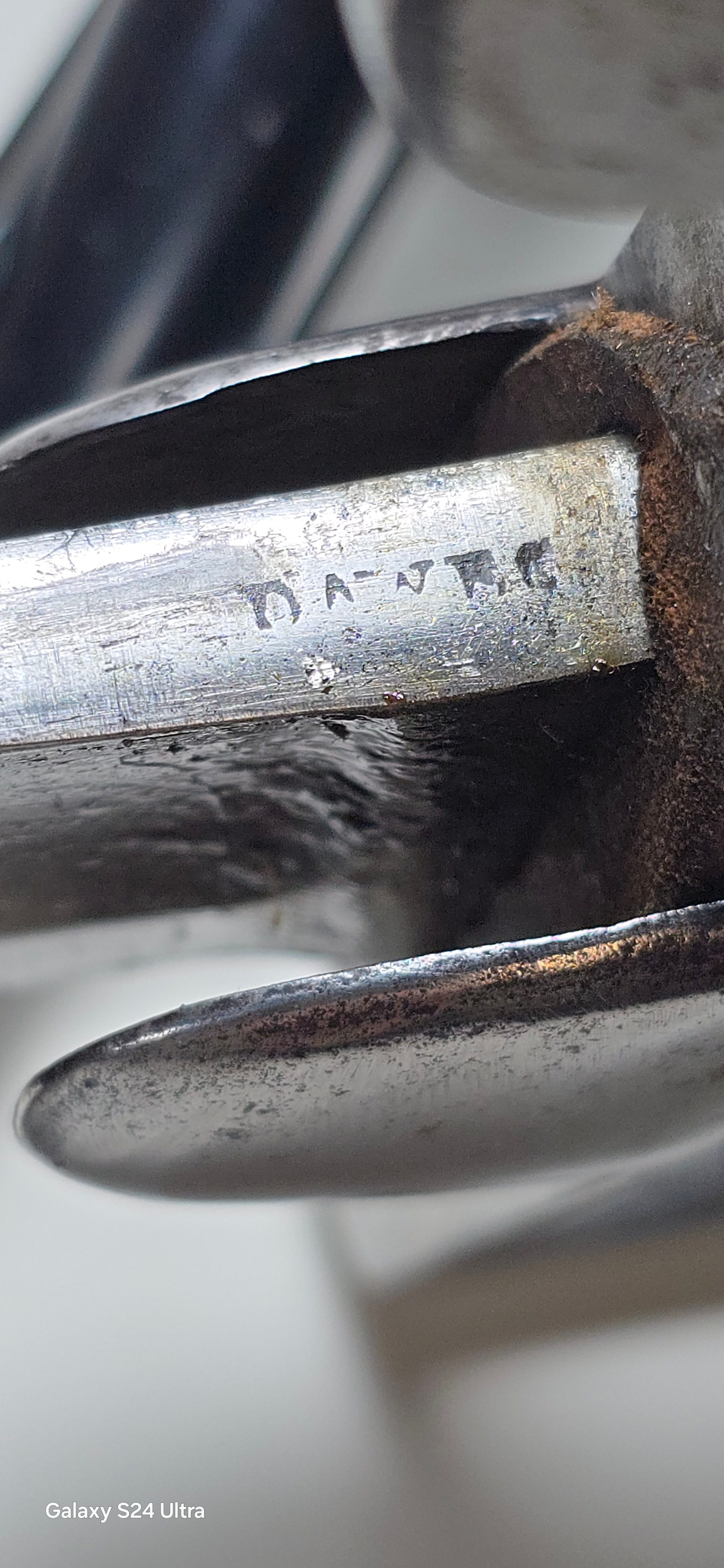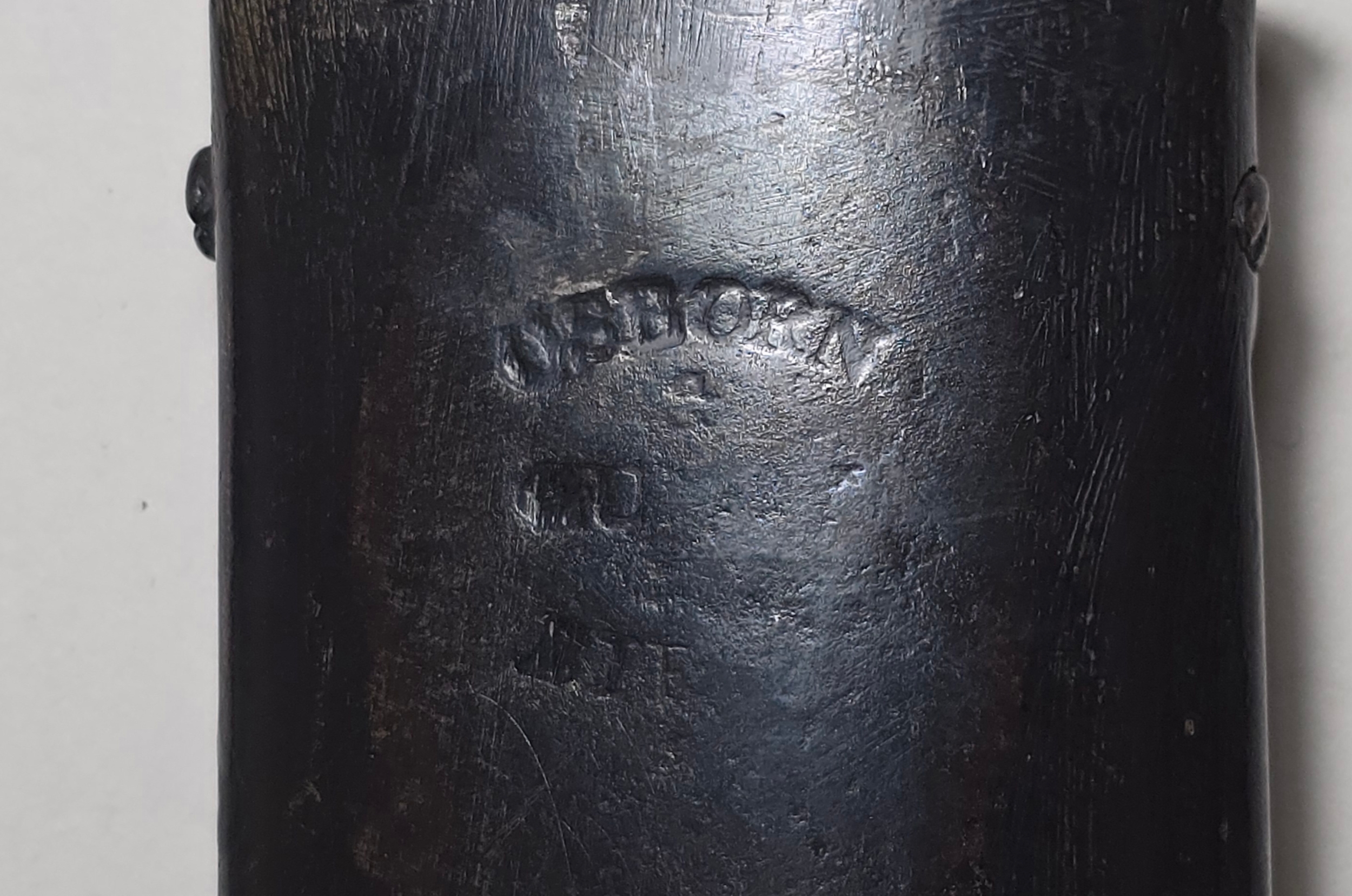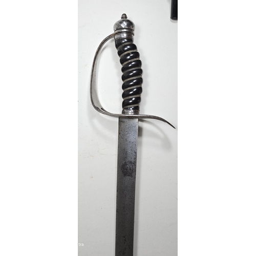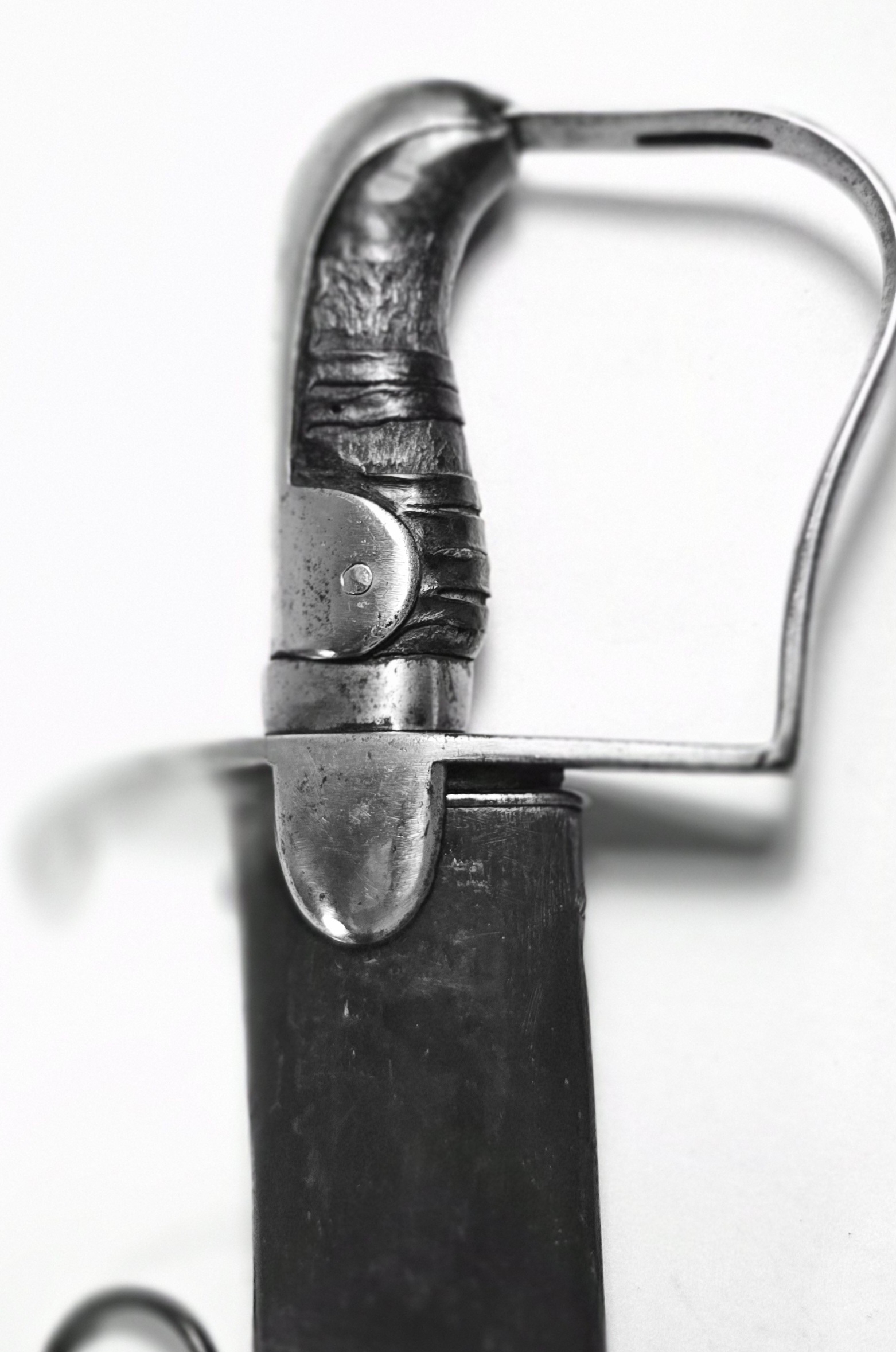 Scarce 1796 pattern cavalry trooper's sword marked for the 2nd Troop of the Royal Life Guards and the 12th Light Dragoons, regulation curved single edge blade 81cms cut with a single broad fuller stamped with crowned 4 government inspector's mark, back edge signed DAWES, regulation iron stirrup hilt deeply carved 12 LD K 11 above the quillon, and T2 RL G 29 beneath guard, iron grip strap, wooden grip (leather covering now mostly missing), in its iron scabbard stamped at the top OSBORN & GU(NBY) BIR(Mm) and deeply stamped with 12 LD D 29 (the last 2 erased) Good condition, some age wear overall.