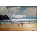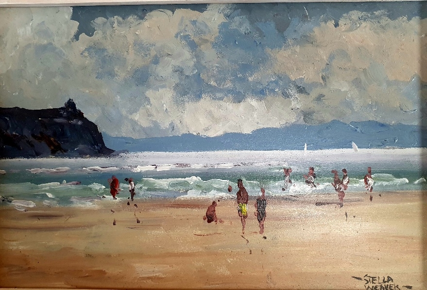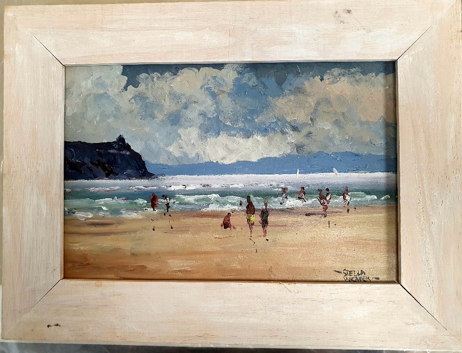 Original Stella Weaver Oil Painting of a Beach Scene. Framed and signed by the artist, the overall size is 33cm x 24cm.