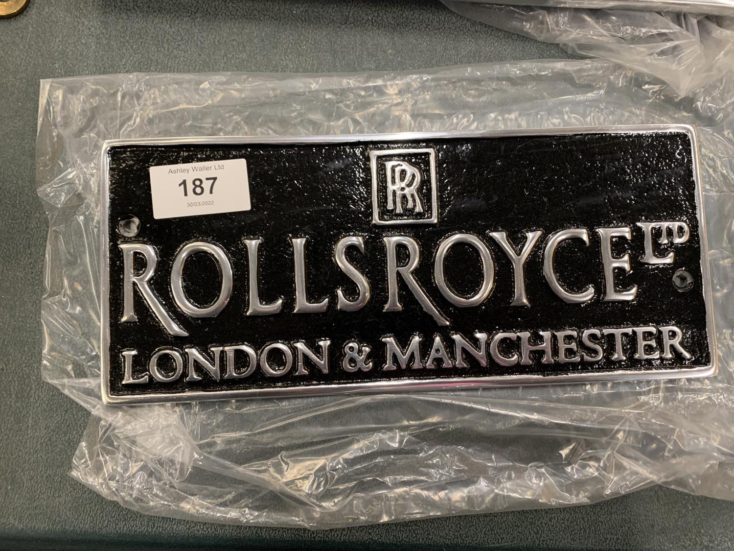 A CHROME AND BLACK RR LONDON & MANCHESTER SIGN 24.5CM X 10.5CM
