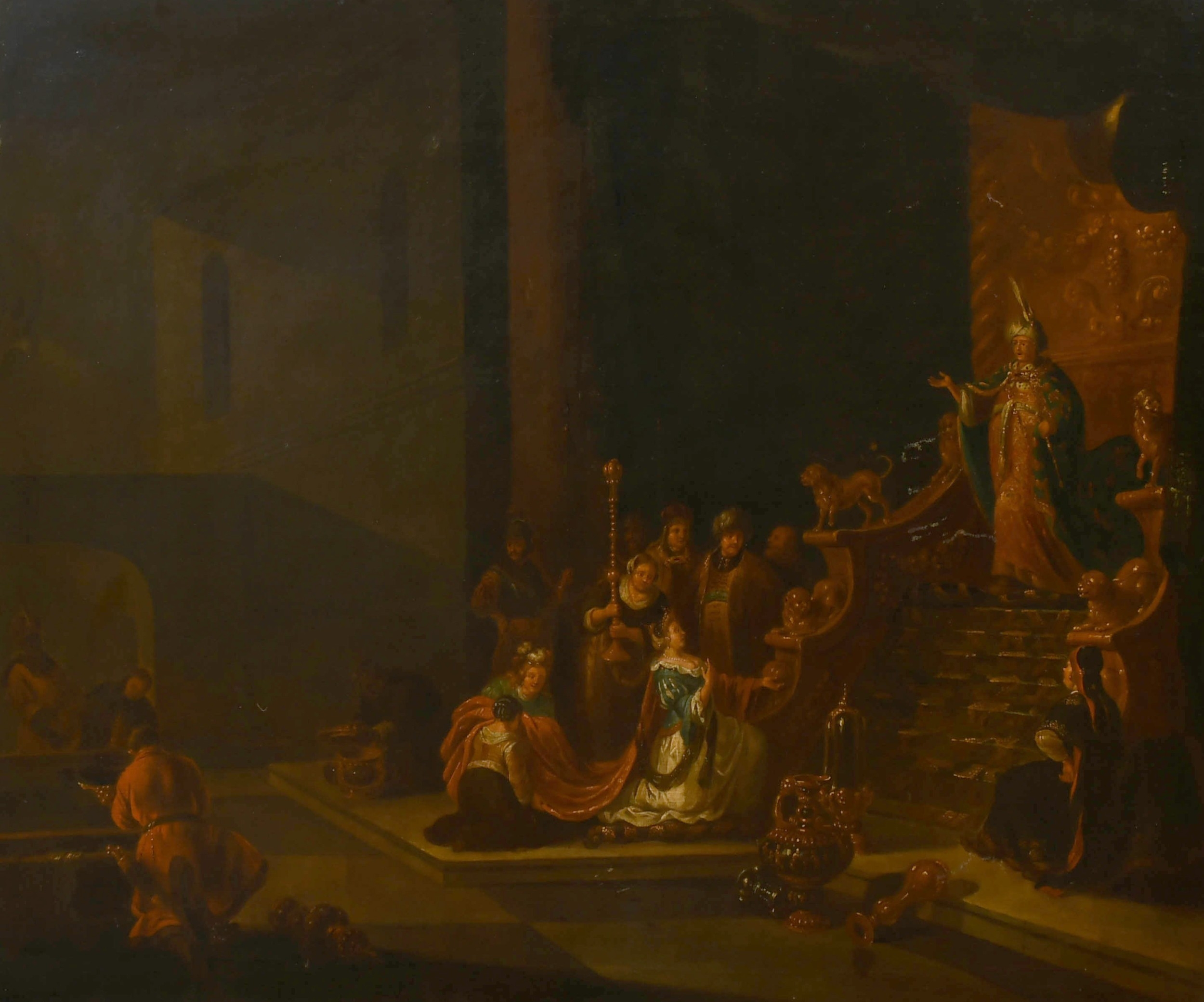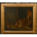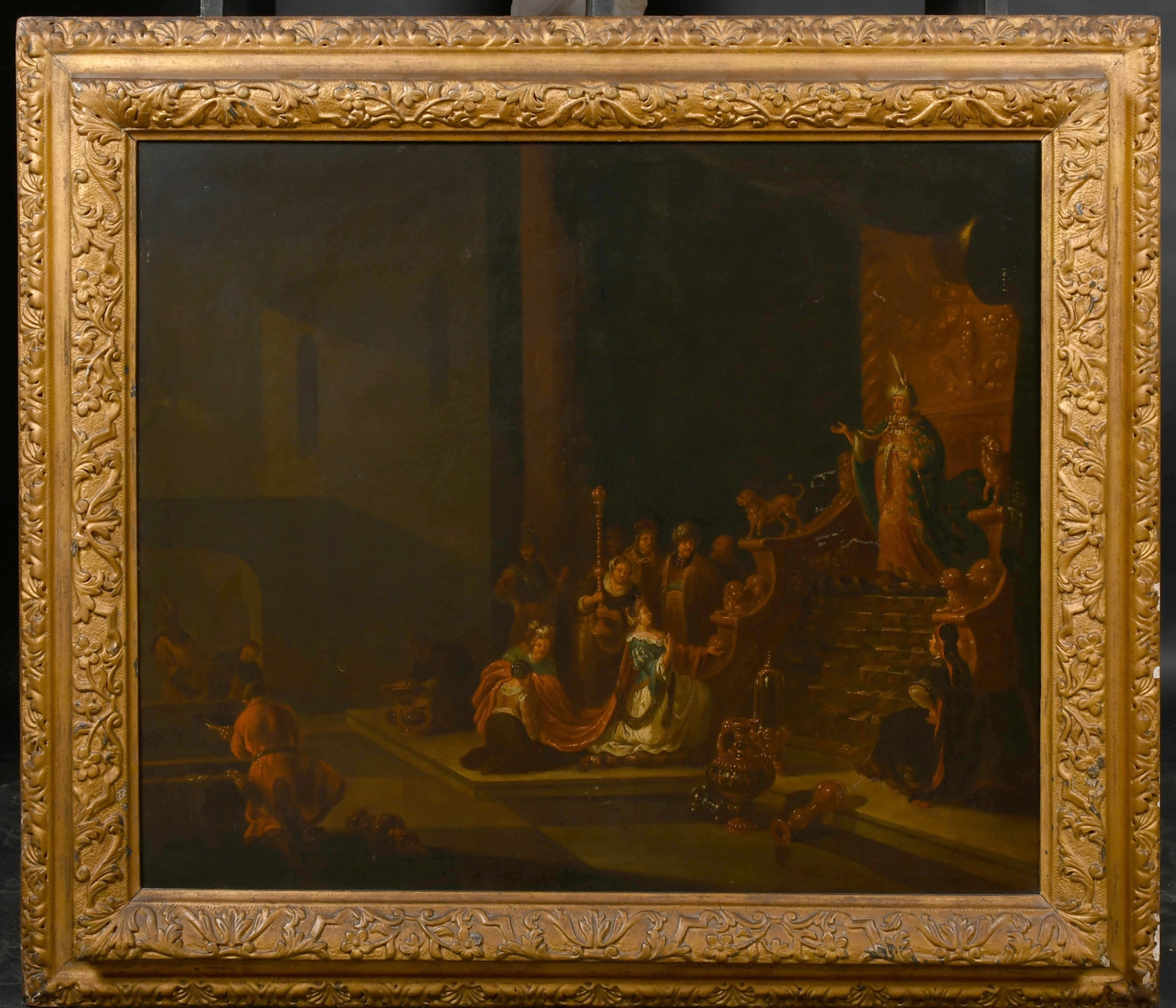 Circle of Frans Franken 11 (1581-1642) Flemish. Esther before Ahasuerus, Oil on canvas, in a Carved Giltwood Frame, 24" x 28.5" (61 x 72.3cm)