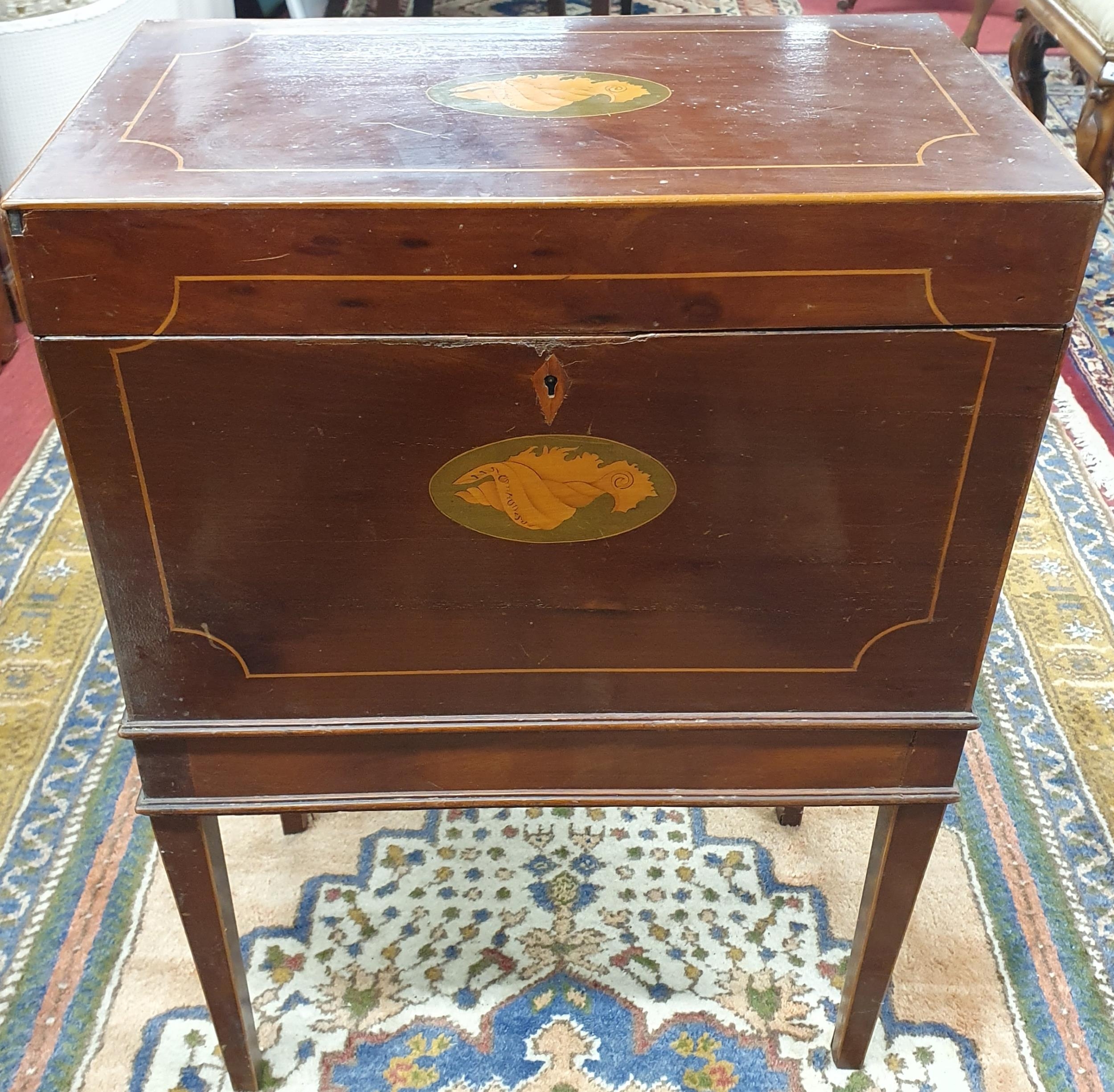 A Regency Mahogany and inlaid Work Box on stand. W45 x D26 x H64cm approx.