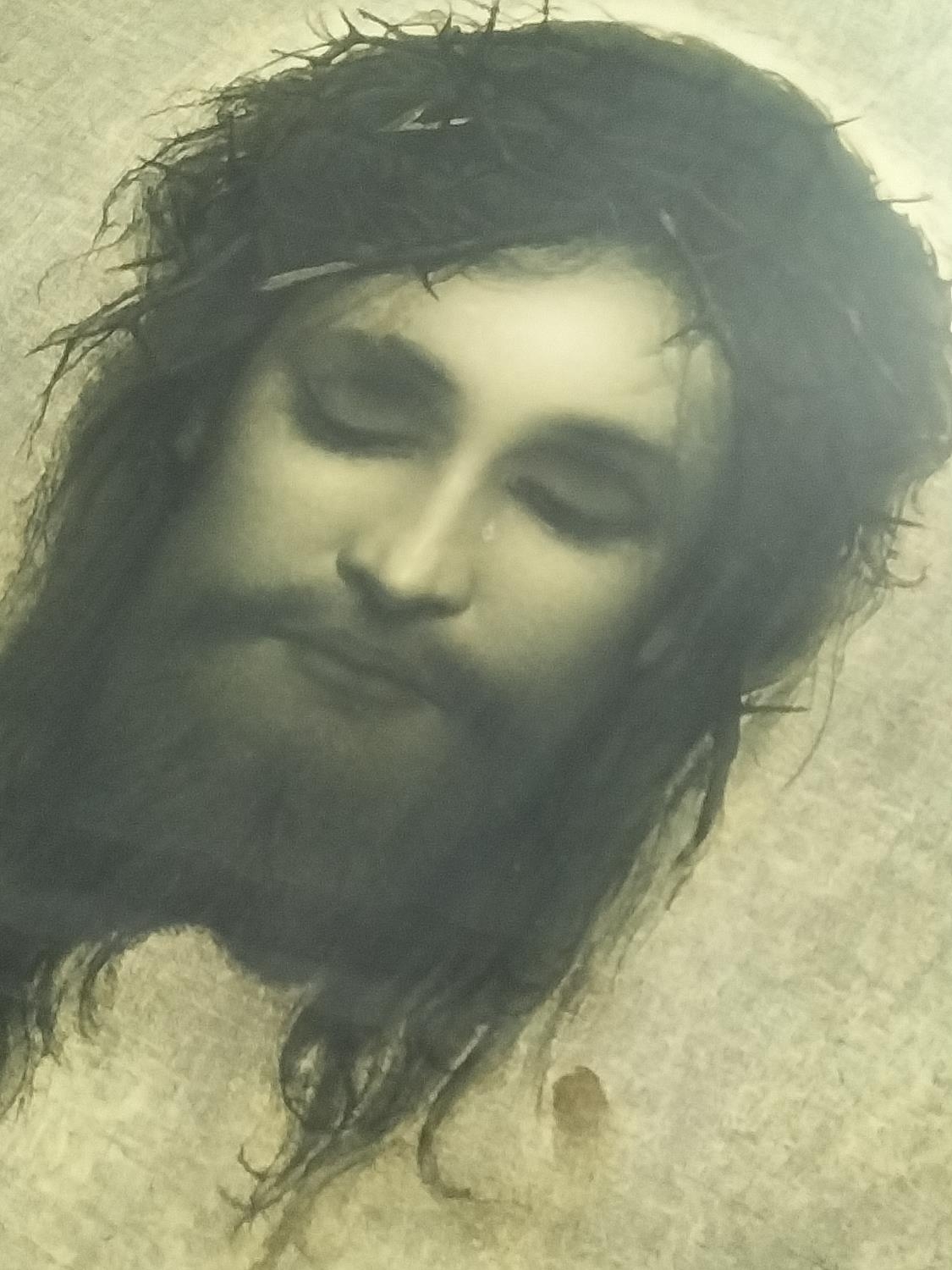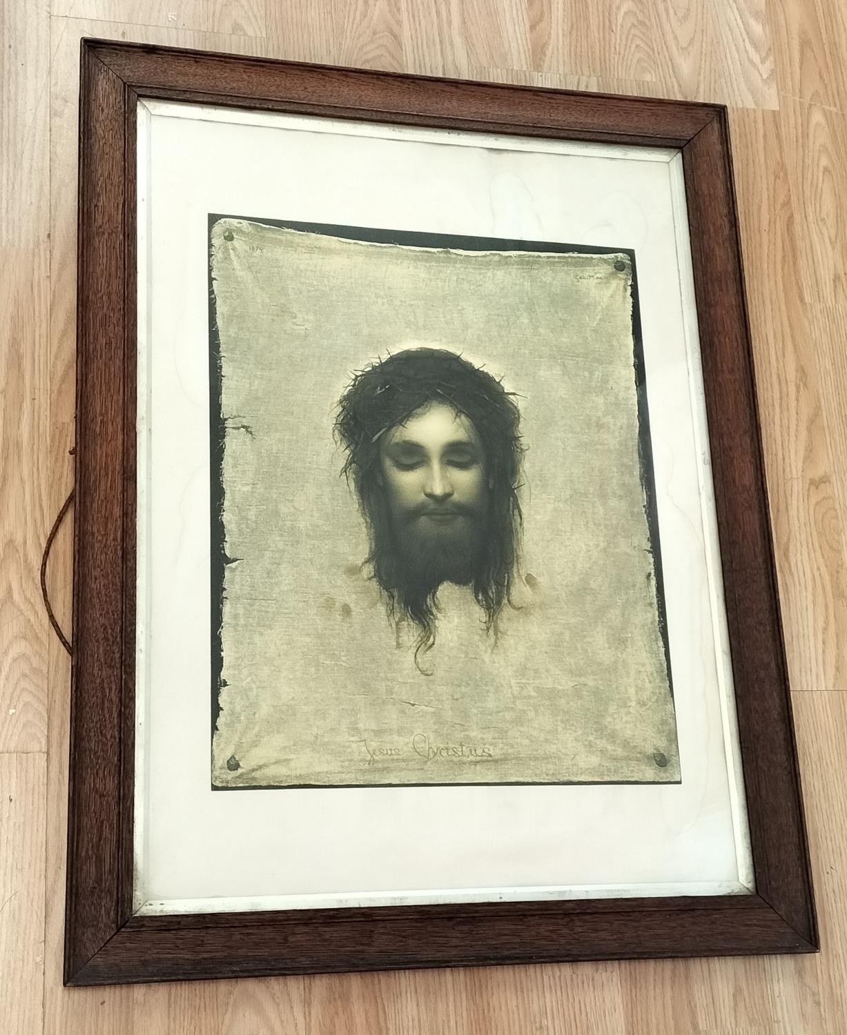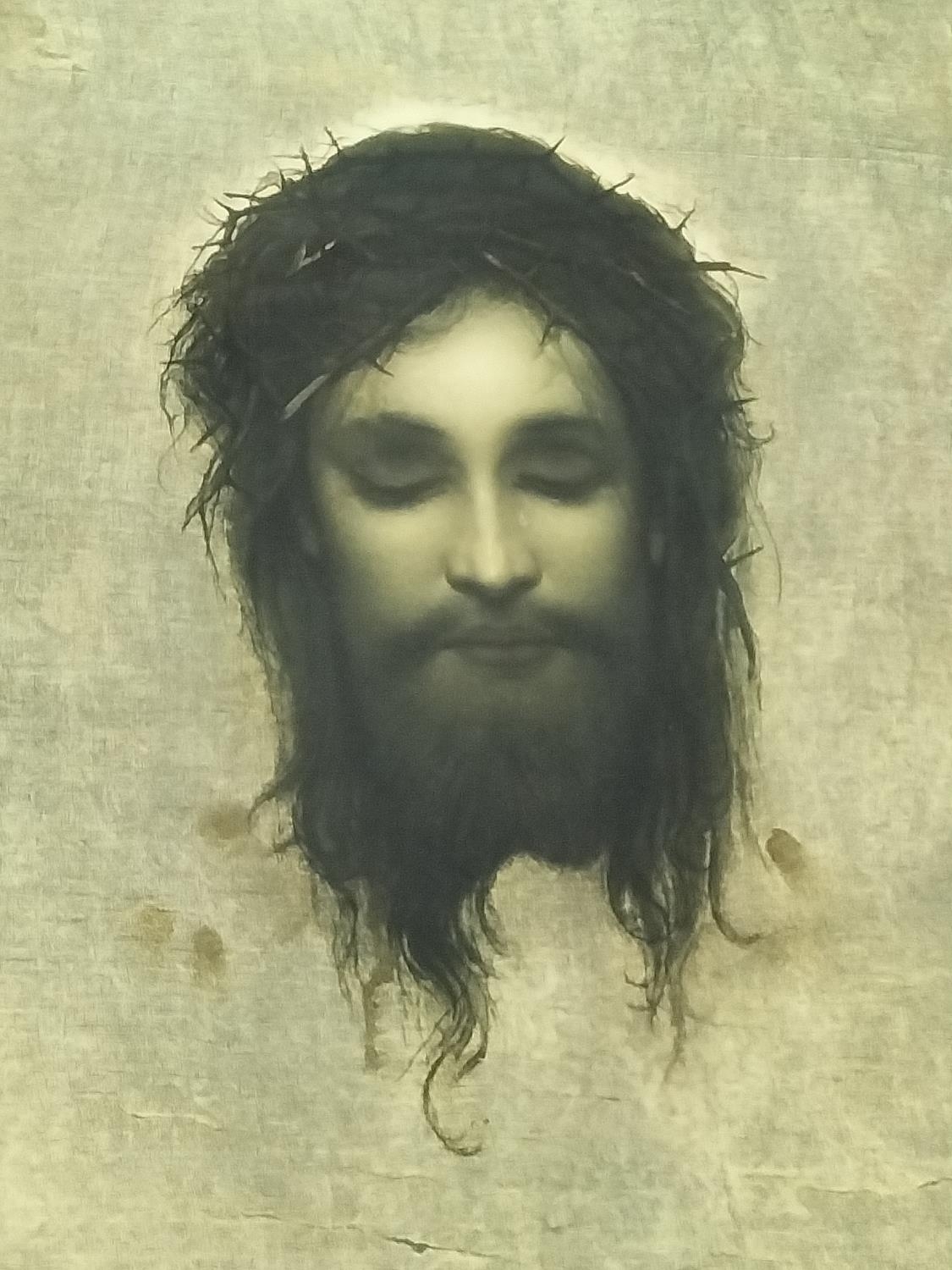 19th Century Print of Jesus Christus 'Veil of Veronica by Gabriel Von Max. 80cm x 60cm. Collection Only.