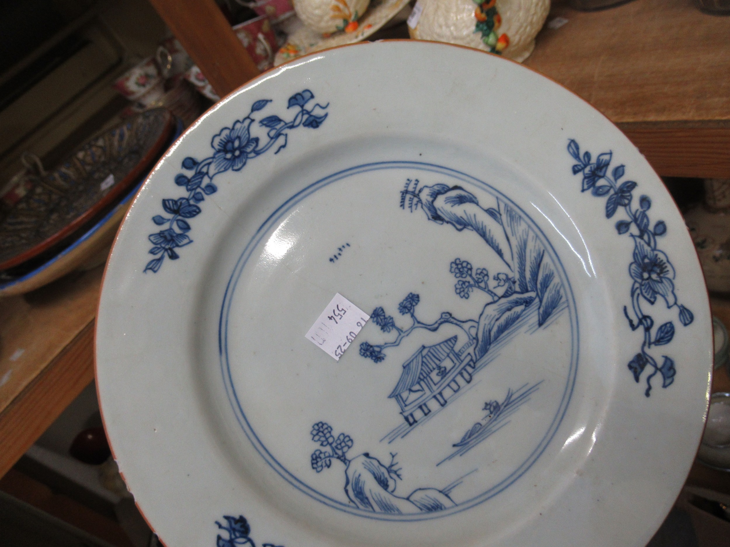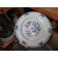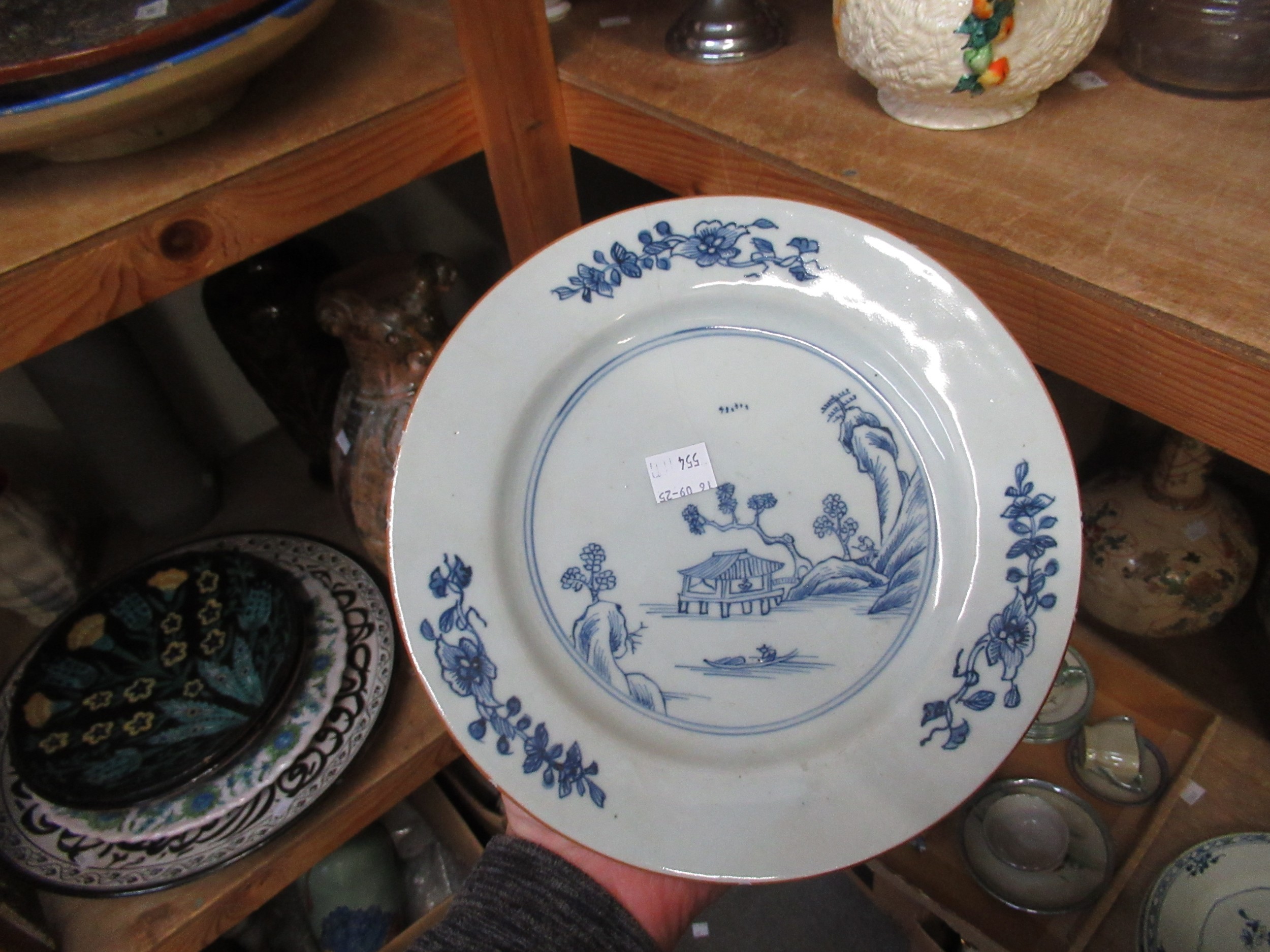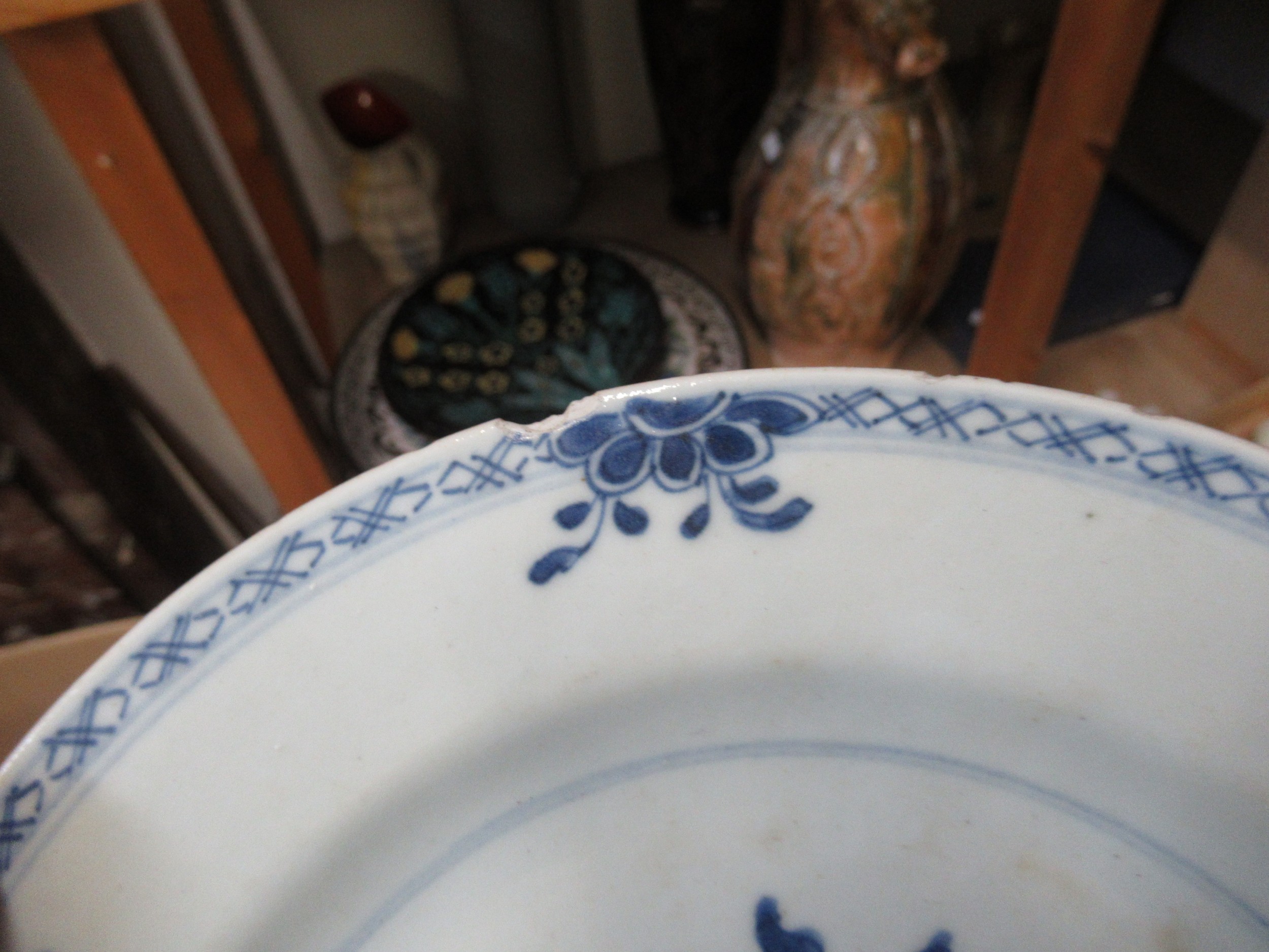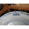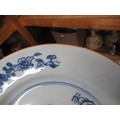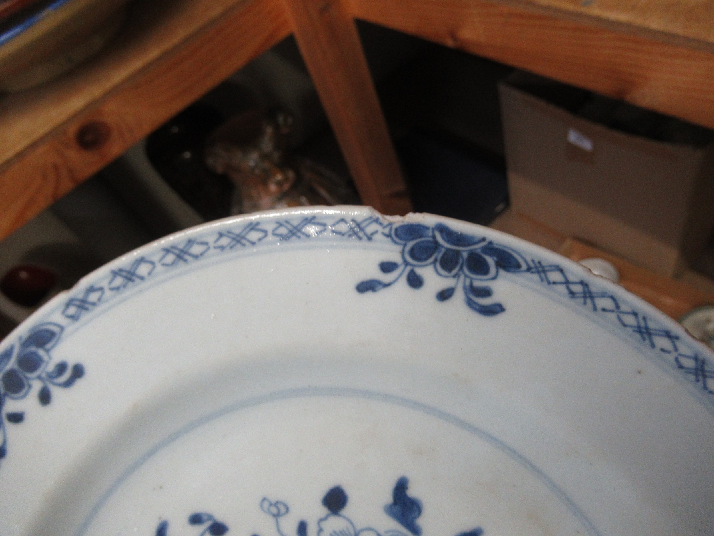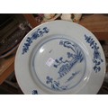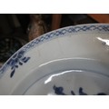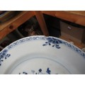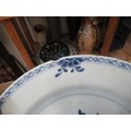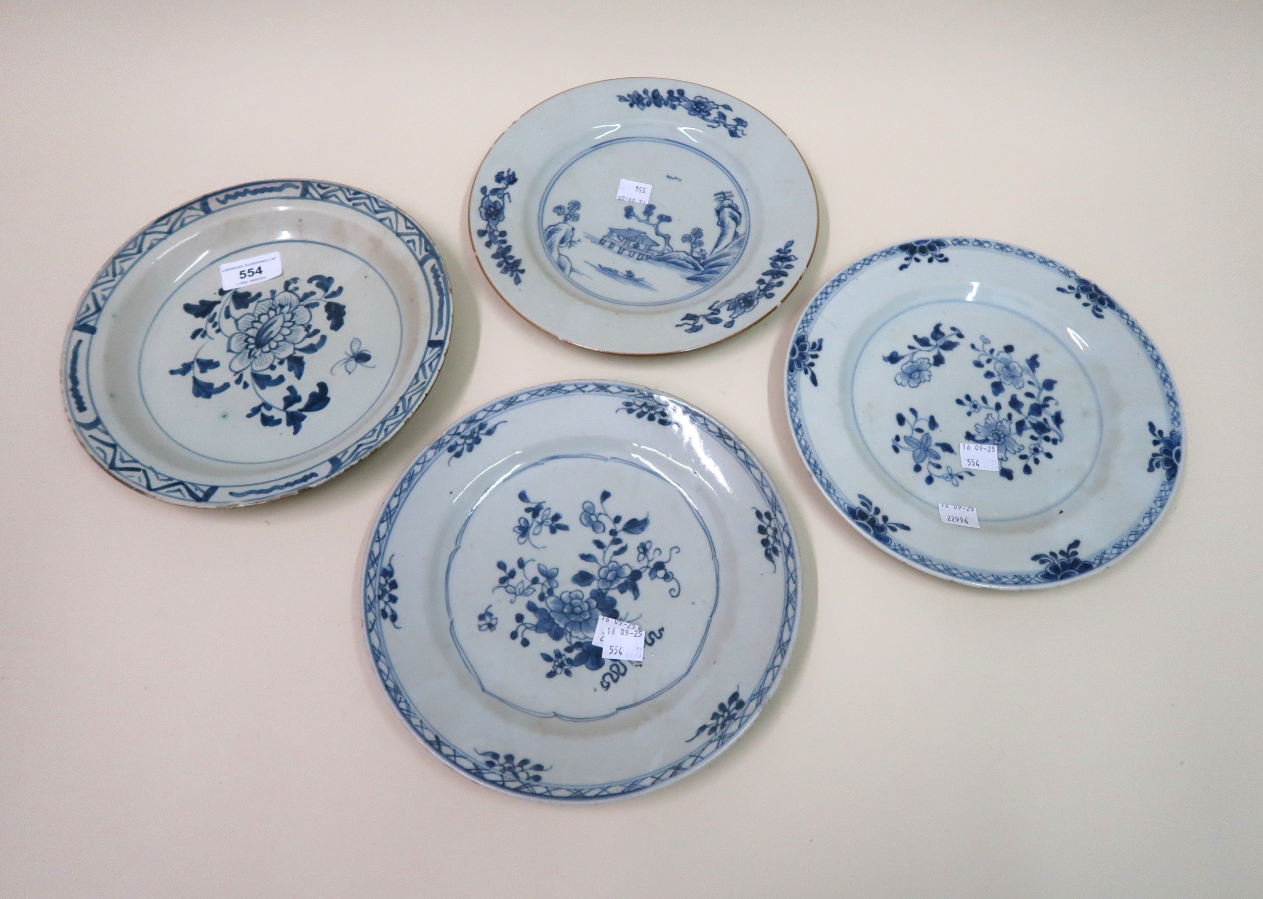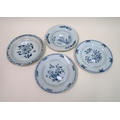 Three 18th Century Chinese blue and white plates, together with a blue and white tin glazed plate, 23cm diameter