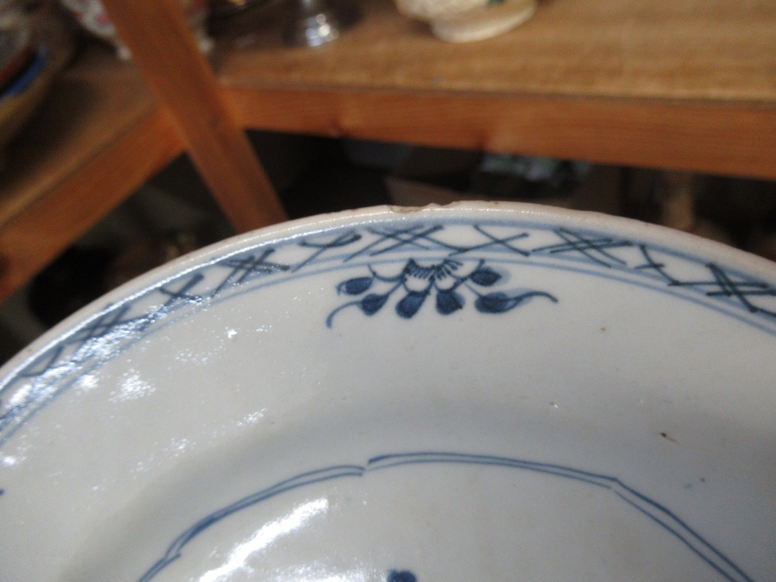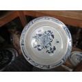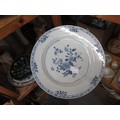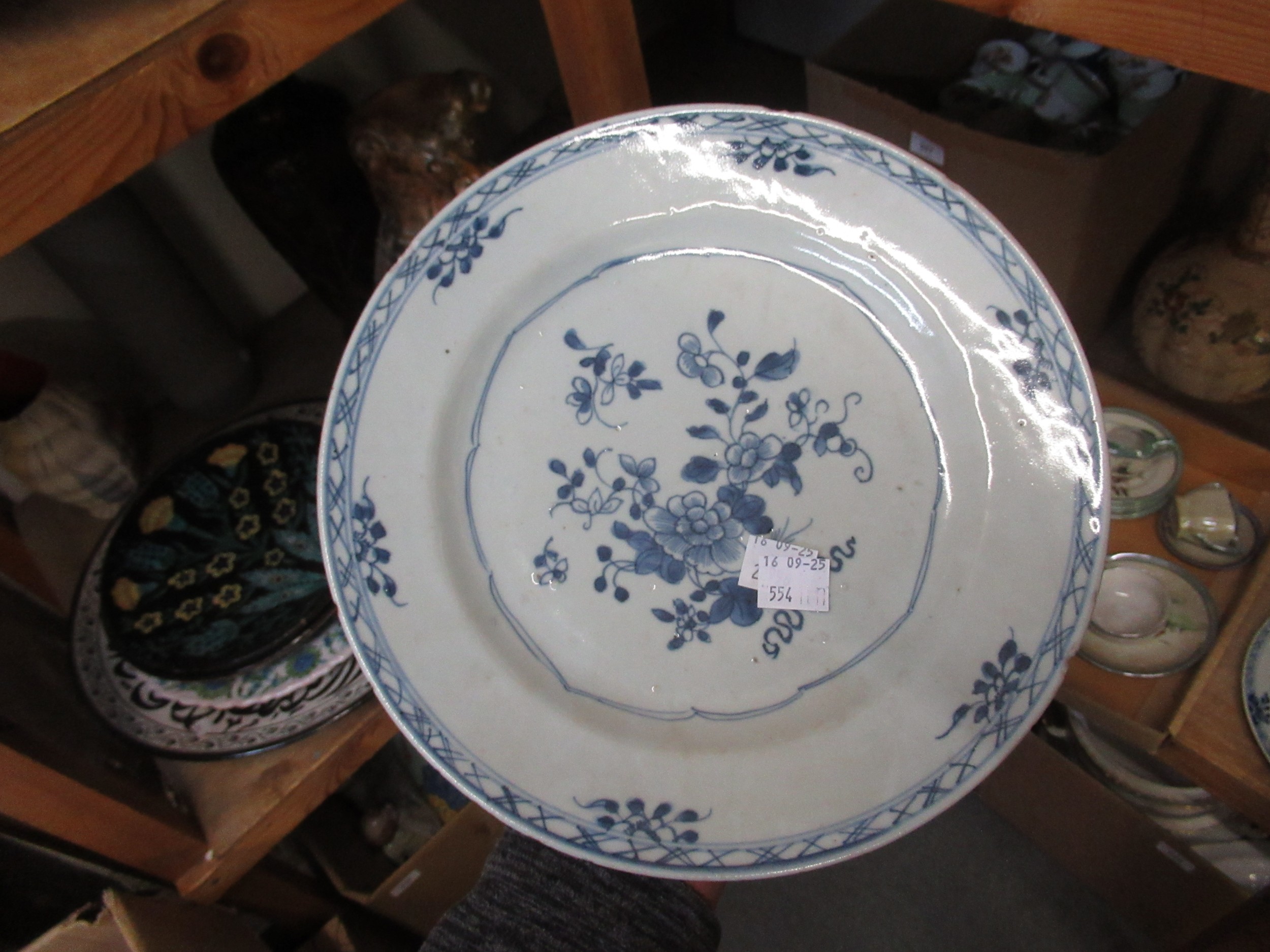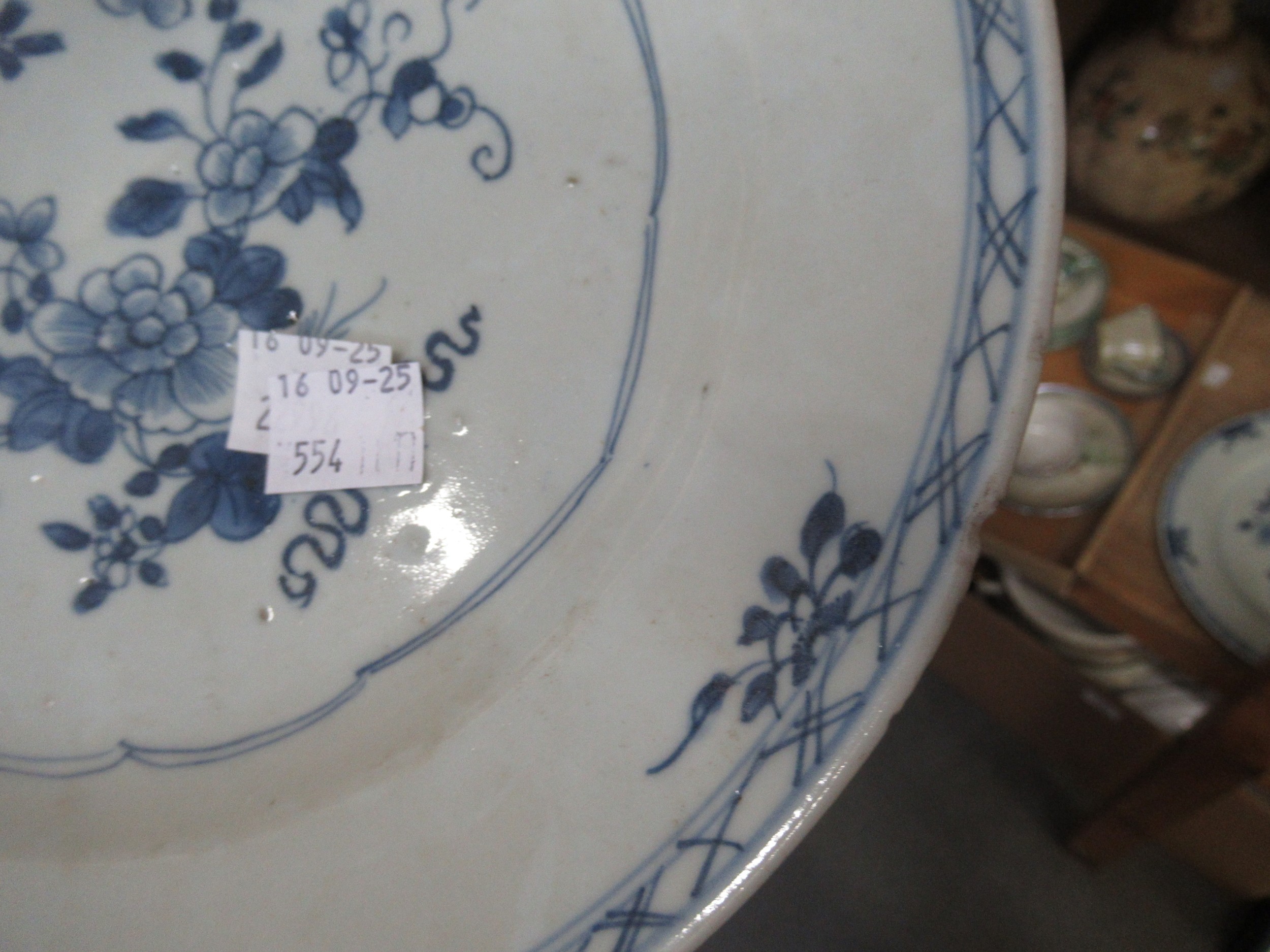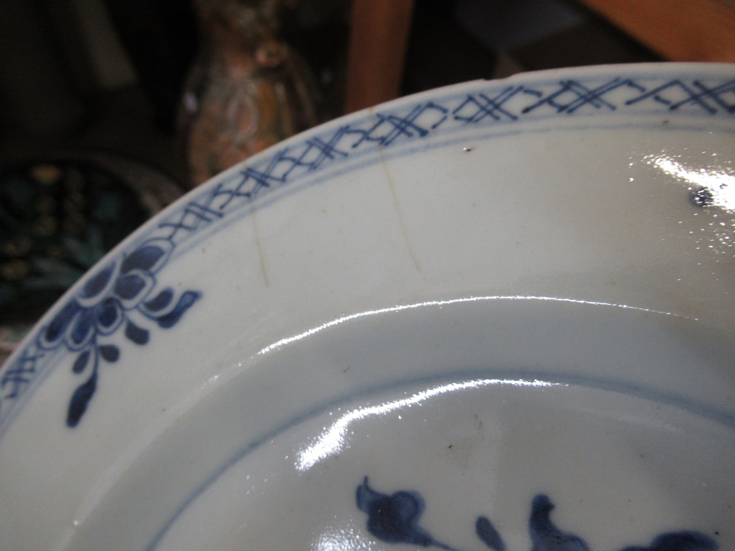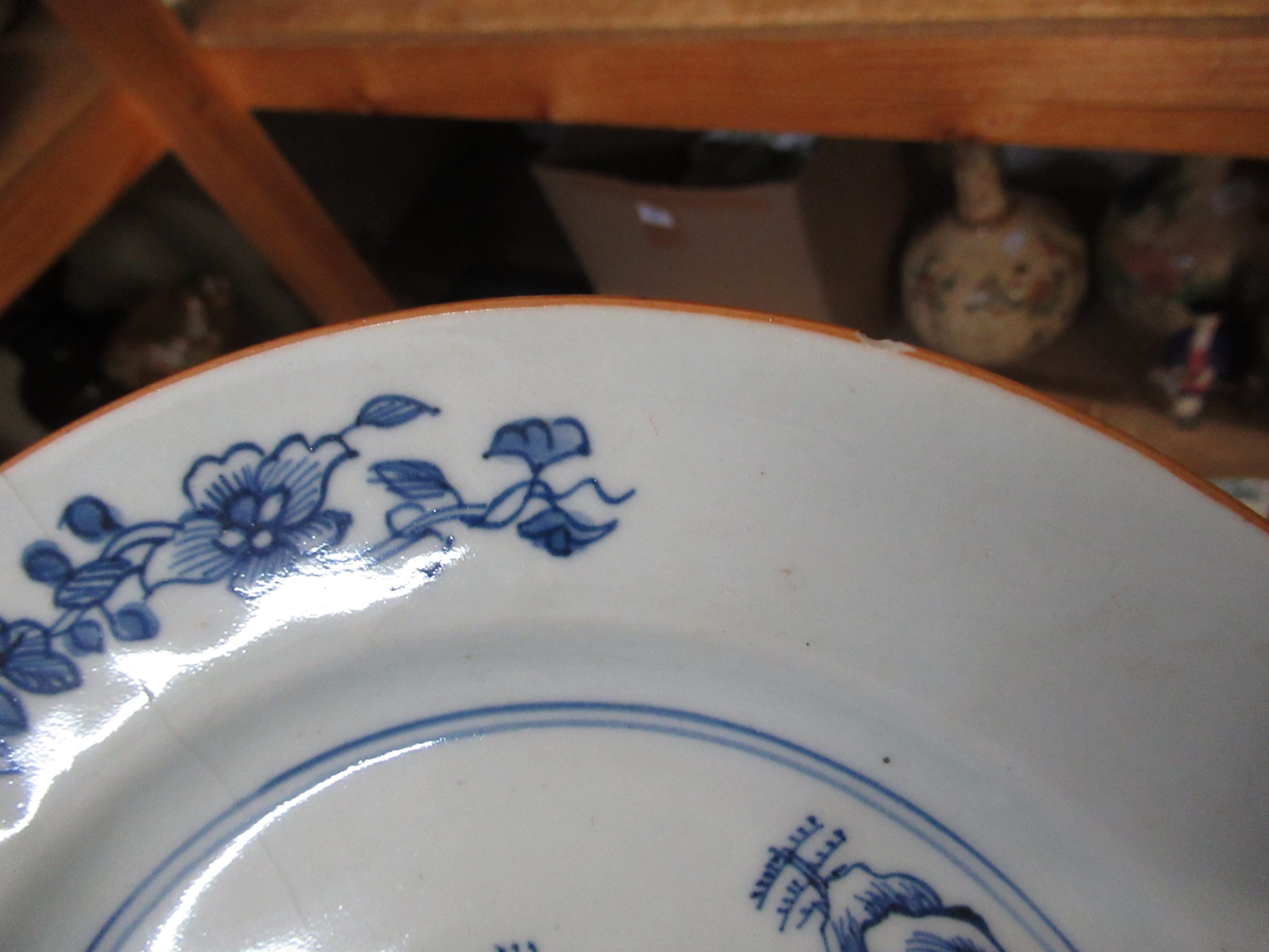 Three 18th Century Chinese blue and white plates, together with a blue and white tin glazed plate, 23cm diameter
