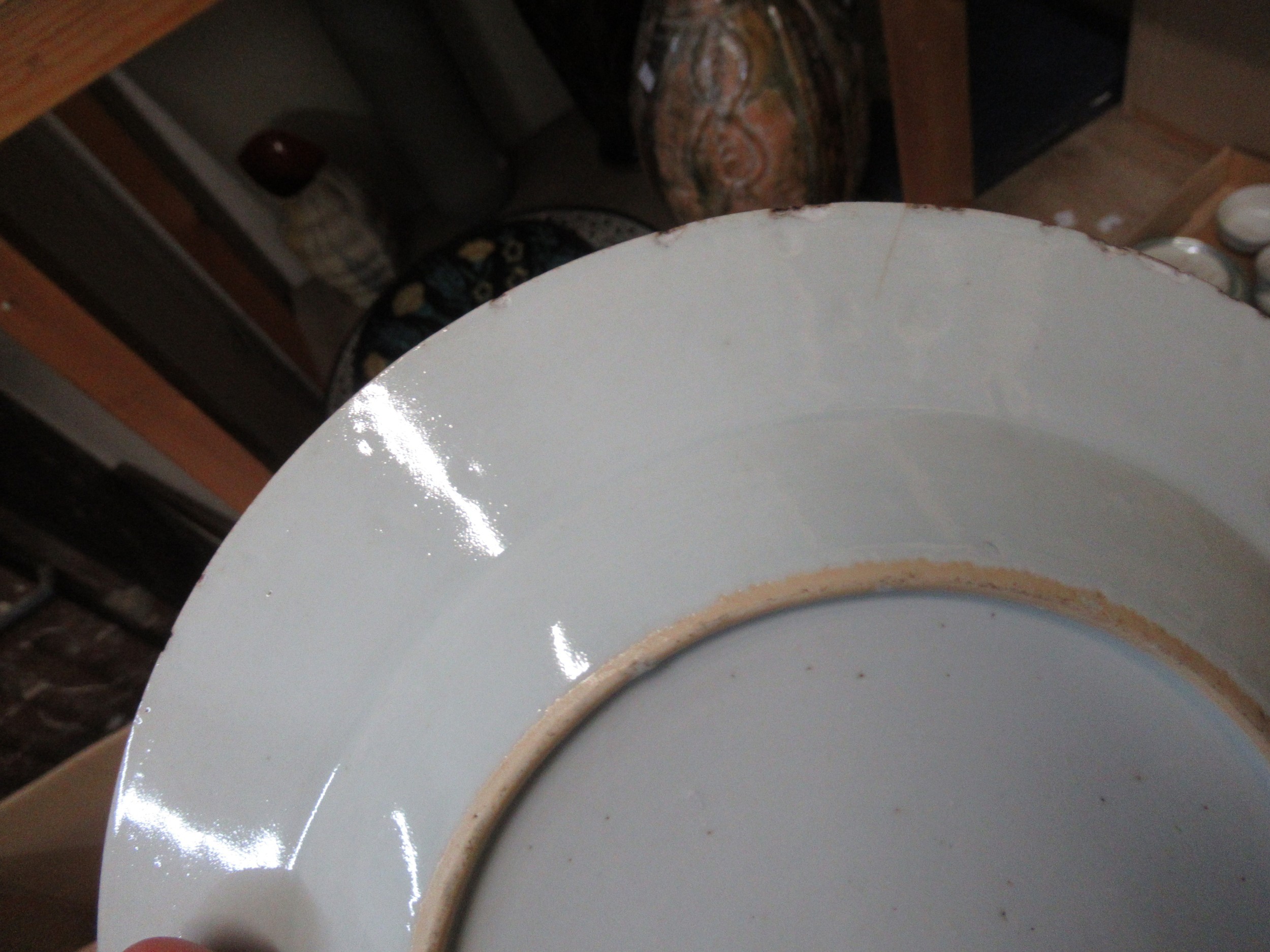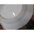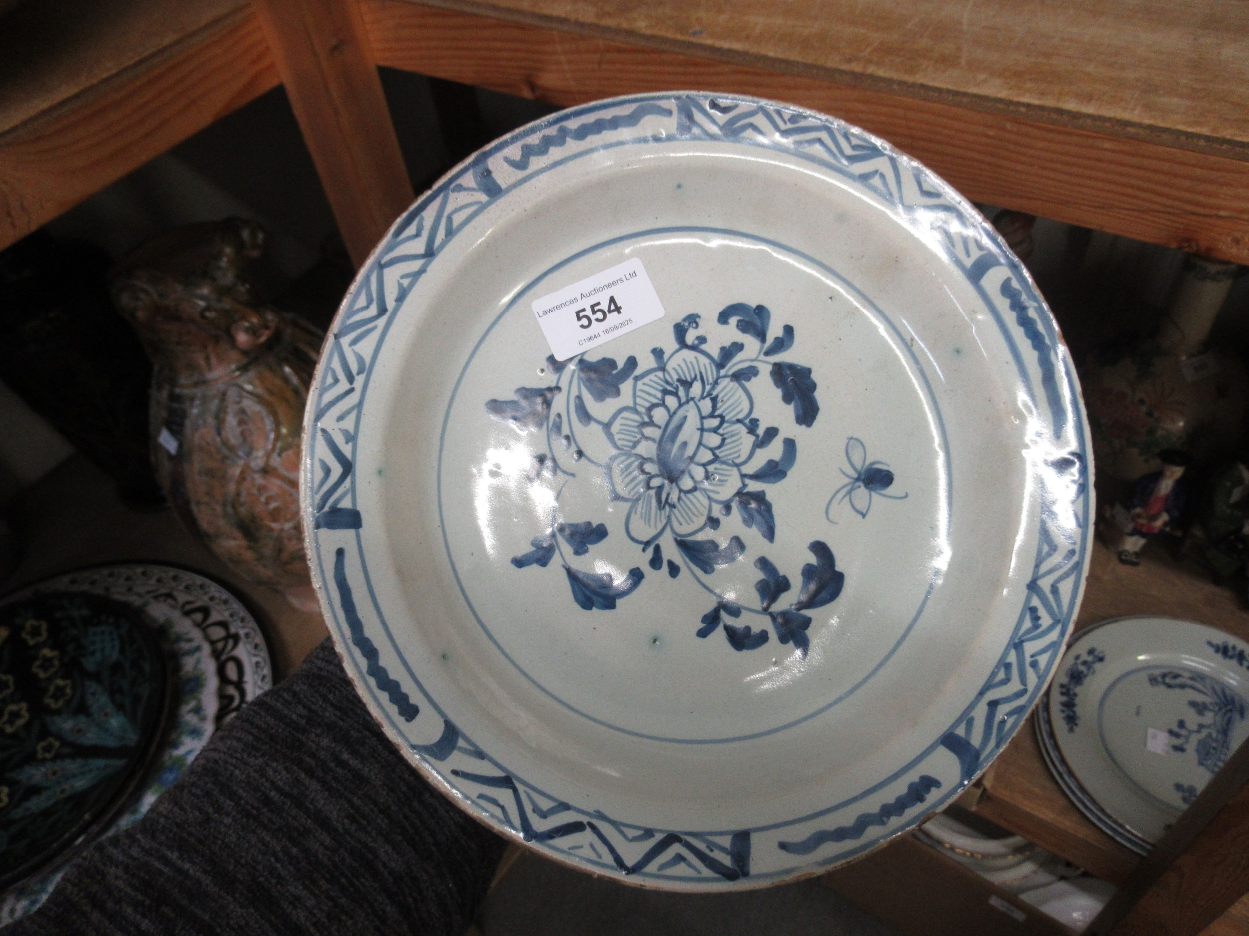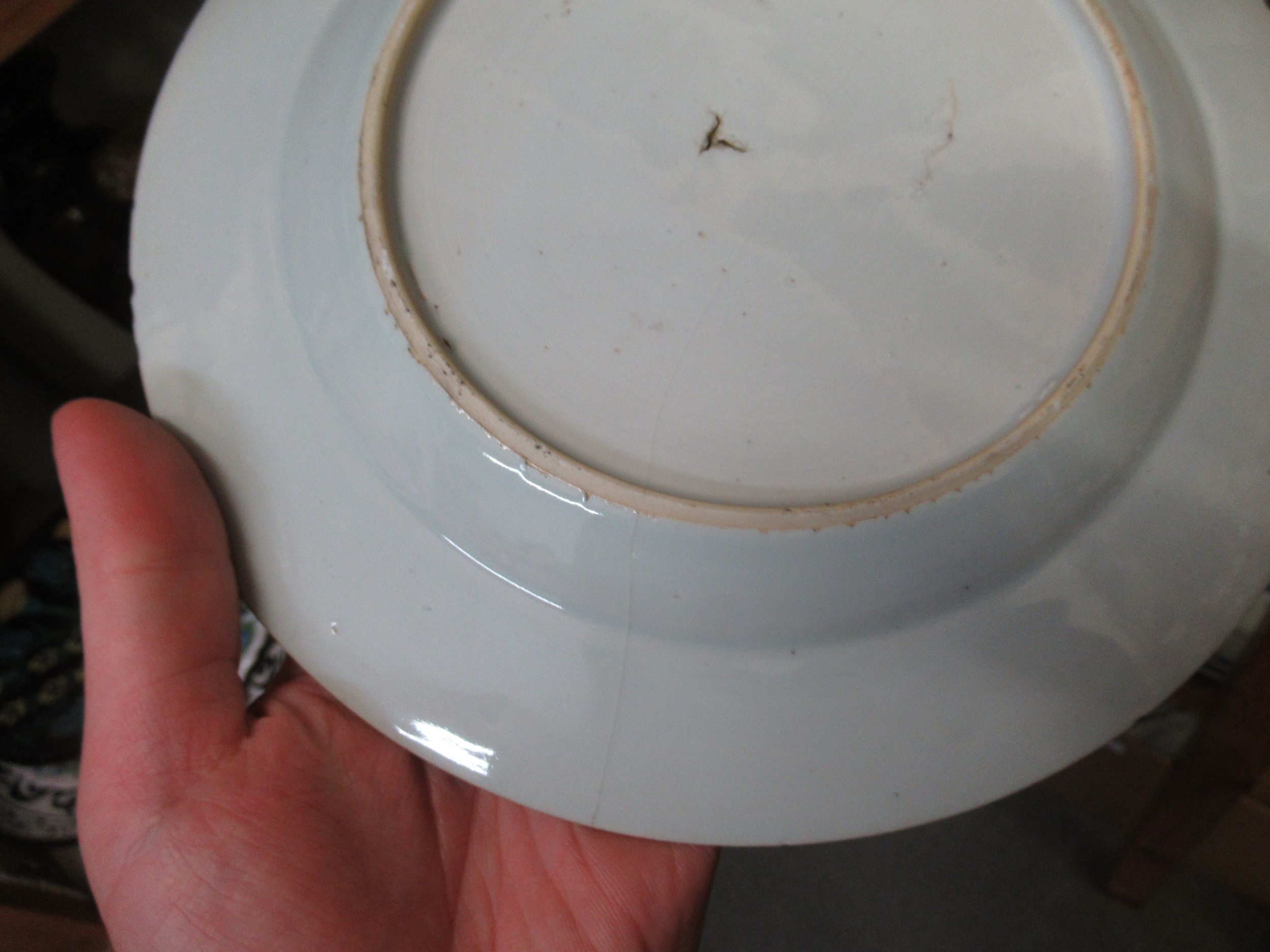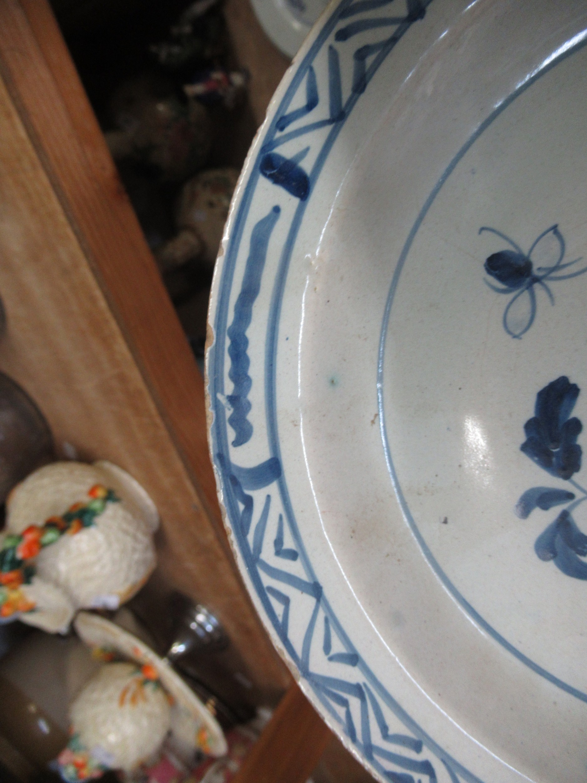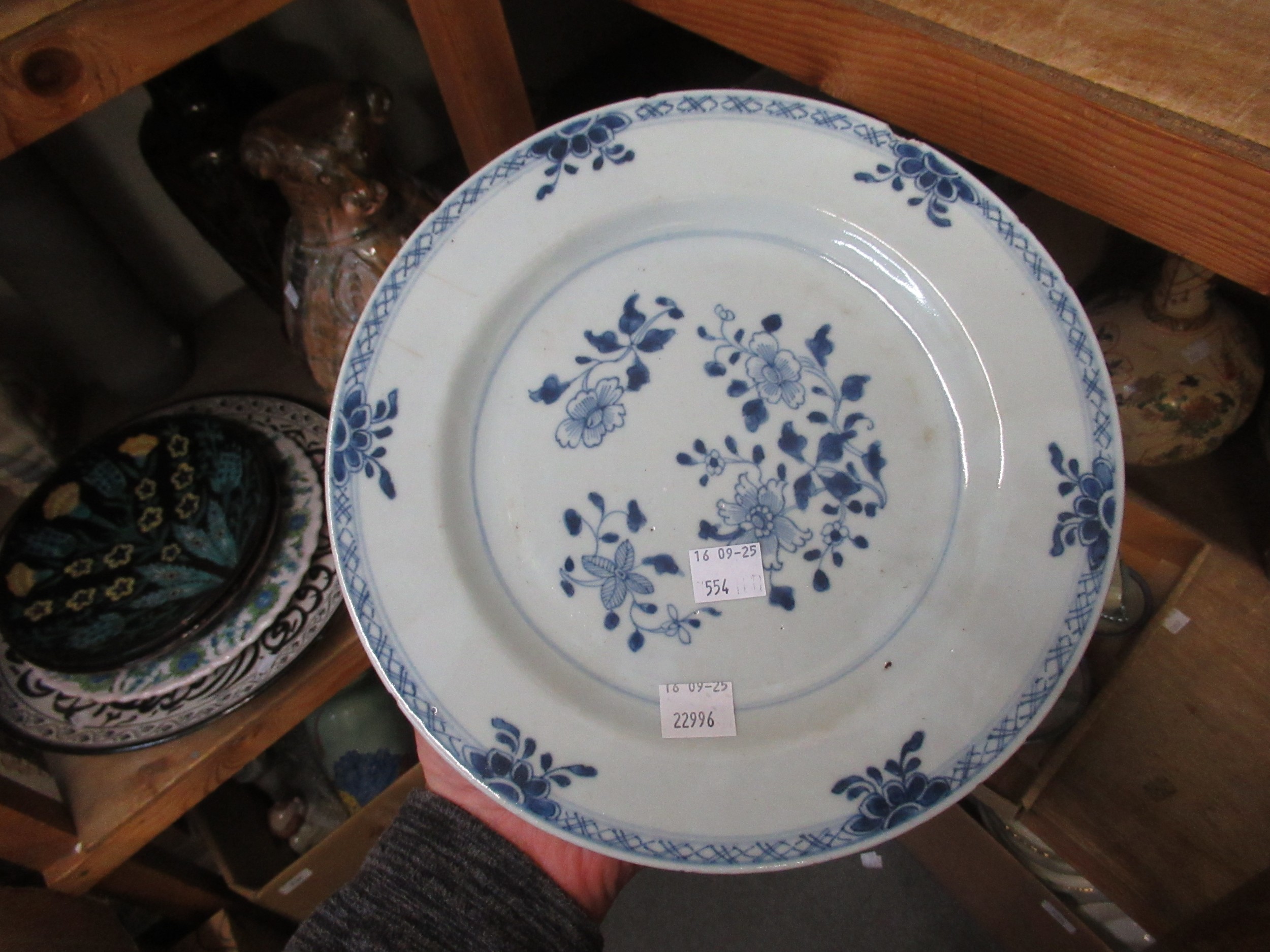 Three 18th Century Chinese blue and white plates, together with a blue and white tin glazed plate, 23cm diameter