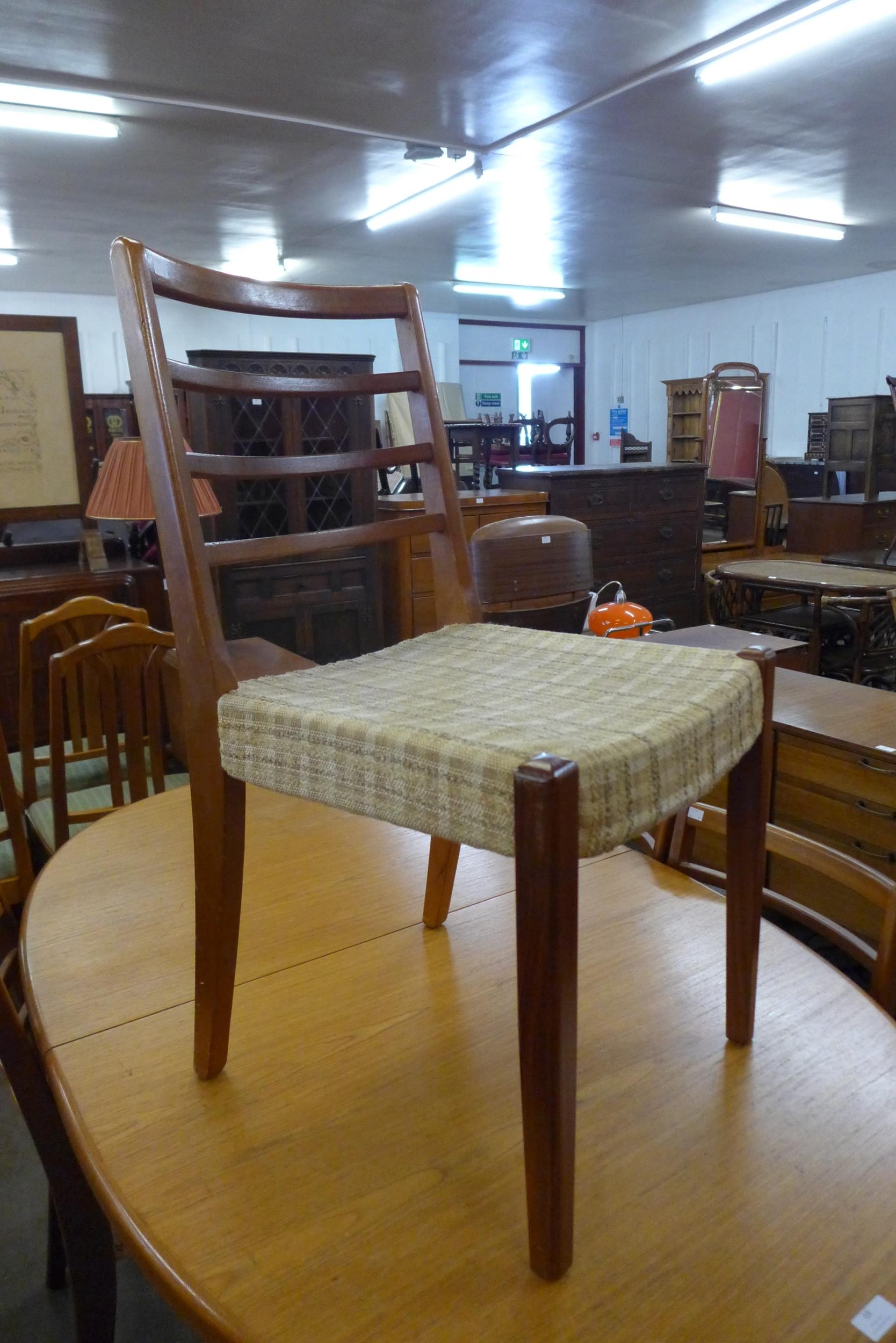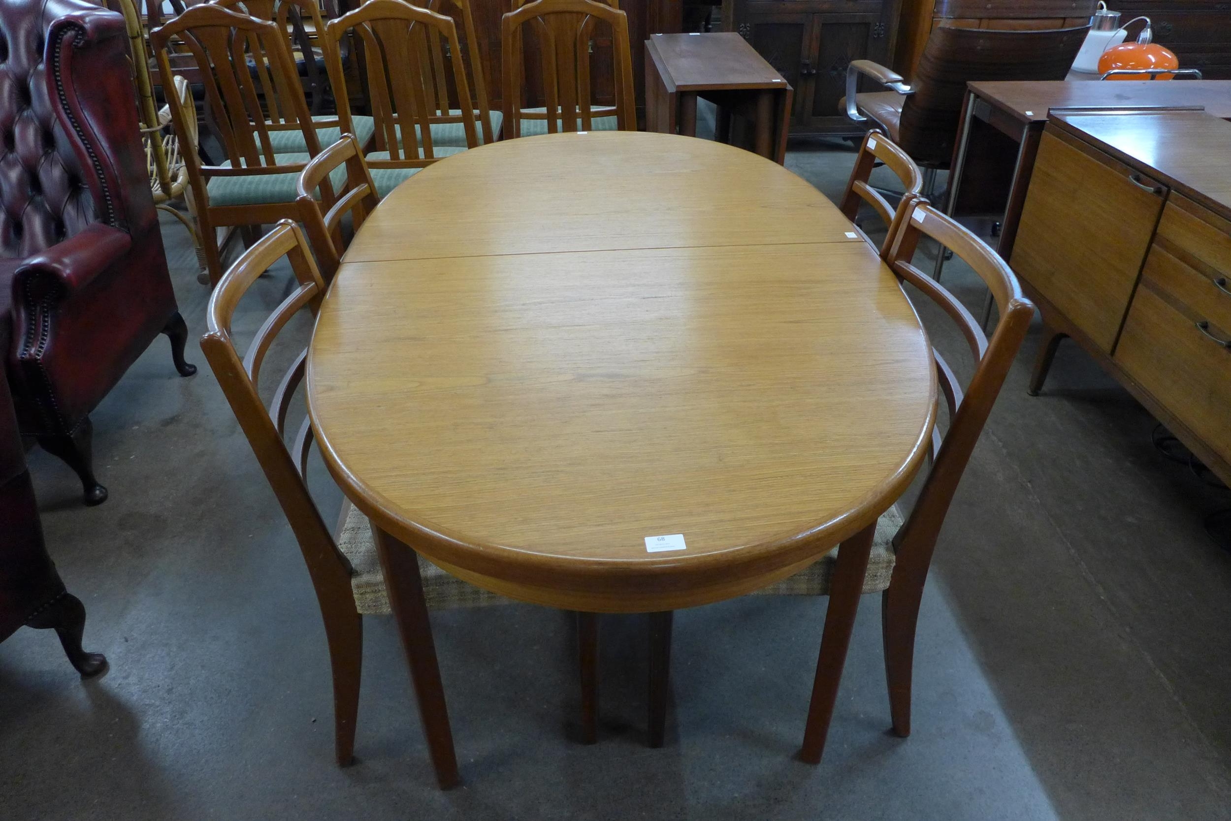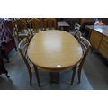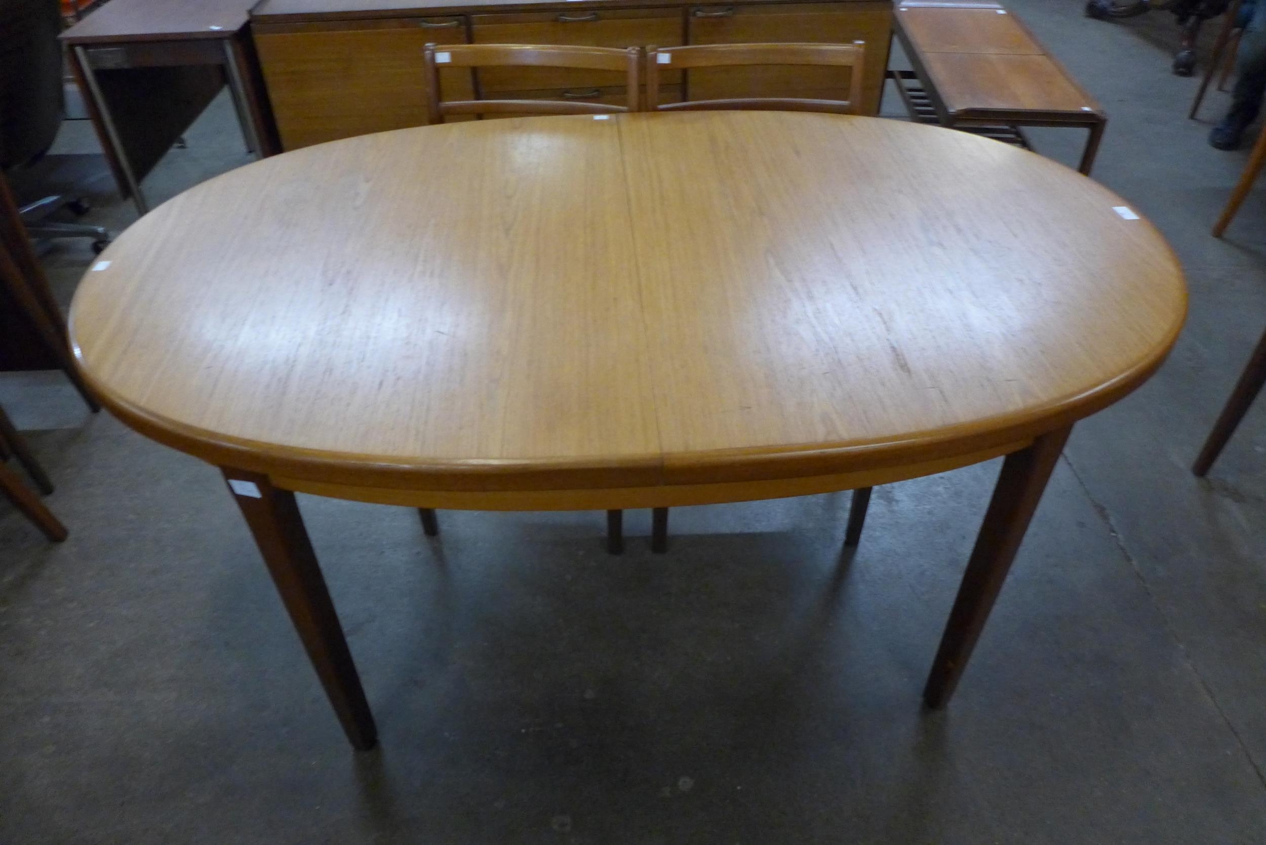 A teak extending dining table and four chairs