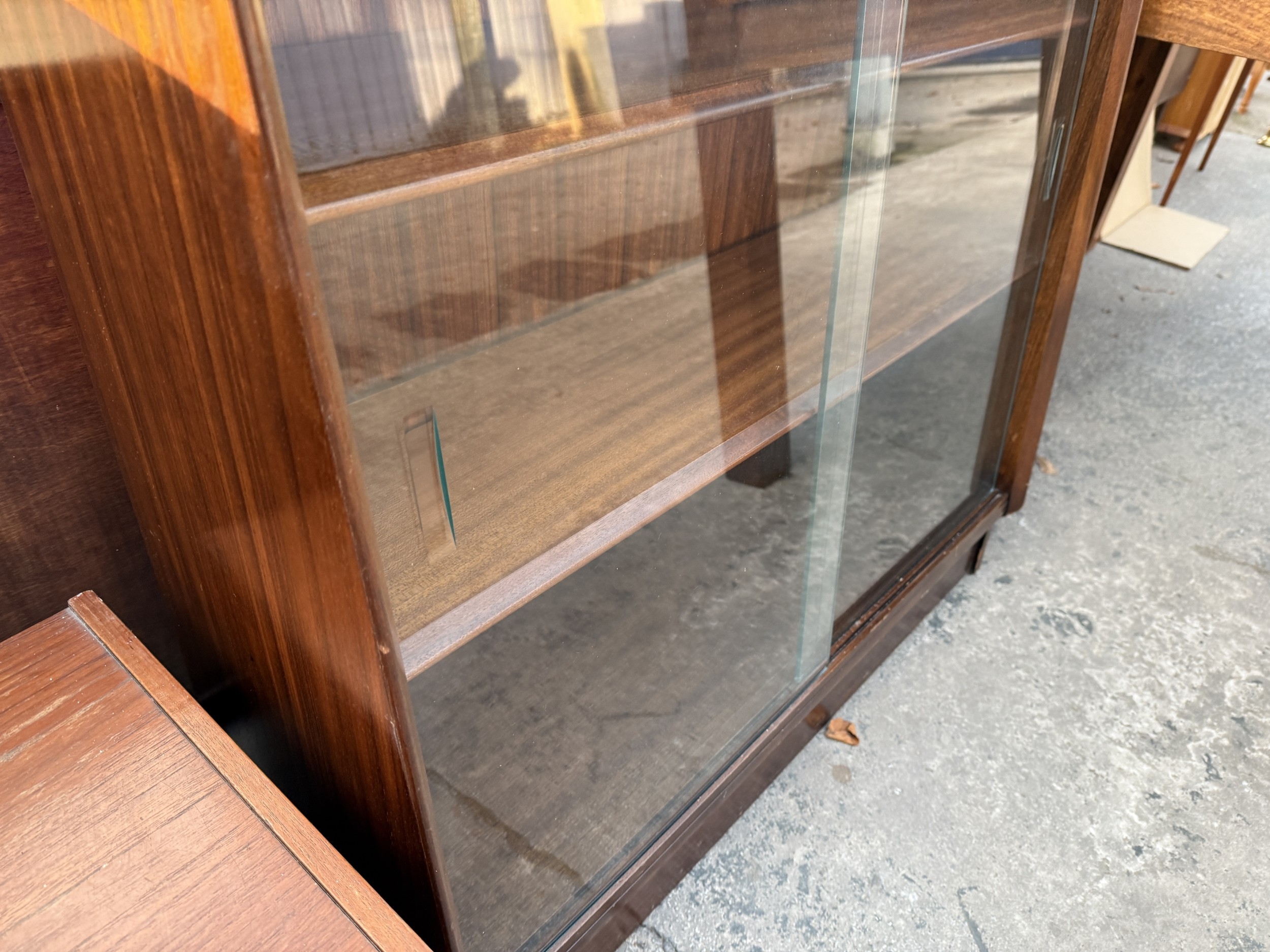 A G PLAN E GOMME RETRO BOOKCASE WITH TWO SLIDING DOORS, 36" WIDE