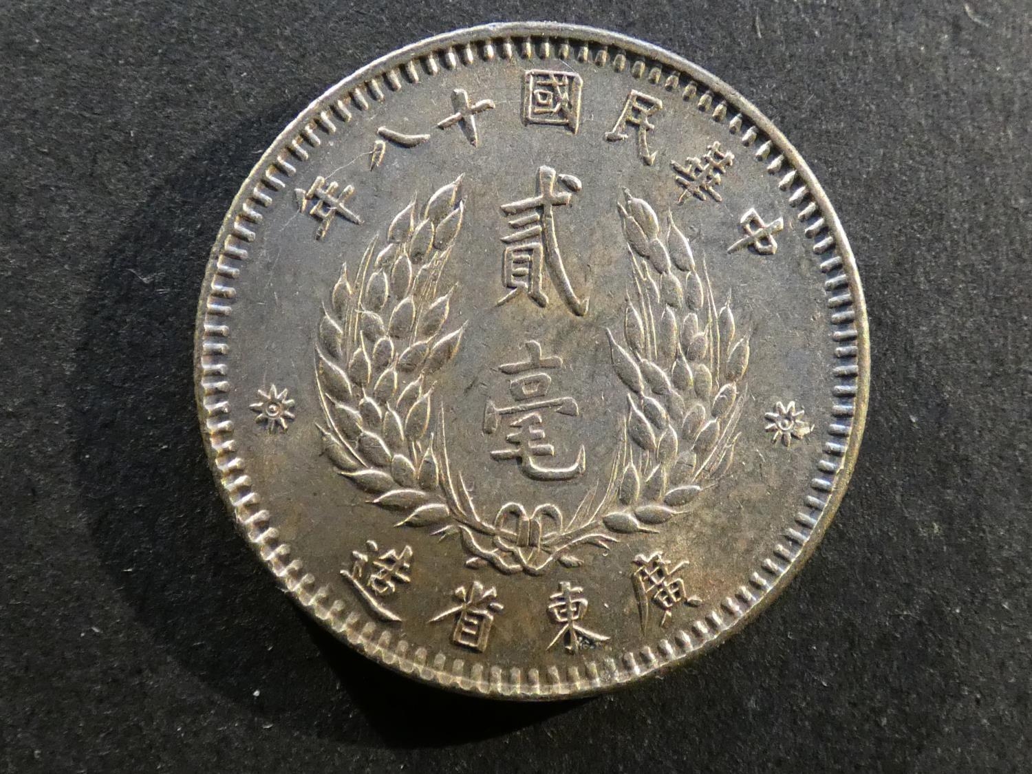 CHINA. Guangdong Province, 20 Cents, Republic Year 18 (1929), Y426, EF, light spotting & toning.