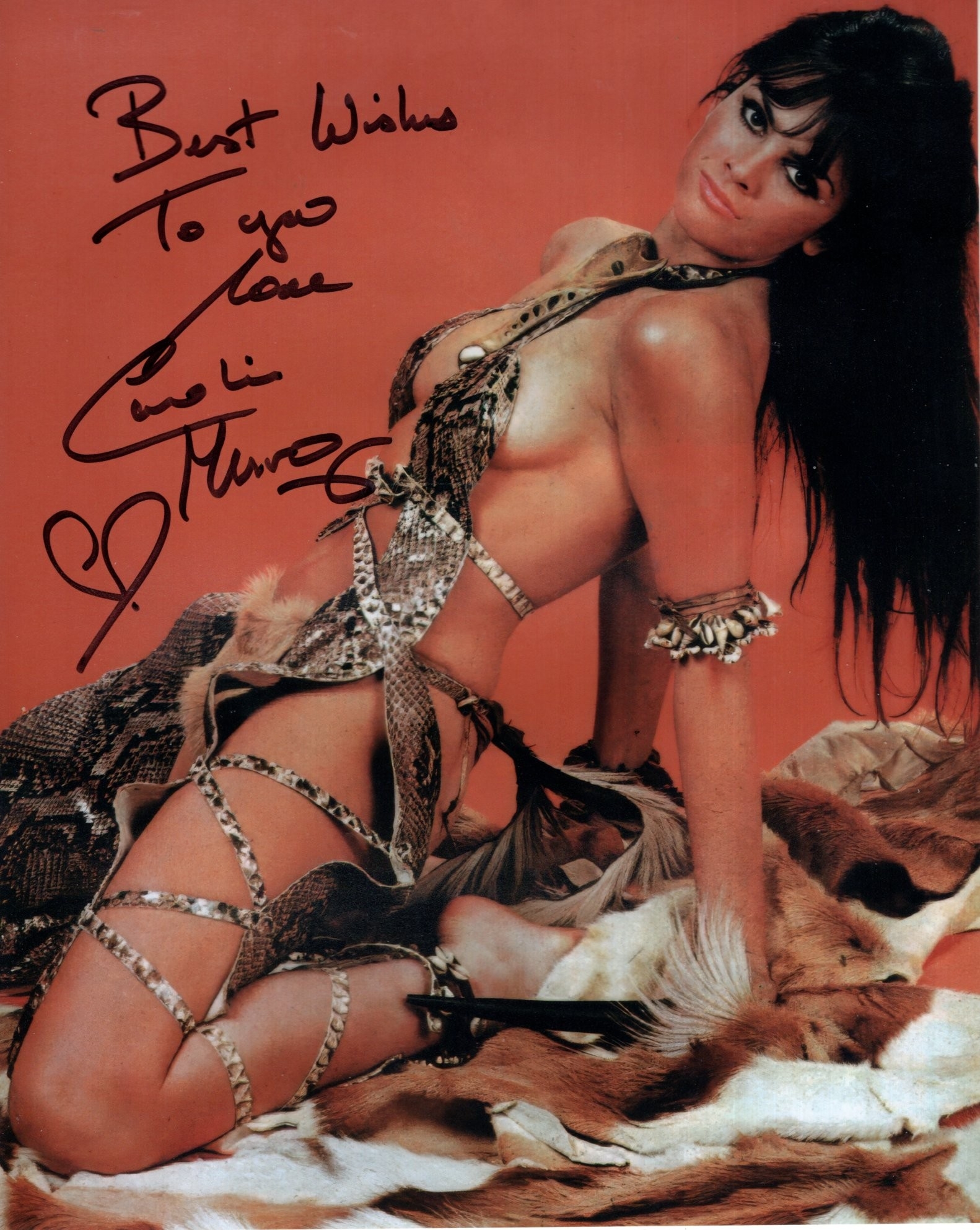 At the Earth's Core sci-fi movie colour 8x10 promo photo signed by actress Caroline Munro