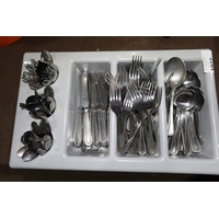 A plastic cutlery tray containing a quantity of various cutlery
