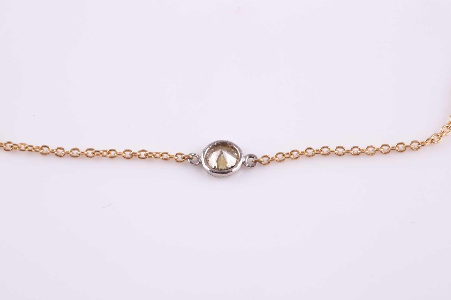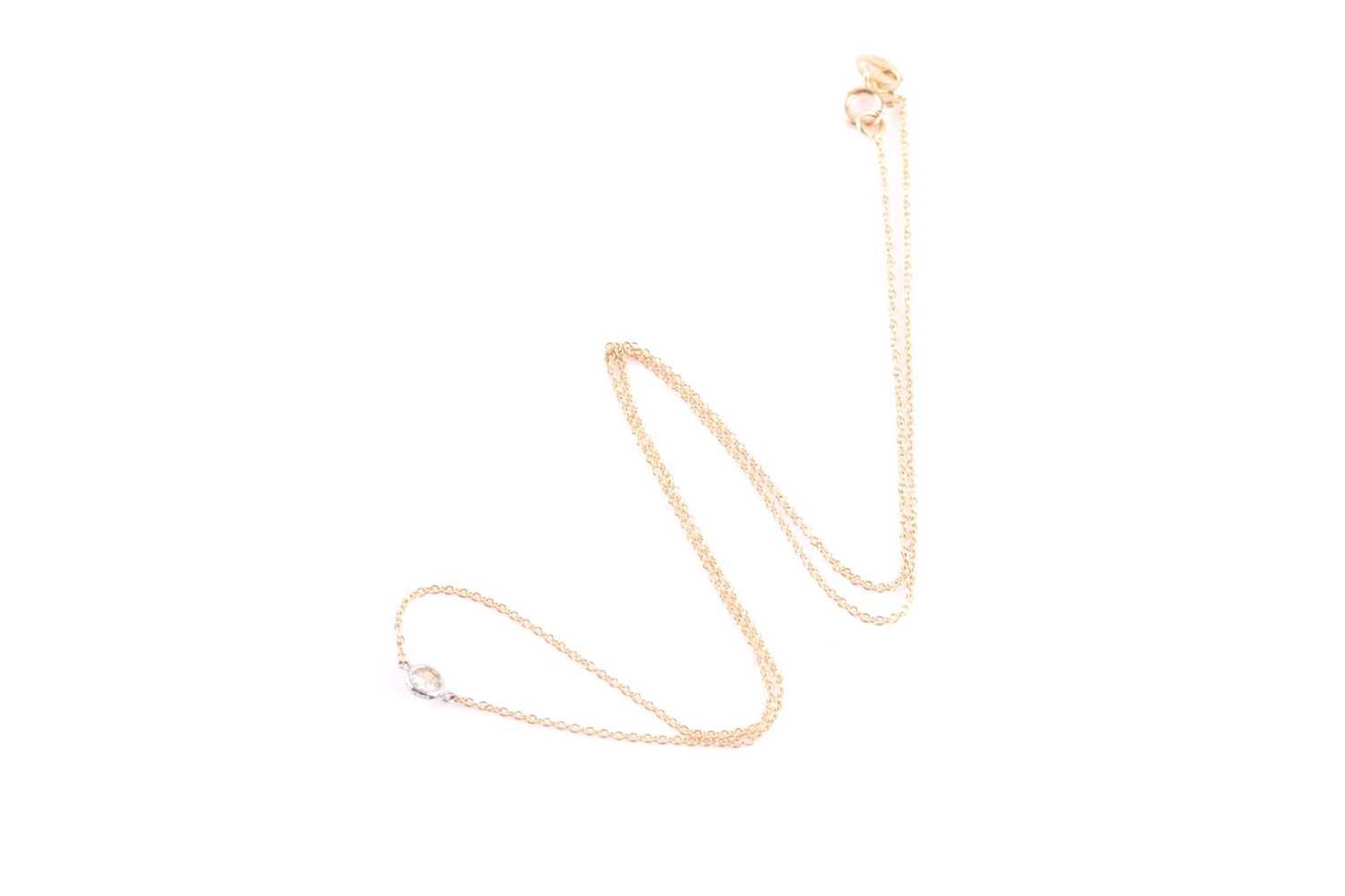 An 18ct yellow gold and diamond necklace, the chain set with a collet-mounted round brilliant-cut diamond of approximately 0.10 carats, the chain 41 cm long, 1.5 grams.