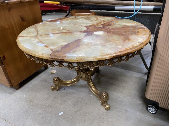 Brass and onyx coffee table 45H 70cm diameter
