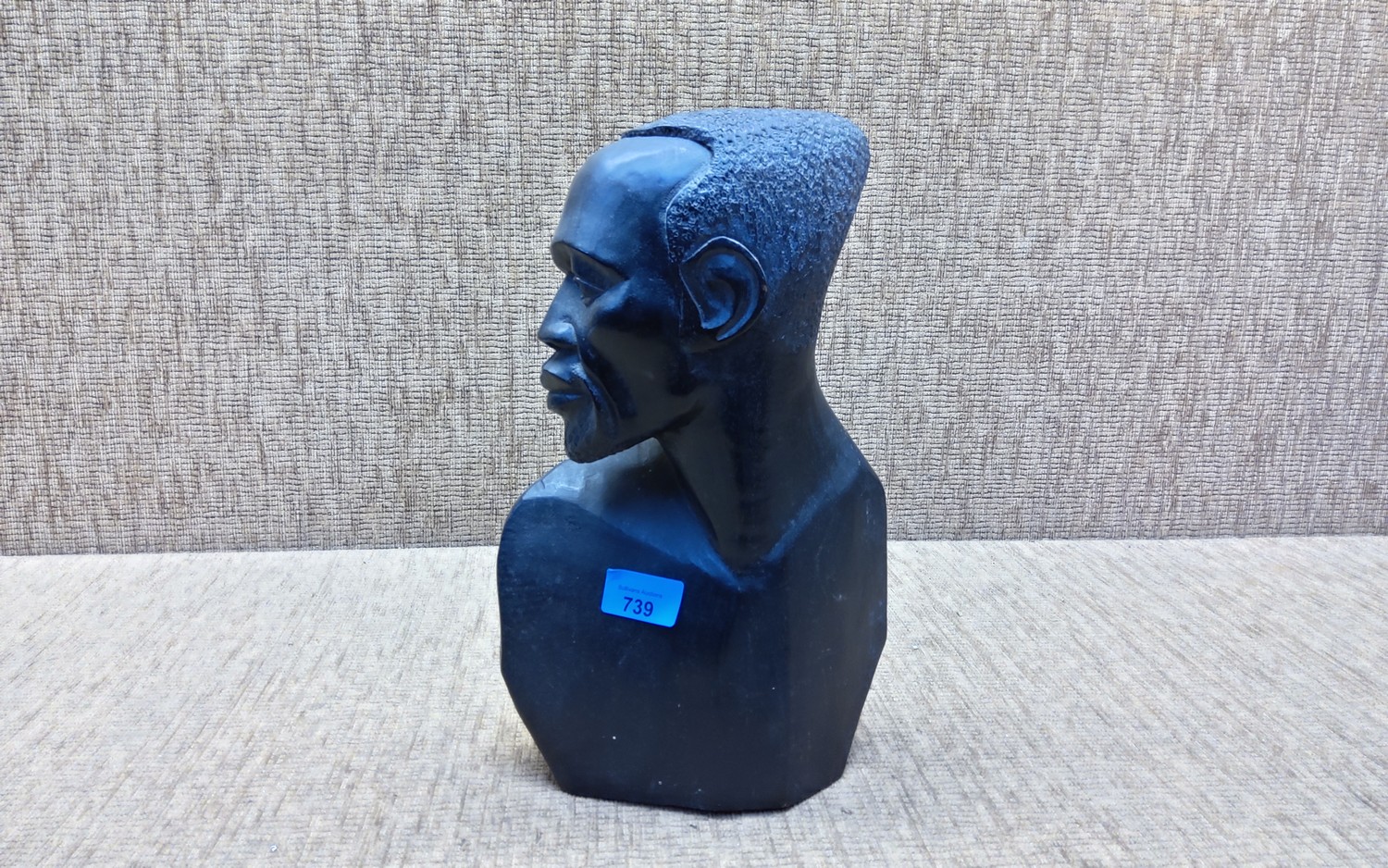 Large carved African head signed on the bottom.