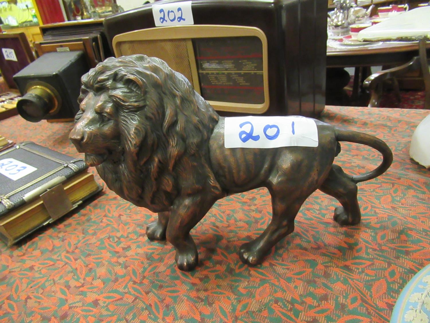 Large bronze Lion. H:24cm, L:30cm.