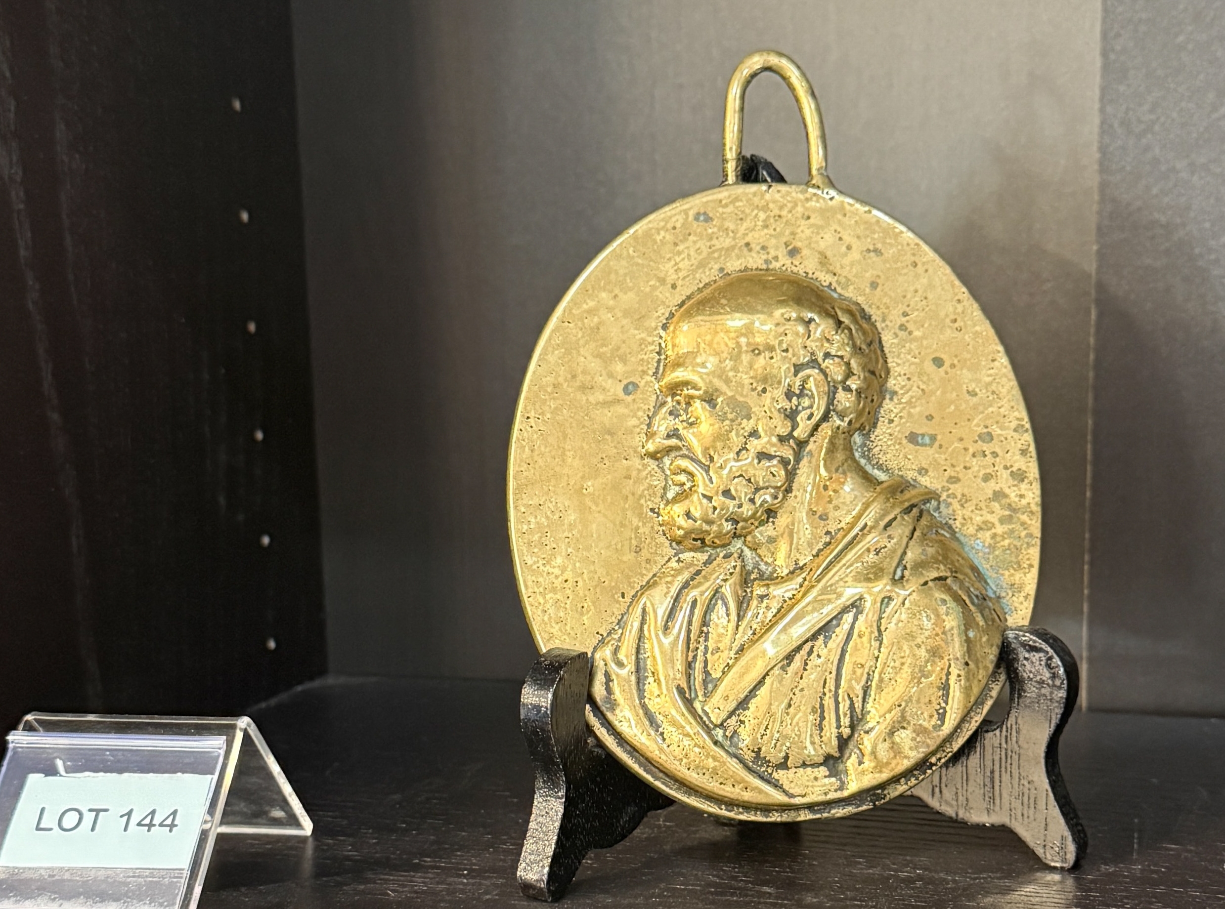 16th Century bronze medallion of Saint Peter with a loop hanging to the top