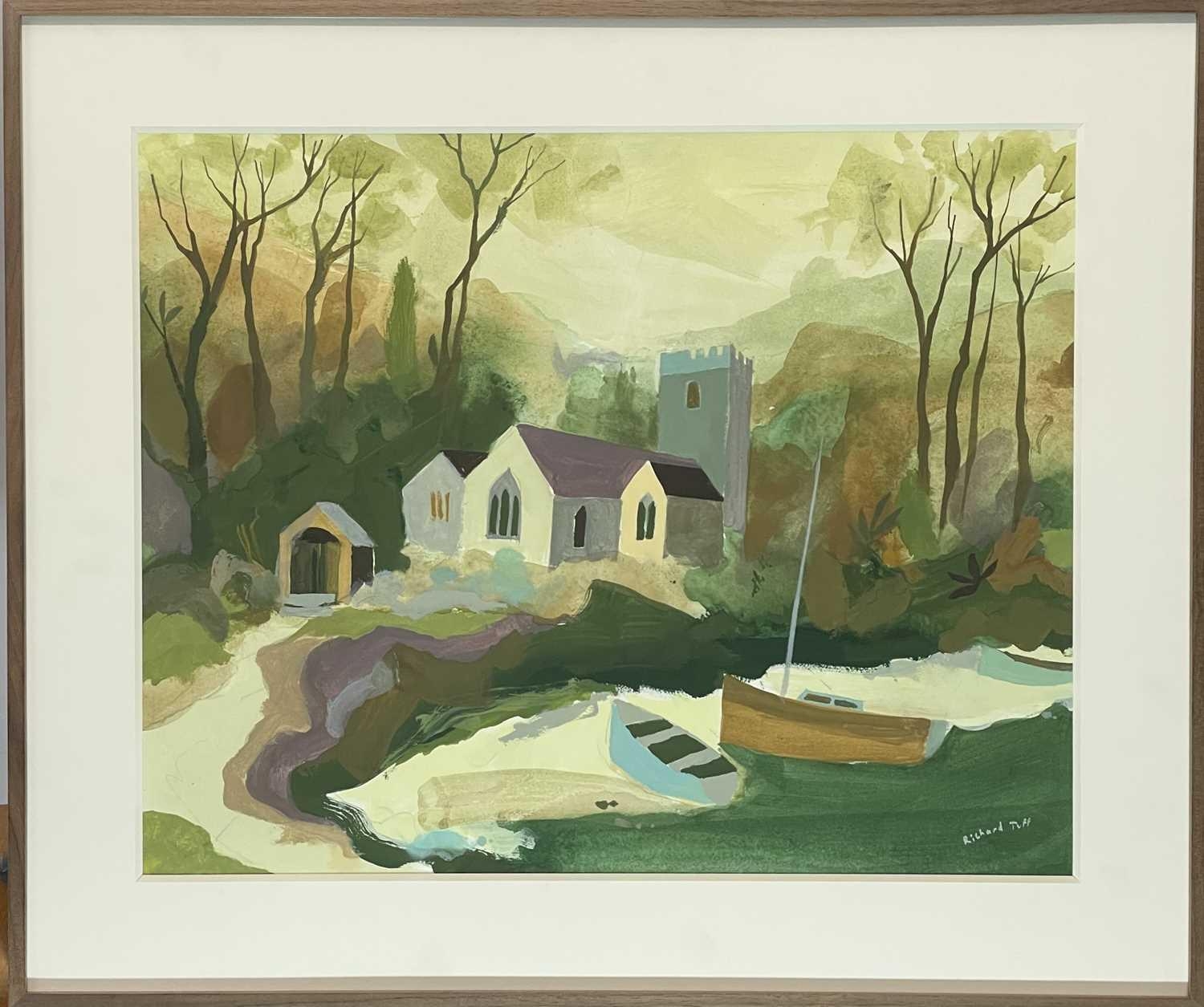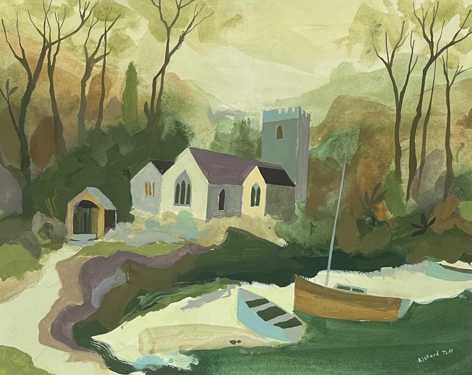 Richard TUFF (1965) St Just in Roseland Gouache on paper, signed, 38 x 48cm, framed 51 x 61cm This work is in excellent condition although it has not been examined out of the frame. The frame also is in good condition.